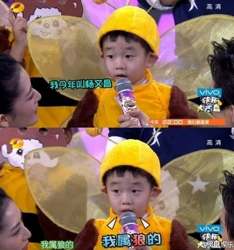 【杨威儿子呆萌走红】本周《快乐大本营》播出后,奥运冠军杨威儿子呆萌可爱的样子瞬间萌翻众网友。小家伙“条理清晰”的介绍方式更惹得观众捧腹大笑。“#我今年叫杨文昌#,我属狼。我爸爸姓杨,我妈妈姓杨,我也姓杨......”