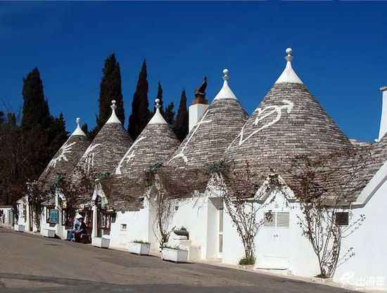 阿尔贝罗贝洛是意大利的一个小城,城内的楚利建筑世界知名。据当地居民介绍,这些无柱无梁,屋顶成锥形的白色小屋异常坚固,且冬暖夏凉。