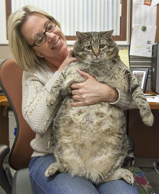 来自美国亚利桑那州凤凰城的肥猫“肉丸”(Meatball)可能是世界上最胖的猫,体重达15.9公斤,堪比一名3岁儿童的重量,超过普通猫正常体重3倍。