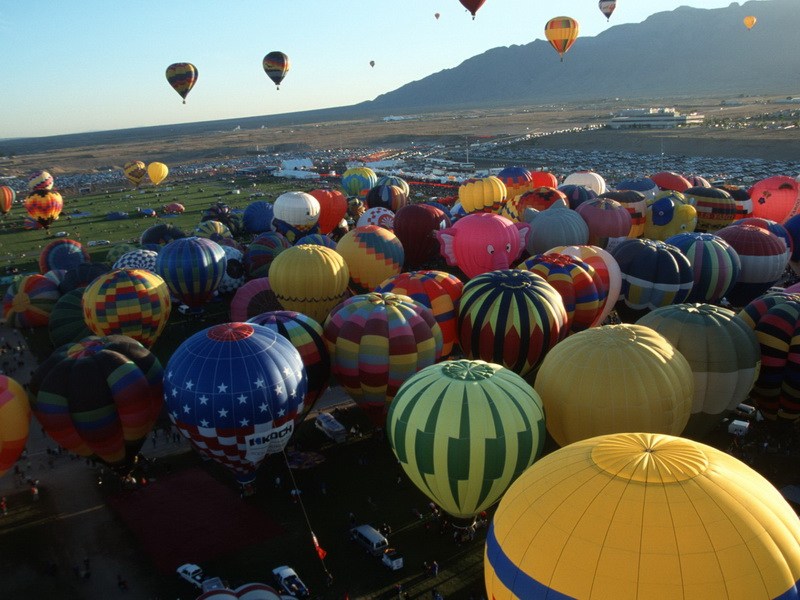 10月的新墨西哥州阿尔伯克基国际气球节使得本州最大的城市上空布满数以百计的五彩缤纷且异常美丽的热气球。