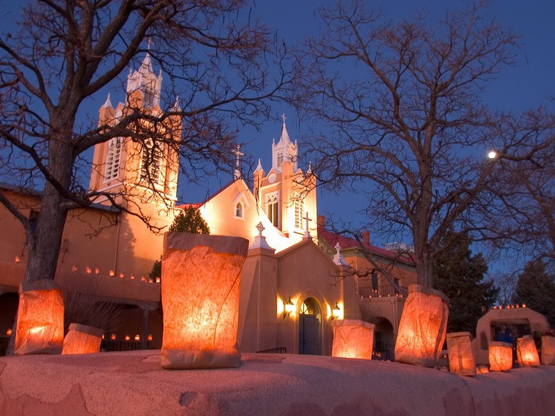 古城阿尔伯克基在圣诞节看起来仍然像它300多年前初建造时的样子。今天,这里仍然有很多普韦布洛-西班牙式建筑风格的纪念品商店和精品店。