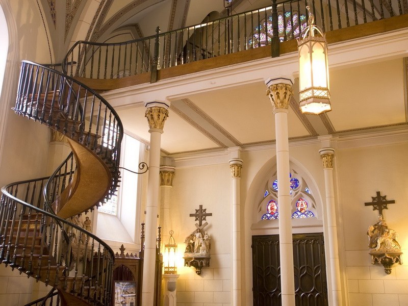 位于新墨西哥州首府圣达菲广场附近的洛雷托教堂可以追溯到1878年,教堂的“奇迹”旋转楼梯由两个连续的360度旋转造型构成,无可视支撑物,造型奇特。