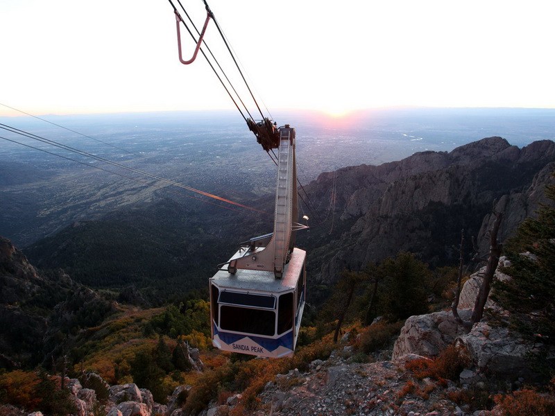 攀登阿尔伯克基的桑迪亚山脉可以乘坐缆车。在通往山顶的缆车道上,游客们可以享受约40公里的空中休闲时光。
