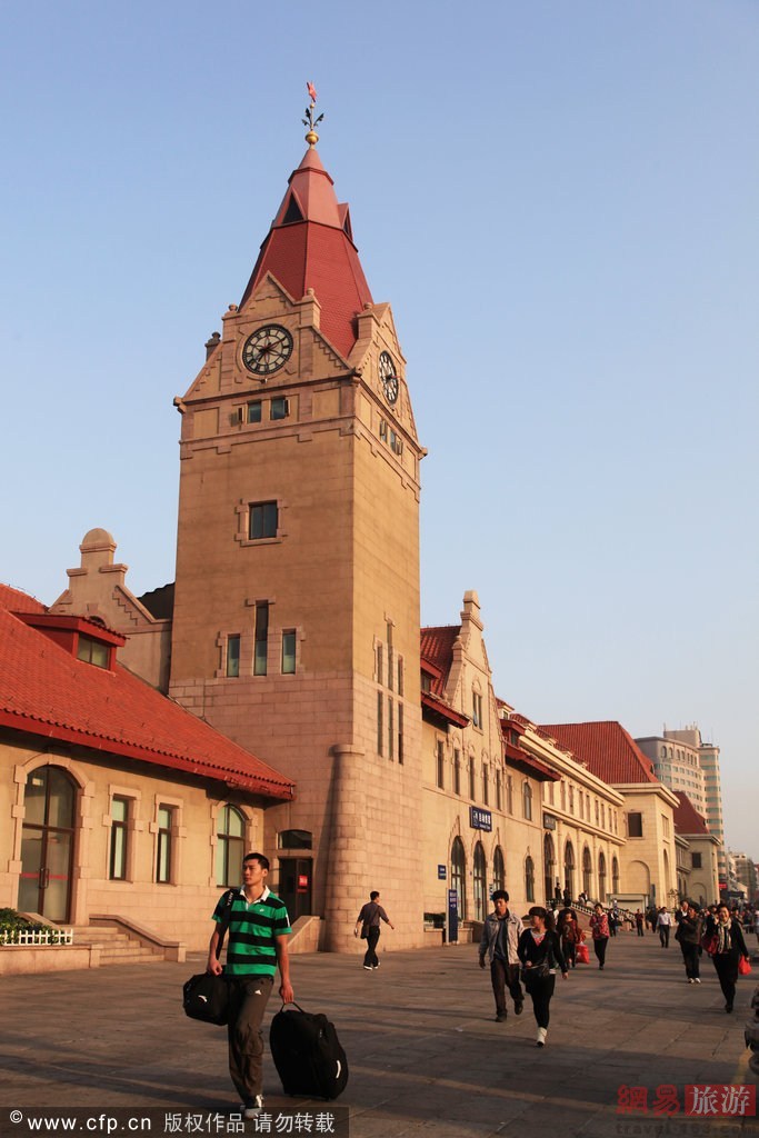 青岛站始建于1899年,站舍为纯粹的德国文艺复兴风格作品,风格独特,距离海岸线仅300米。青岛站的设计师锡乐巴将他记忆中的德国教堂原封不动地搬到了青岛。一百多年间,车站钟楼上行走的时钟一刻不停地记录了那些行色匆匆的旅客们。