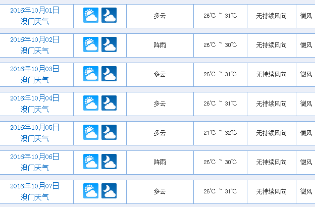 澳门往年十一天气预报