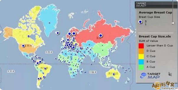 全球各国女性胸部大小排行榜出炉了!看过这个排行榜后,小编只想说,武媚娘传奇变成大头剧是有道理的。这份由谷歌发布的排行榜单中,红色代表大于D罩杯,橙色是D,黄色C, 蓝色B ,而绿色则为A,俄罗斯国土全被红色覆盖,代表该国女性胸部平均大于D罩杯;美国第二,巴西属于第三梯队;中国和日本在内的诸多亚洲、非洲国家,则是一片绿色,意味着女性平均胸部仅为A罩杯。
