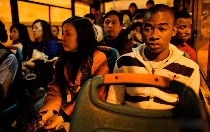 很多Nelson的同乡有时会抱怨中国人冷漠、不讲诚信,但Nelson相信,中国是机会最多的地方——即使这个城市有时对他不够好,他却在这里赚到了父亲工作10年才能挣到的钱。图为工作了一天的Nelson搭公车回家。