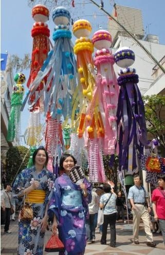 七夕节在日本仙台已有近400年的历史,原是朝廷贵族的祭祀活动,又称“乞巧奠”。从江户时代起,才成为一种民间庆祝活动。