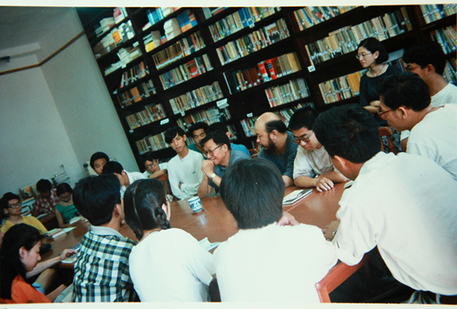 (1996年7月,著名出版家沈昌文先生在万圣书园讲座)