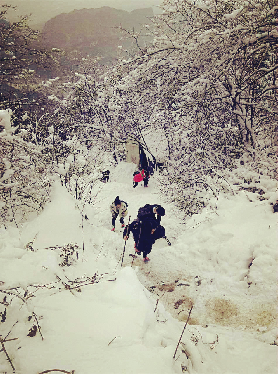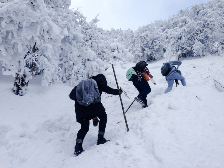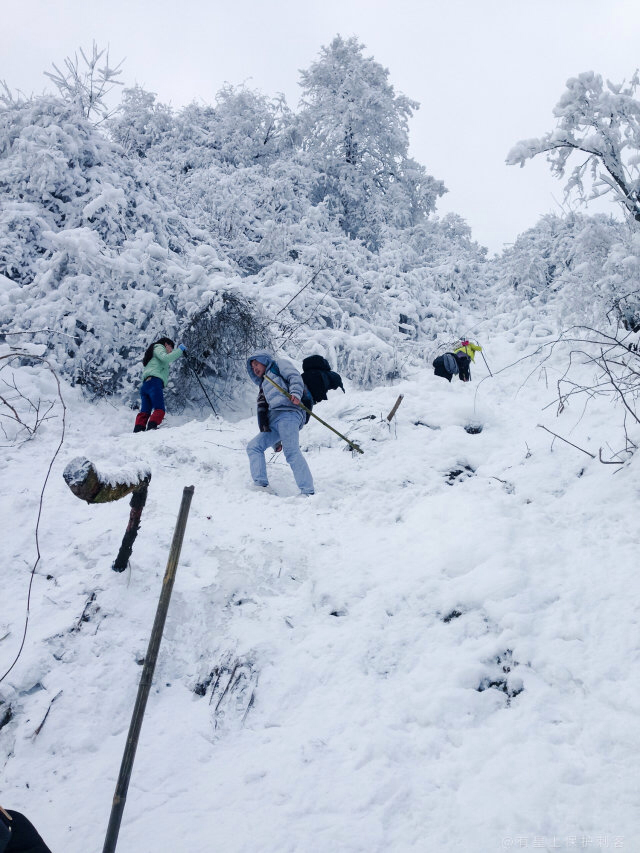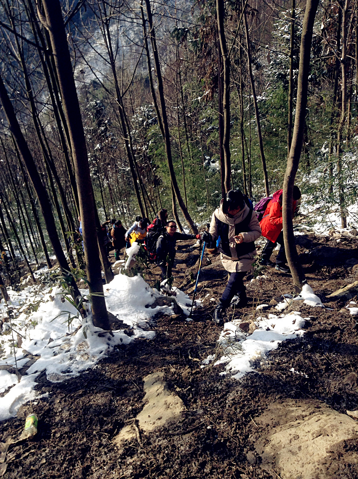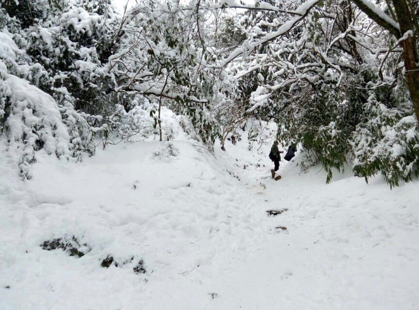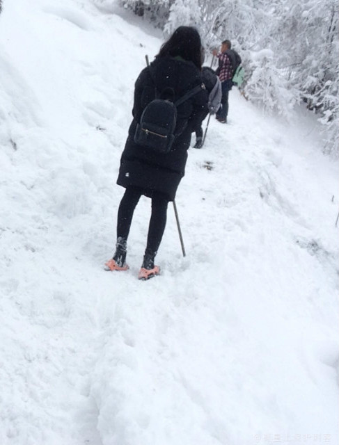 一路爬一路摔,终于到了海拔2000米的休息亭,累的我真的想要放弃,碰到几个已经登顶往山下走的伟人们,有的说还有一个多小时,有的说快了还有,还有说不要往上走了,山上雪积得更厚,很容易滑倒,不过我们哪有那么容易被打败,我深深体会了小马过河的故事,不过别人也确实是好心提醒,我也要成为像他们一样的伟人