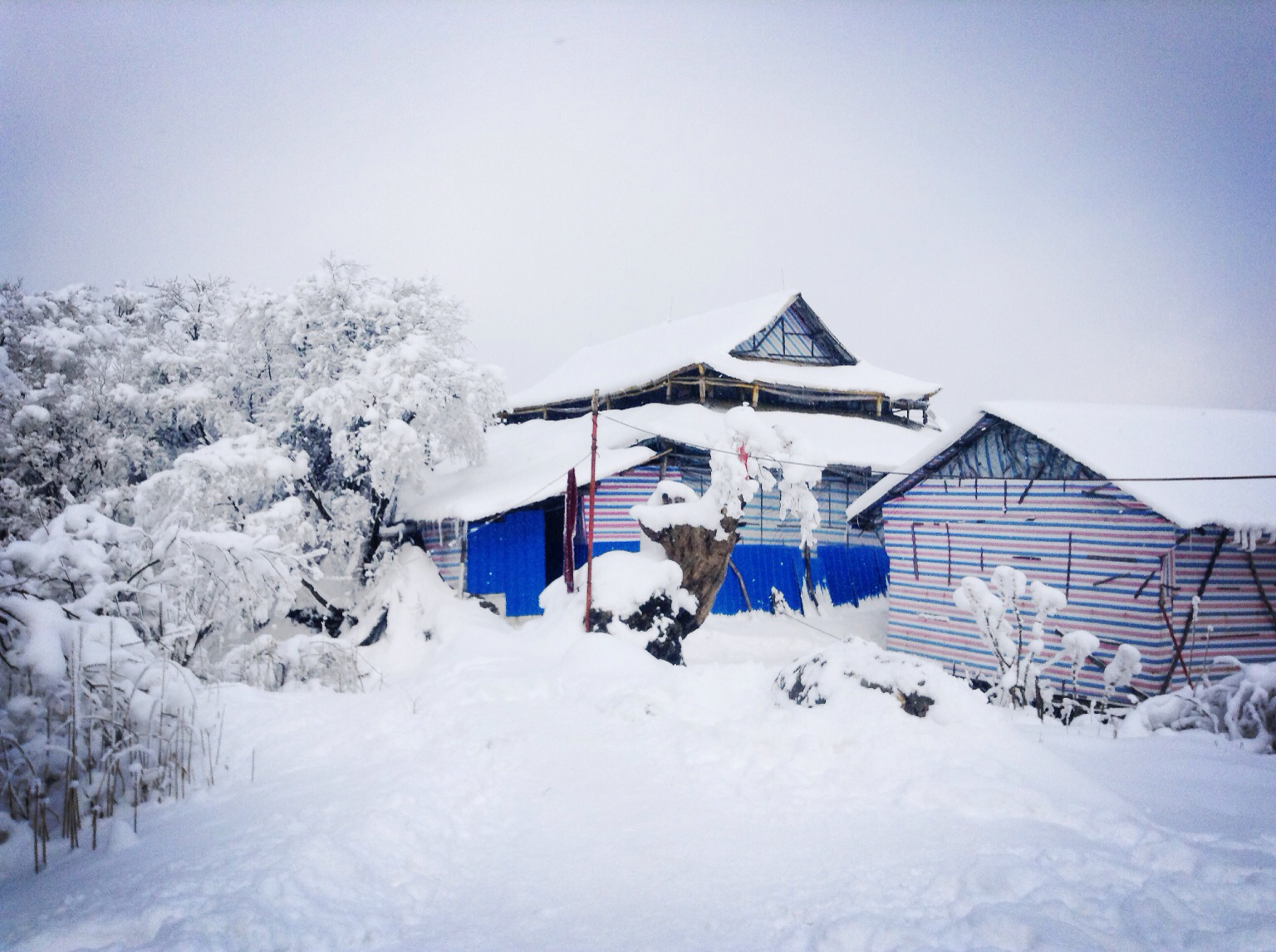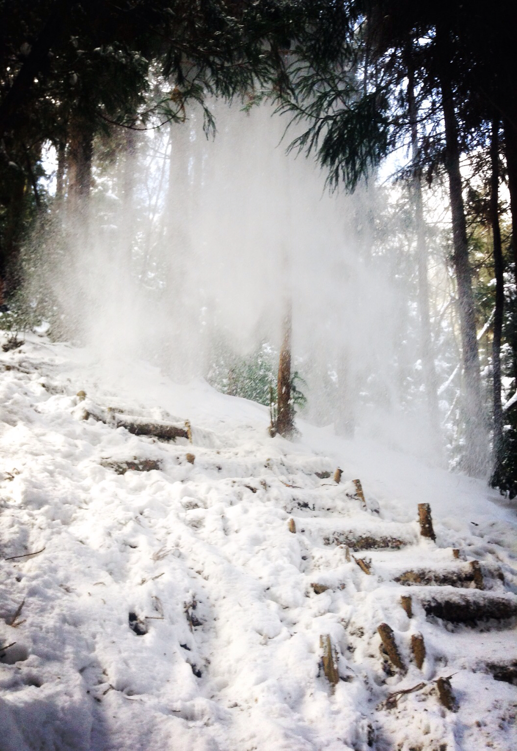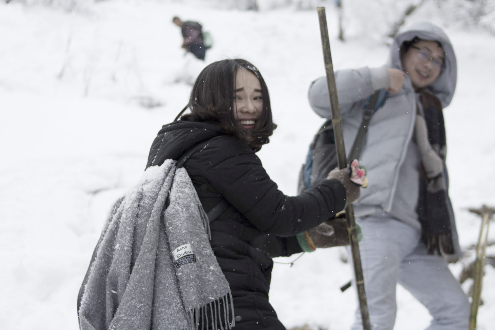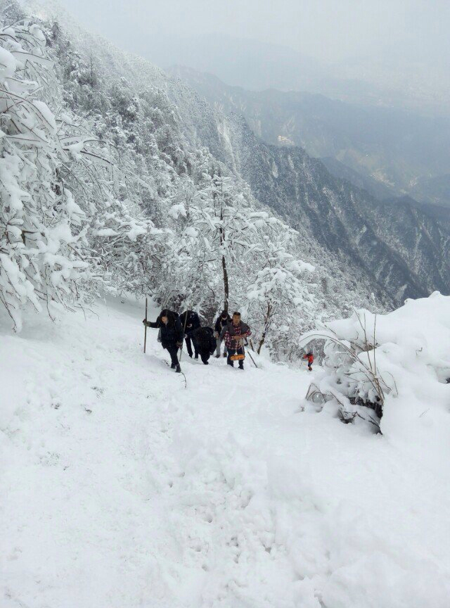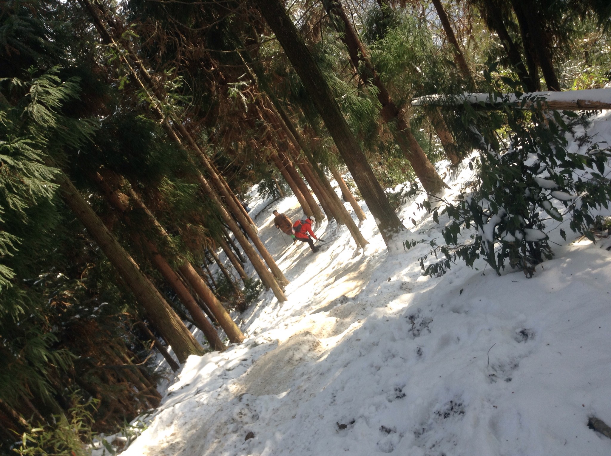 一路爬一路摔,终于到了海拔2000米的休息亭,累的我真的想要放弃,碰到几个已经登顶往山下走的伟人们,有的说还有一个多小时,有的说快了还有,还有说不要往上走了,山上雪积得更厚,很容易滑倒,不过我们哪有那么容易被打败,我深深体会了小马过河的故事,不过别人也确实是好心提醒,我也要成为像他们一样的伟人