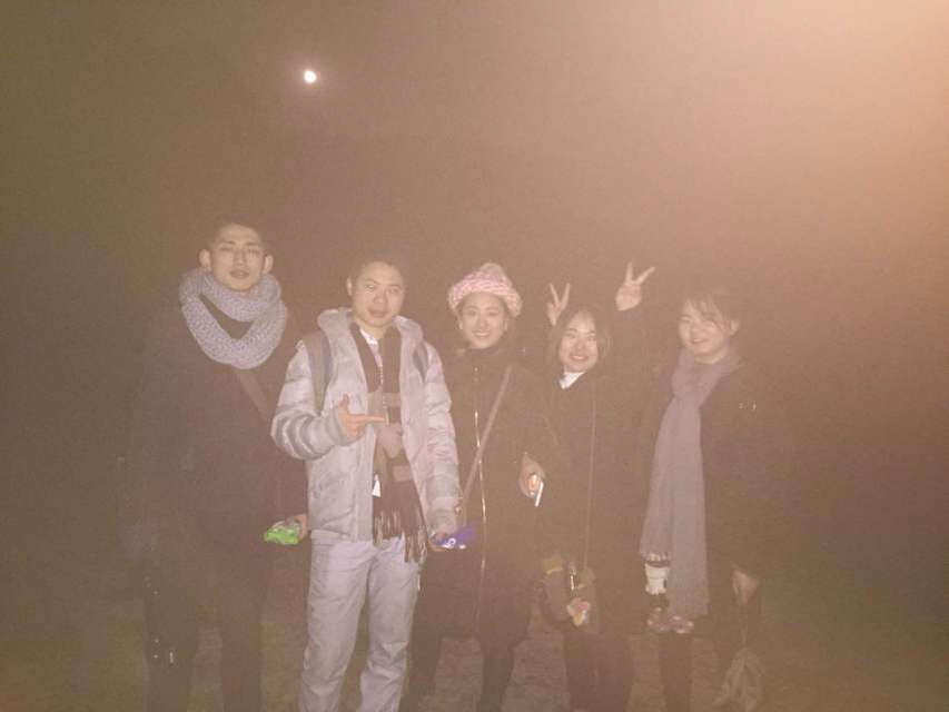 山顶上温度肯定是零下,但因为太冷,我都不想拿出手机看,不过听说他们手机已经被冻的开不了机,最好笑的是我的头发居然也冻得硬邦邦的。看下手表,3点半左右,从半山腰登顶我们整整花了三个多小时,抓紧时间下山吧。