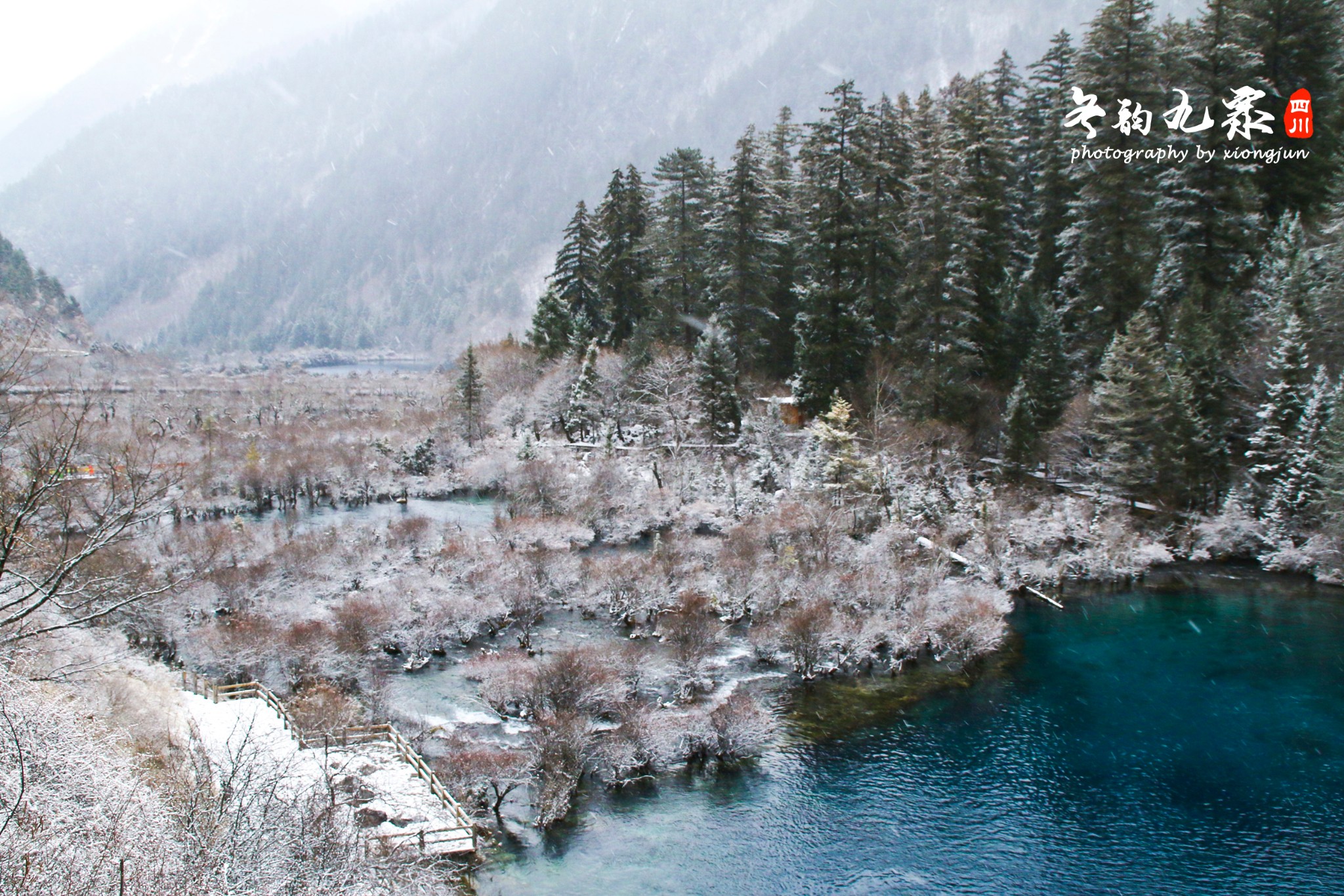 ▲▲“千山鸟飞绝,万径人踪灭”。有没有这种感觉,不过下一句不是“孤舟蓑笠翁,独钓寒江雪”,而是“大雪纷飞时,群游九寨沟”。