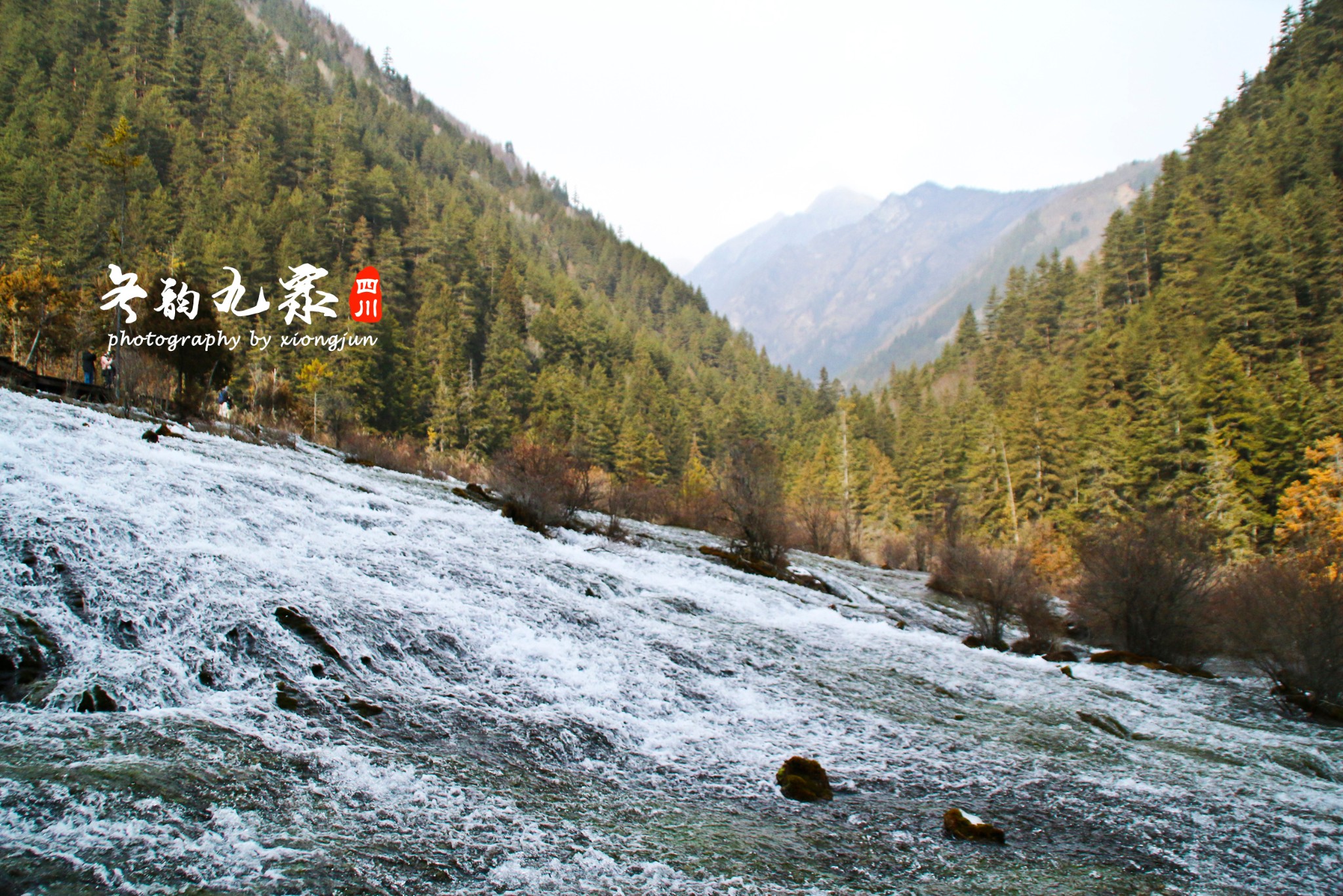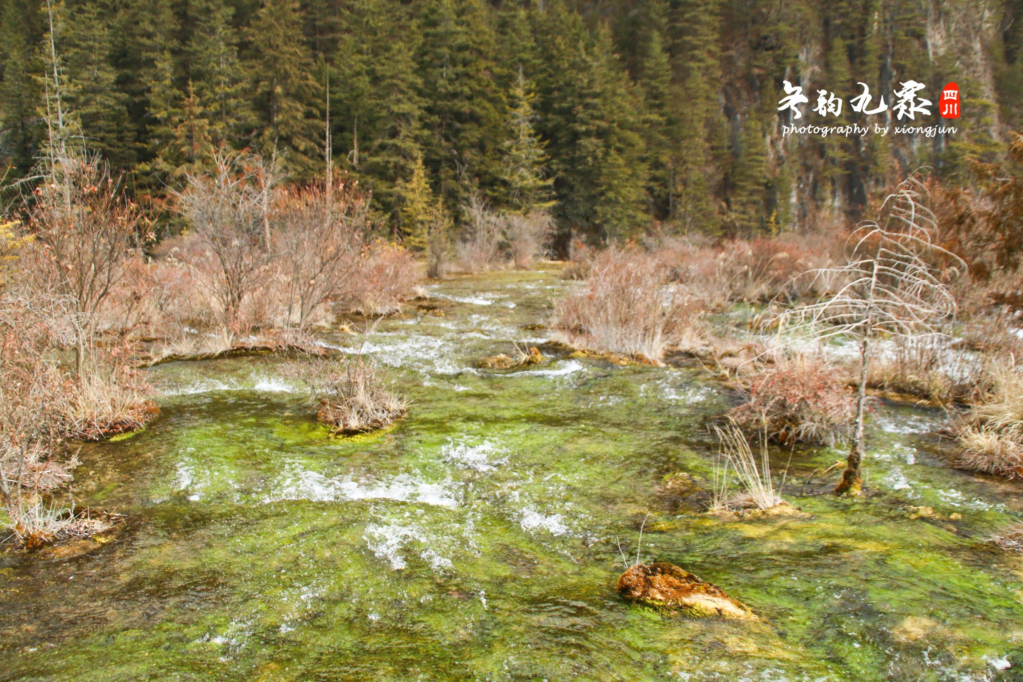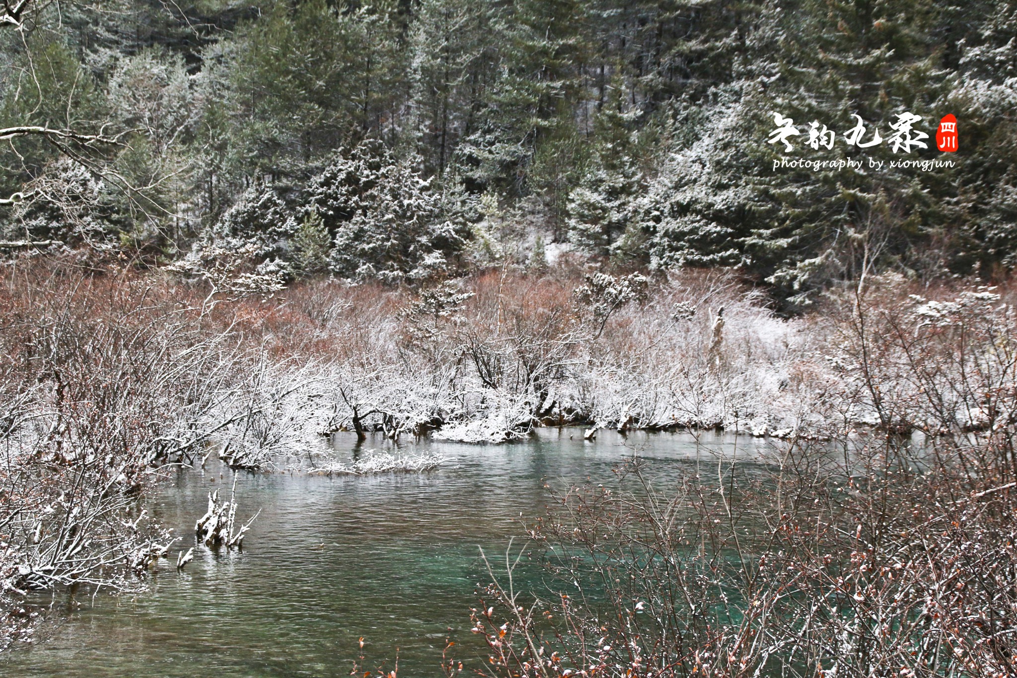 这是一片能让人静下心来的土地,因为,你可以细听冰雪的声音。它的气氛不需要夸大的语言去烘托,只需静静的矗立,便能懂得冬日九寨的美。
