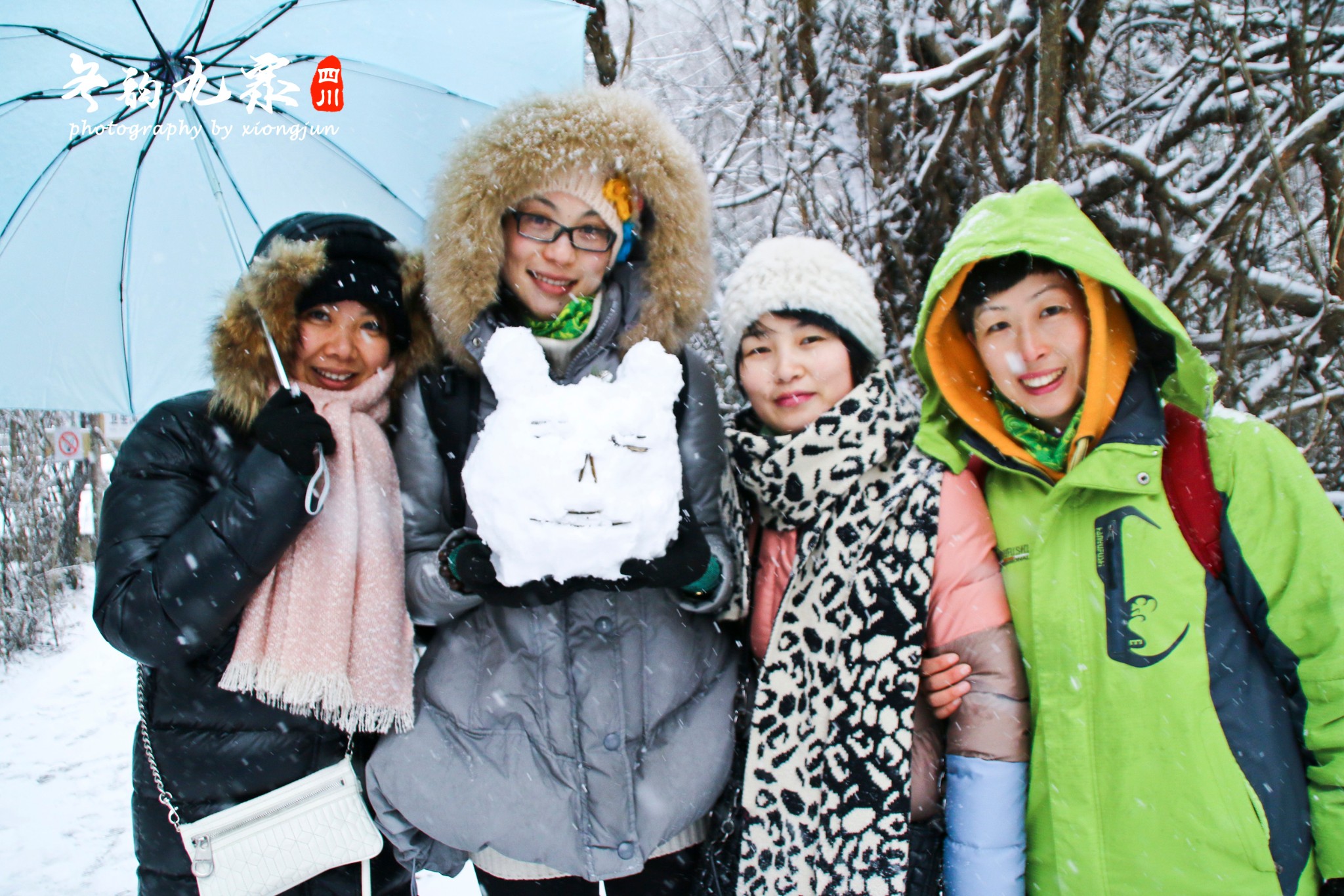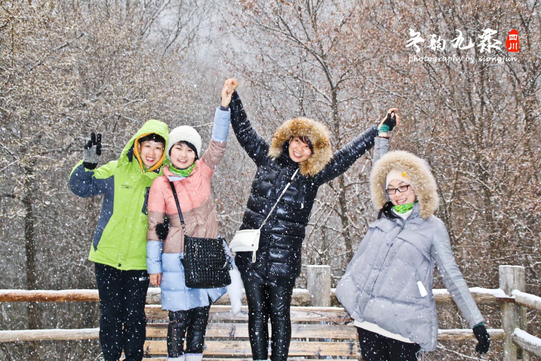 ▲▲这四位美女见我们拍的正嗨,也主动请我帮忙拍一个合照,也是美美哒。这时候手已经冷得快要失去知觉了,为了拍几张照片都是先把手放在衣服口袋暖和几分钟在拿出来按快门。