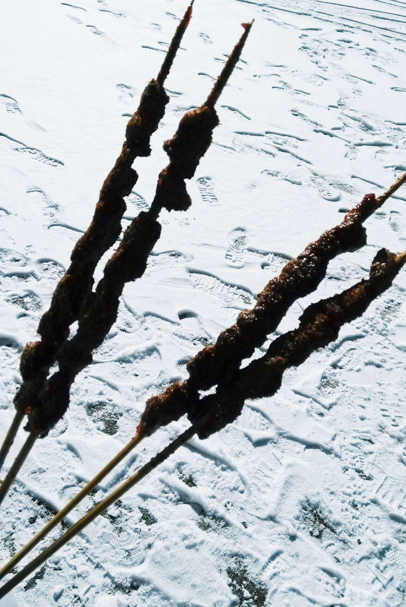 ▲▲在寒冷的雪地里,吃上几串热乎乎的羊肉串,甚是美味,哈哈哈。