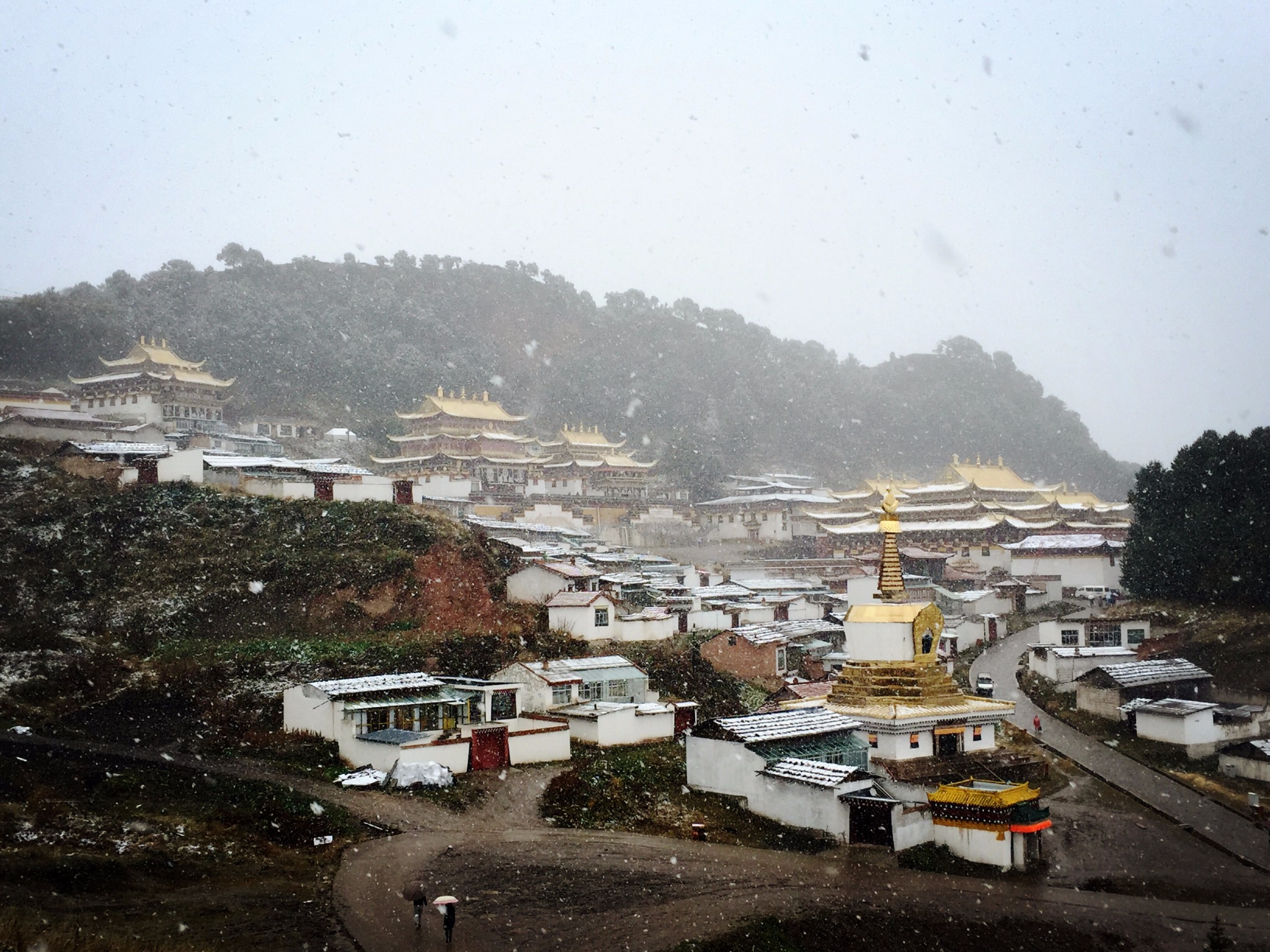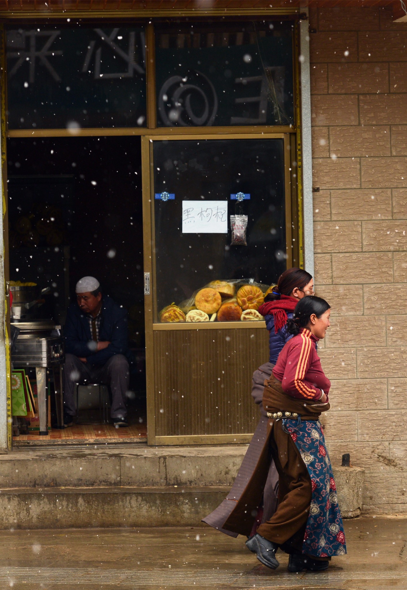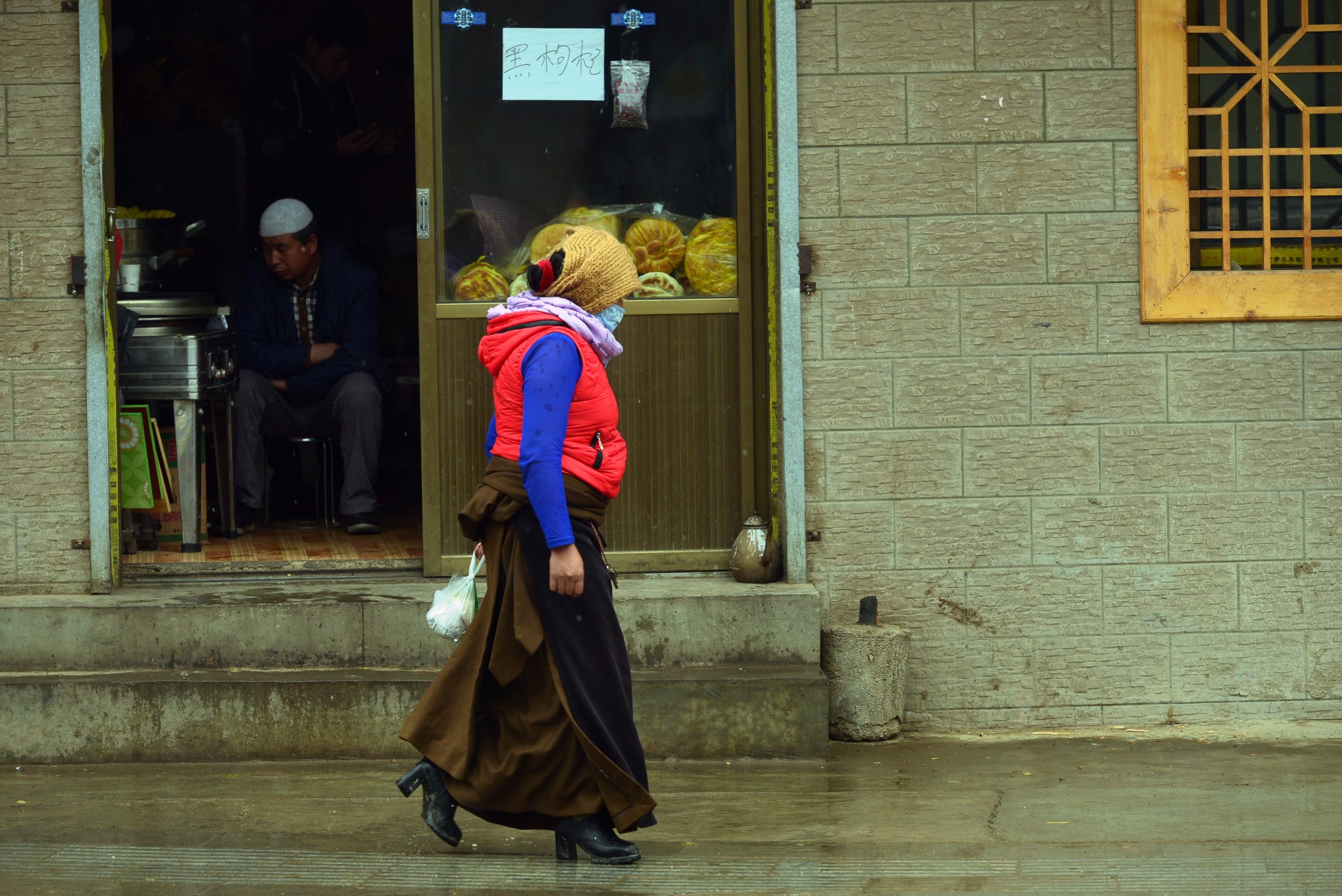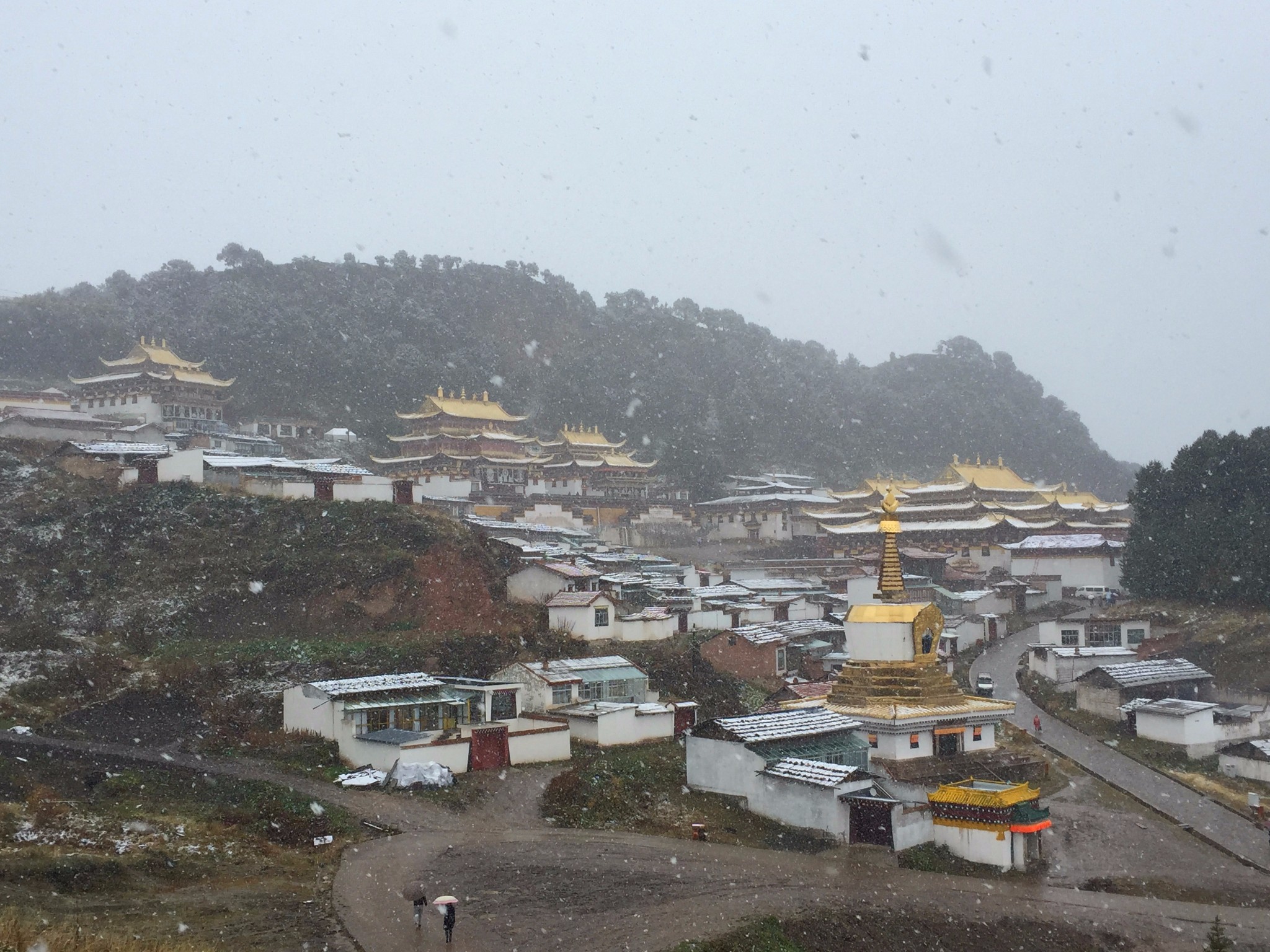 隔着玻璃从西餐厅往外看去,有一年龄不大的喇嘛站在路边,嘴上含着牙签,耳边贴着手机,一付酒肉穿肠过、佛祖心中留的样子。