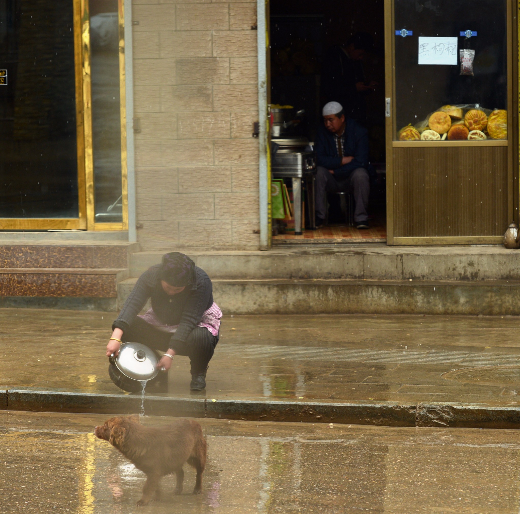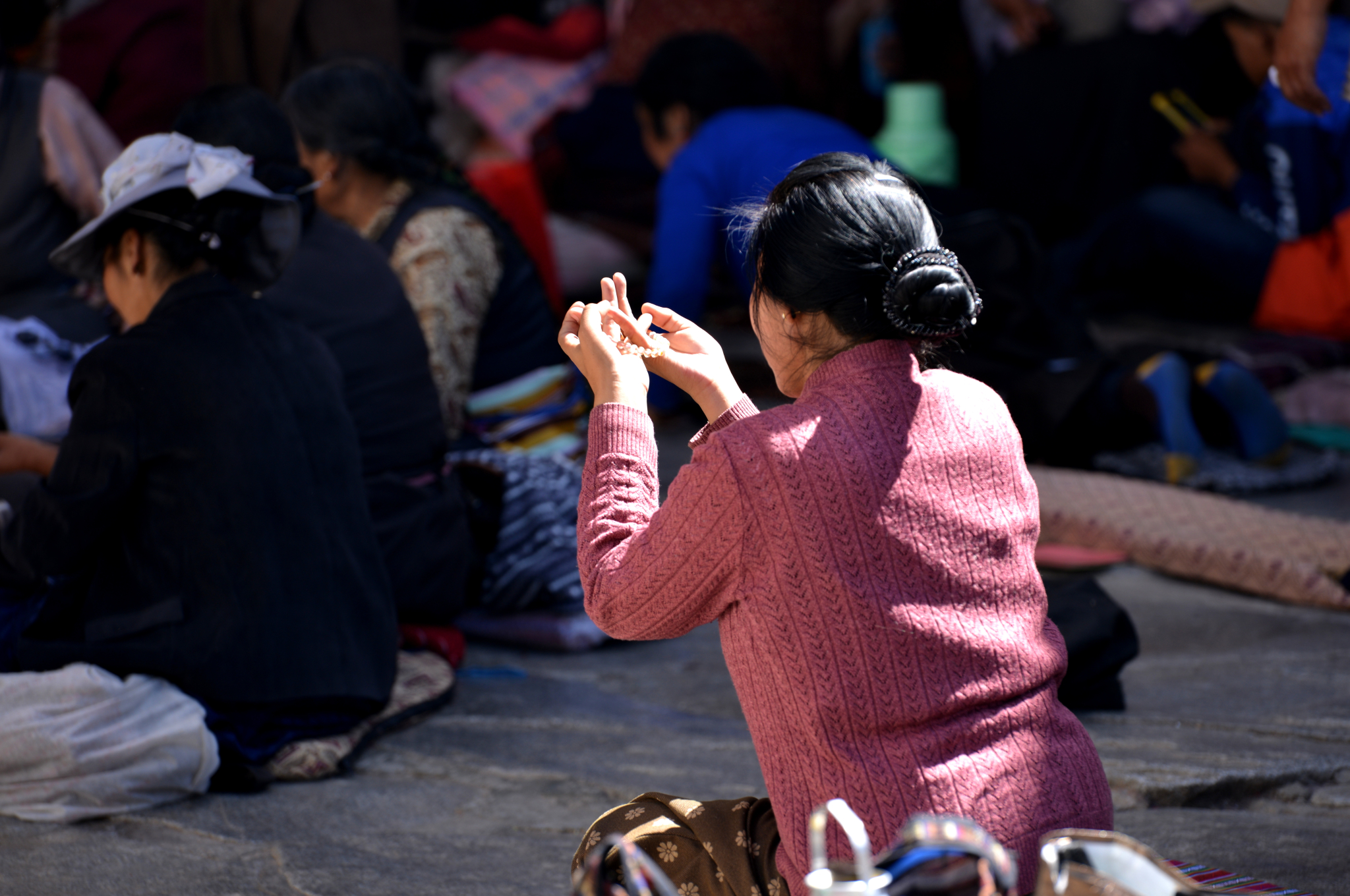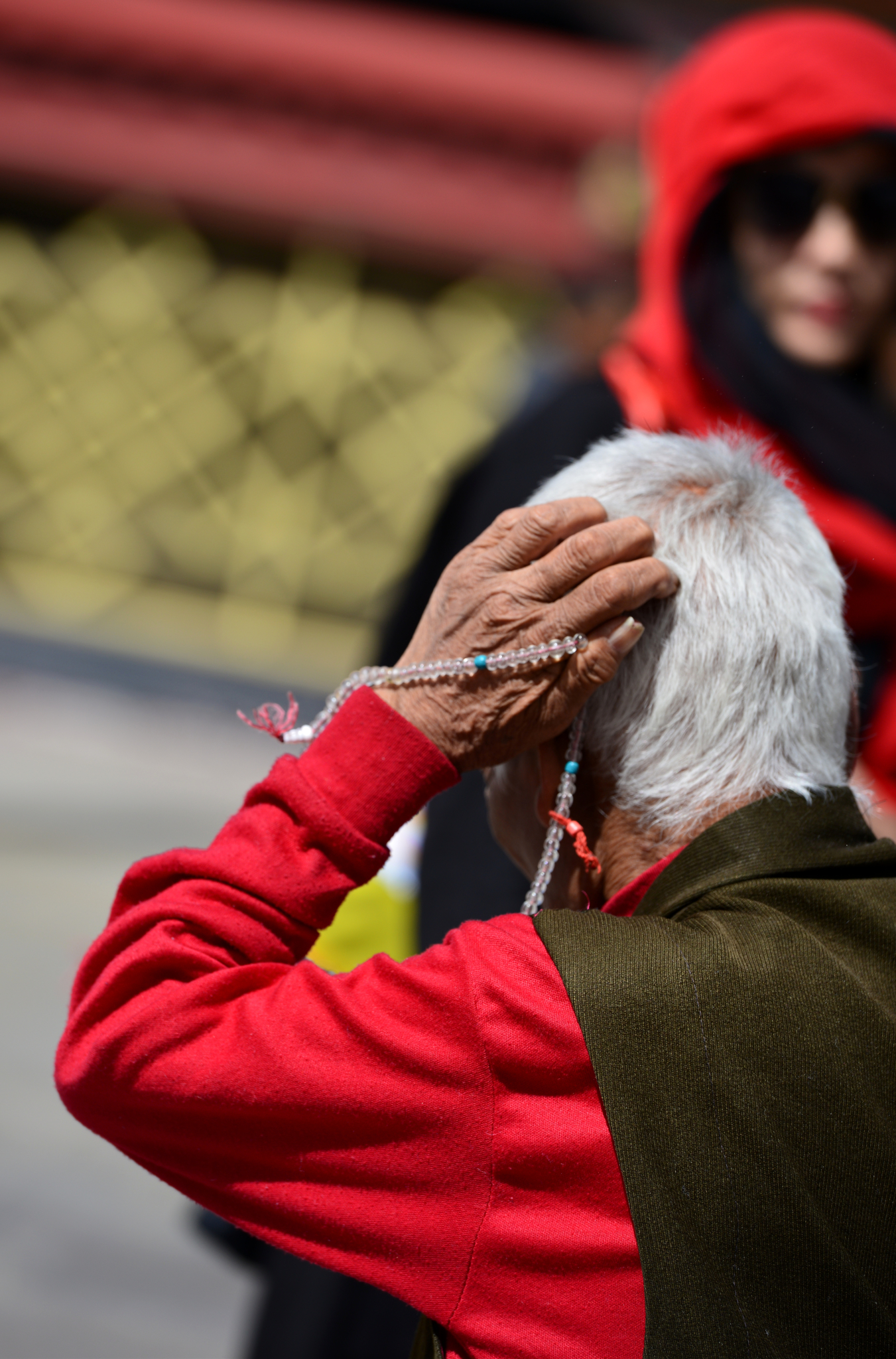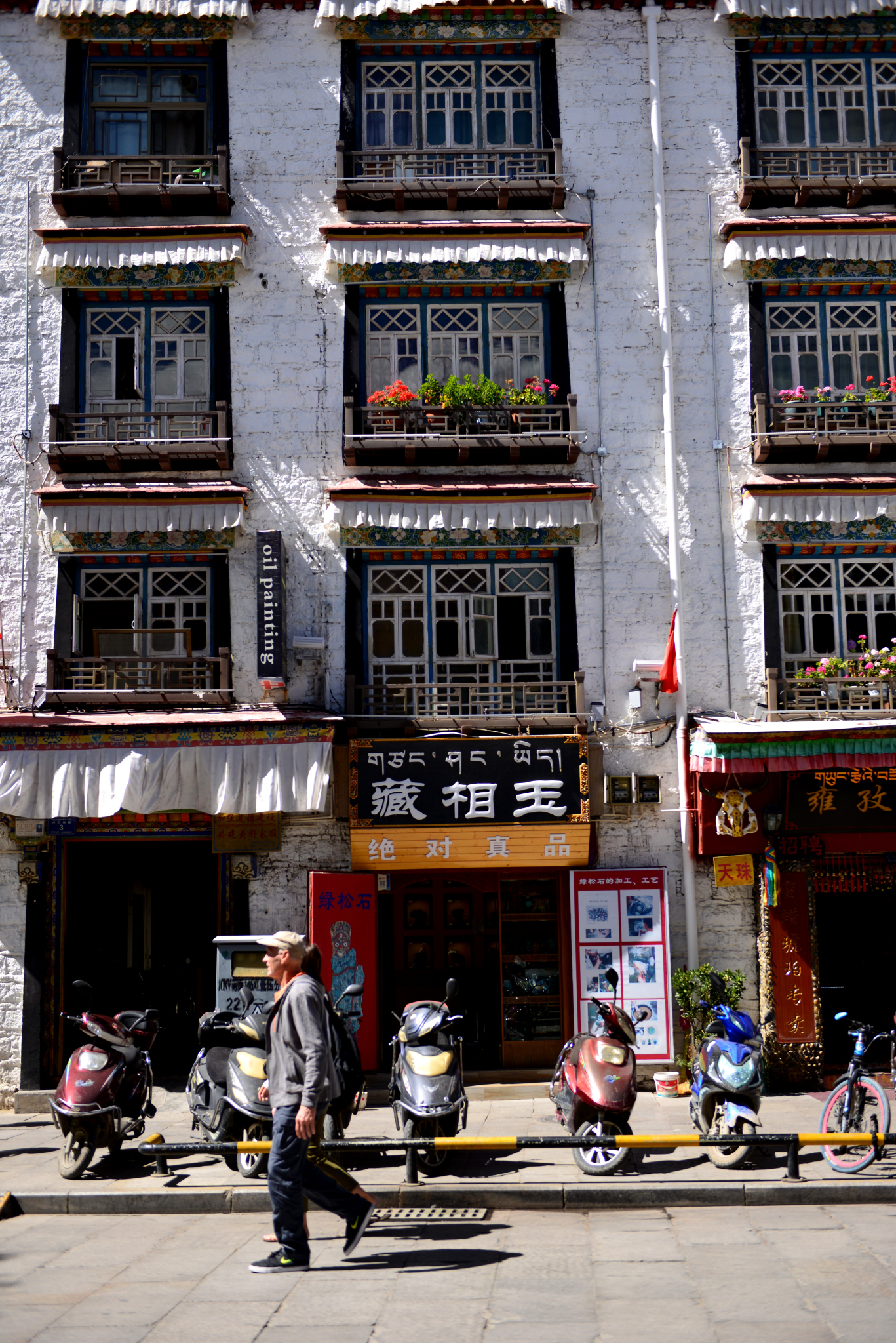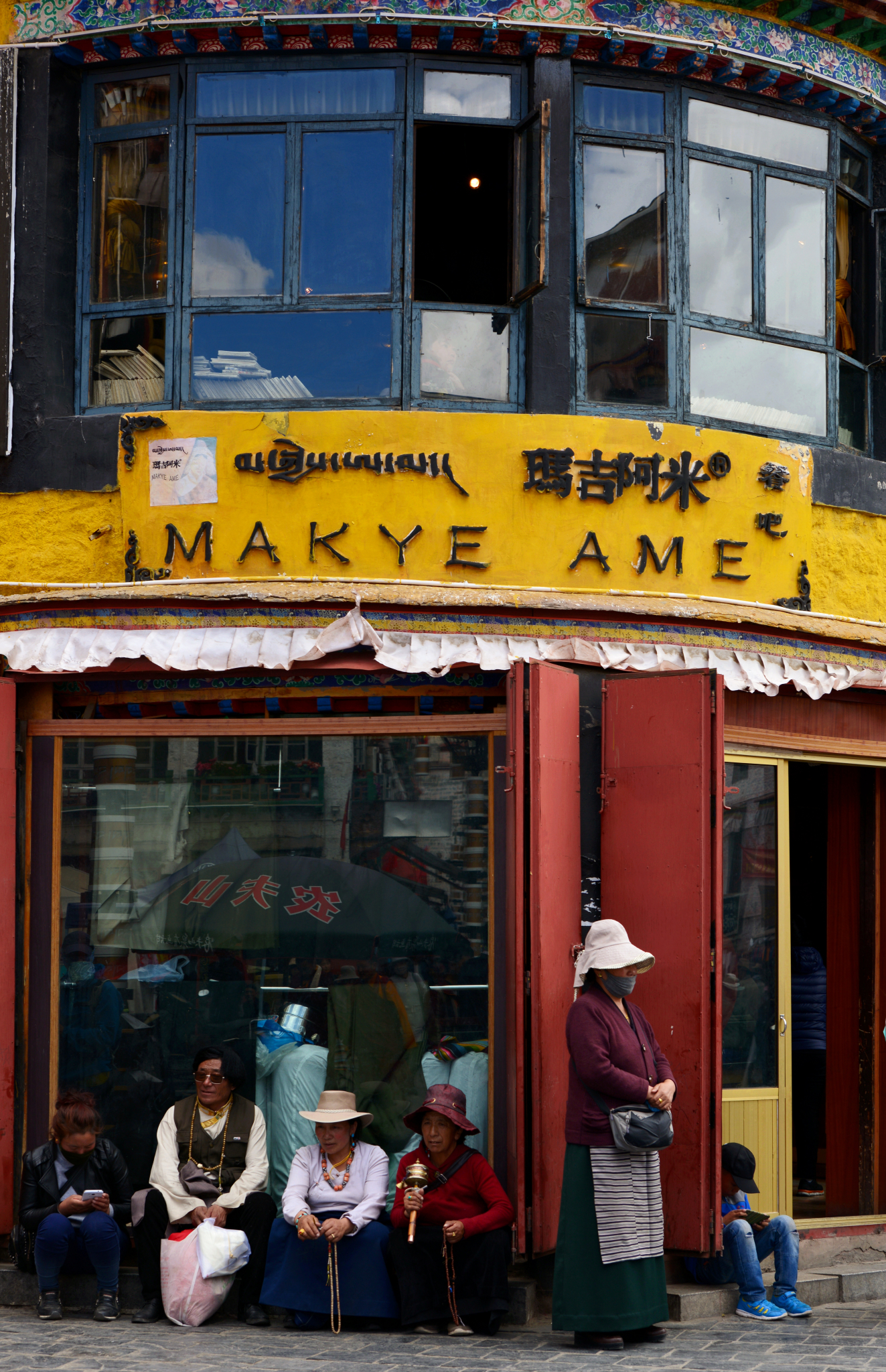隔着玻璃从西餐厅往外看去,有一年龄不大的喇嘛站在路边,嘴上含着牙签,耳边贴着手机,一付酒肉穿肠过、佛祖心中留的样子。