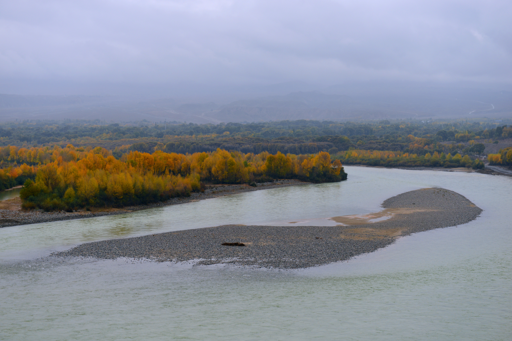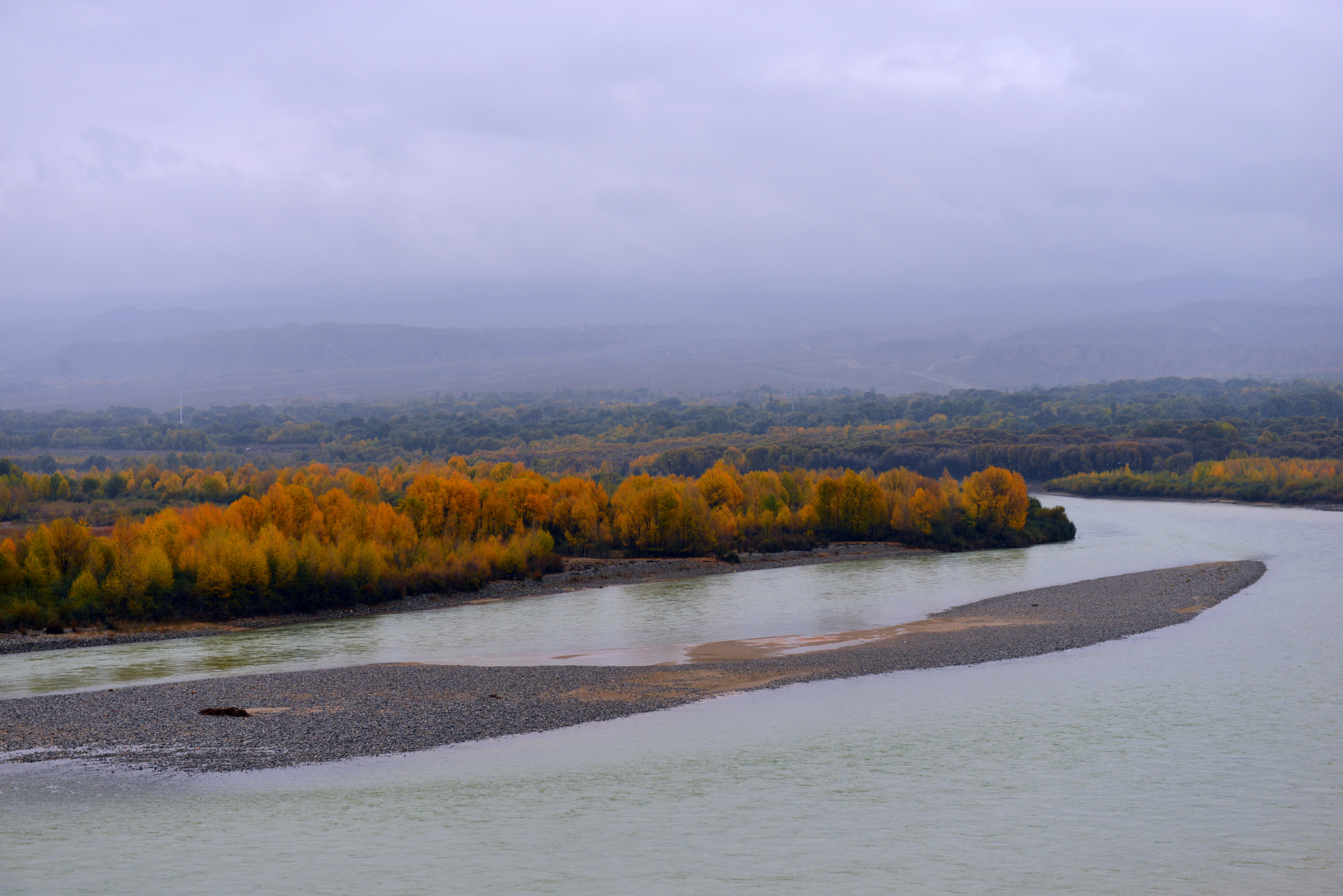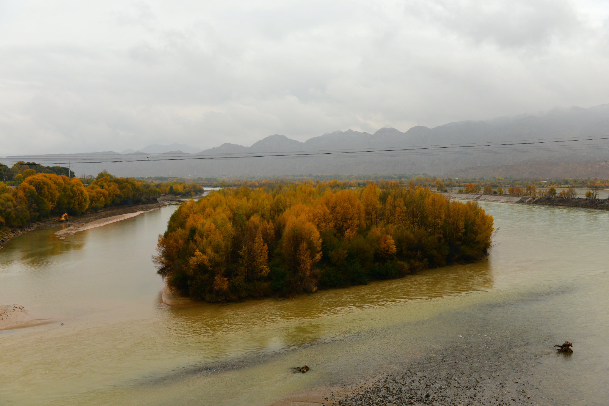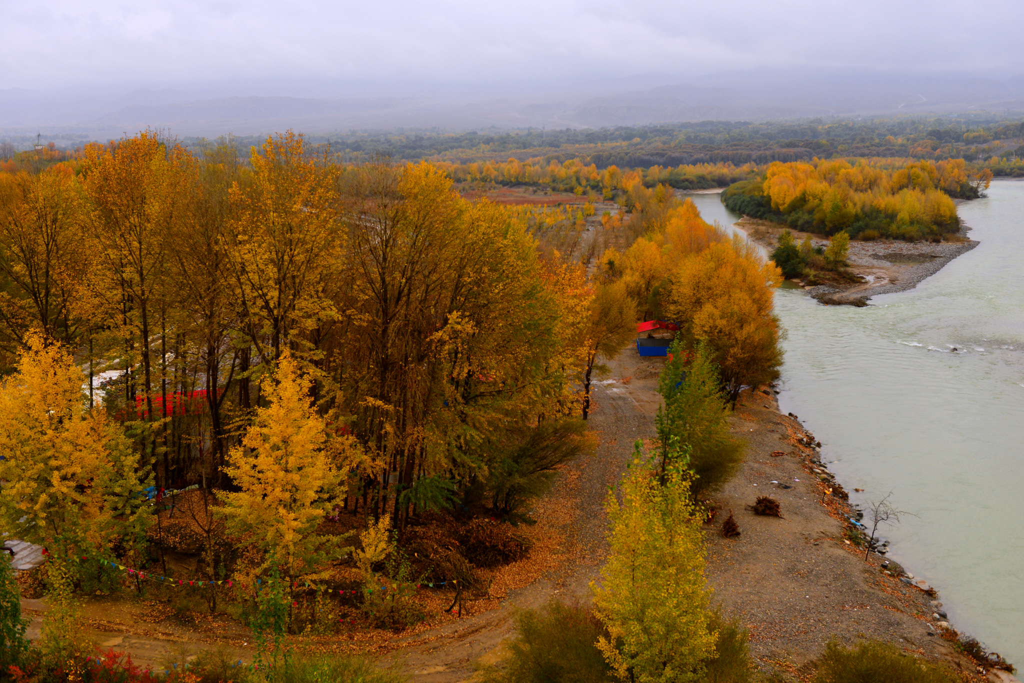 两岸树木秋色正浓,若是有阳光,真是出好片的地方。