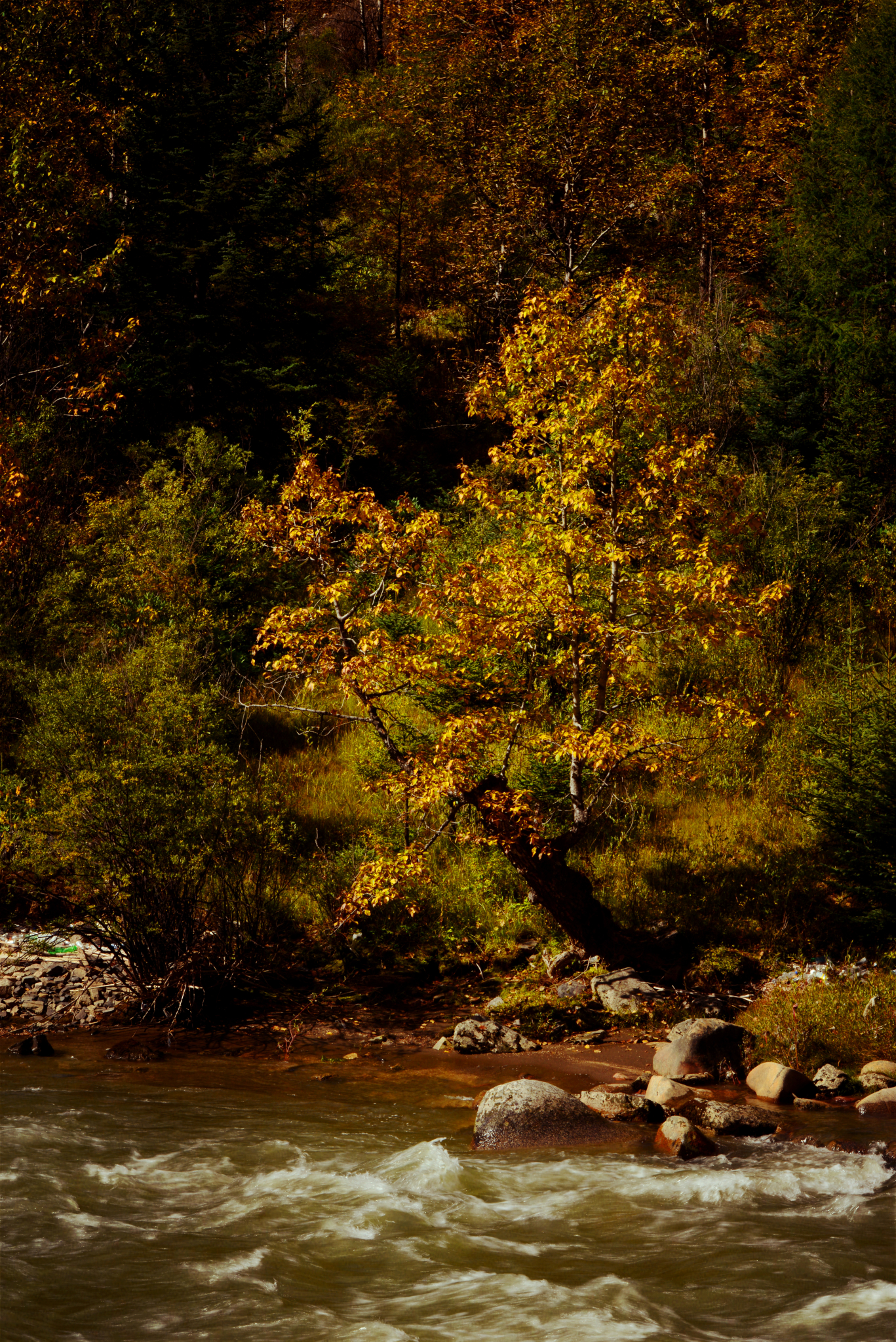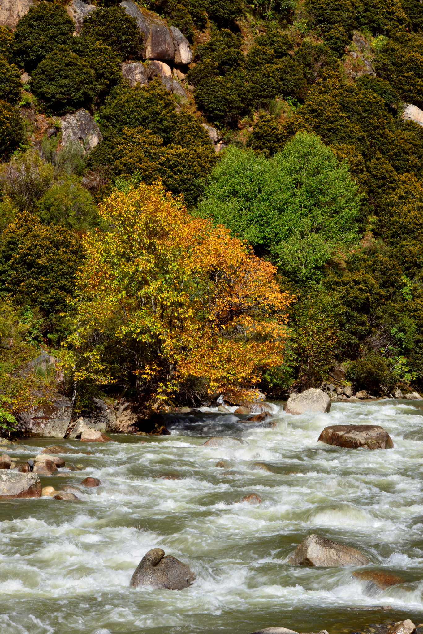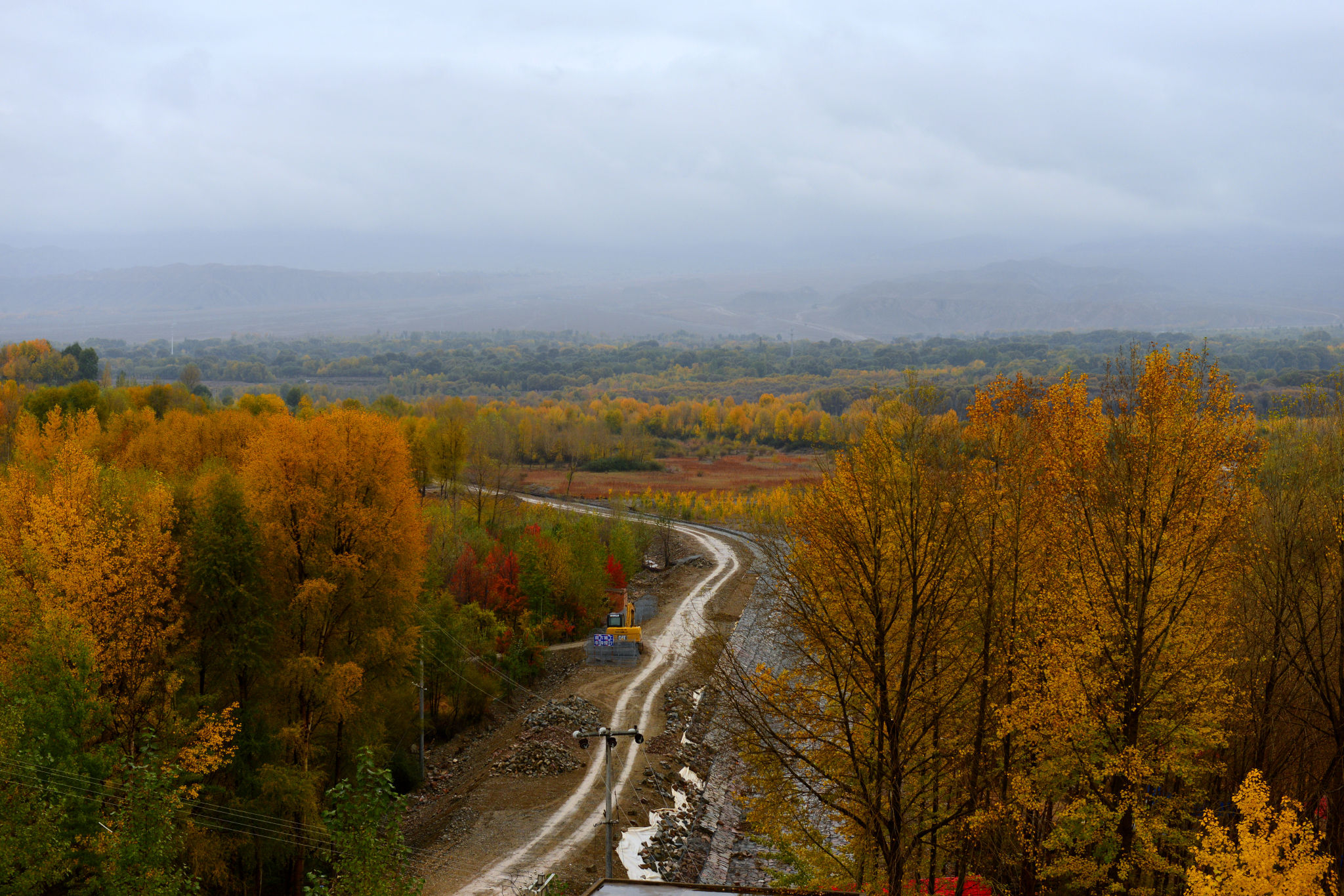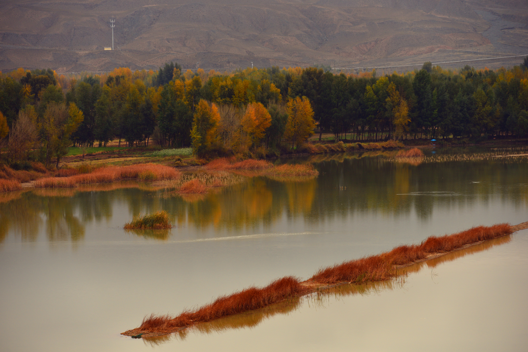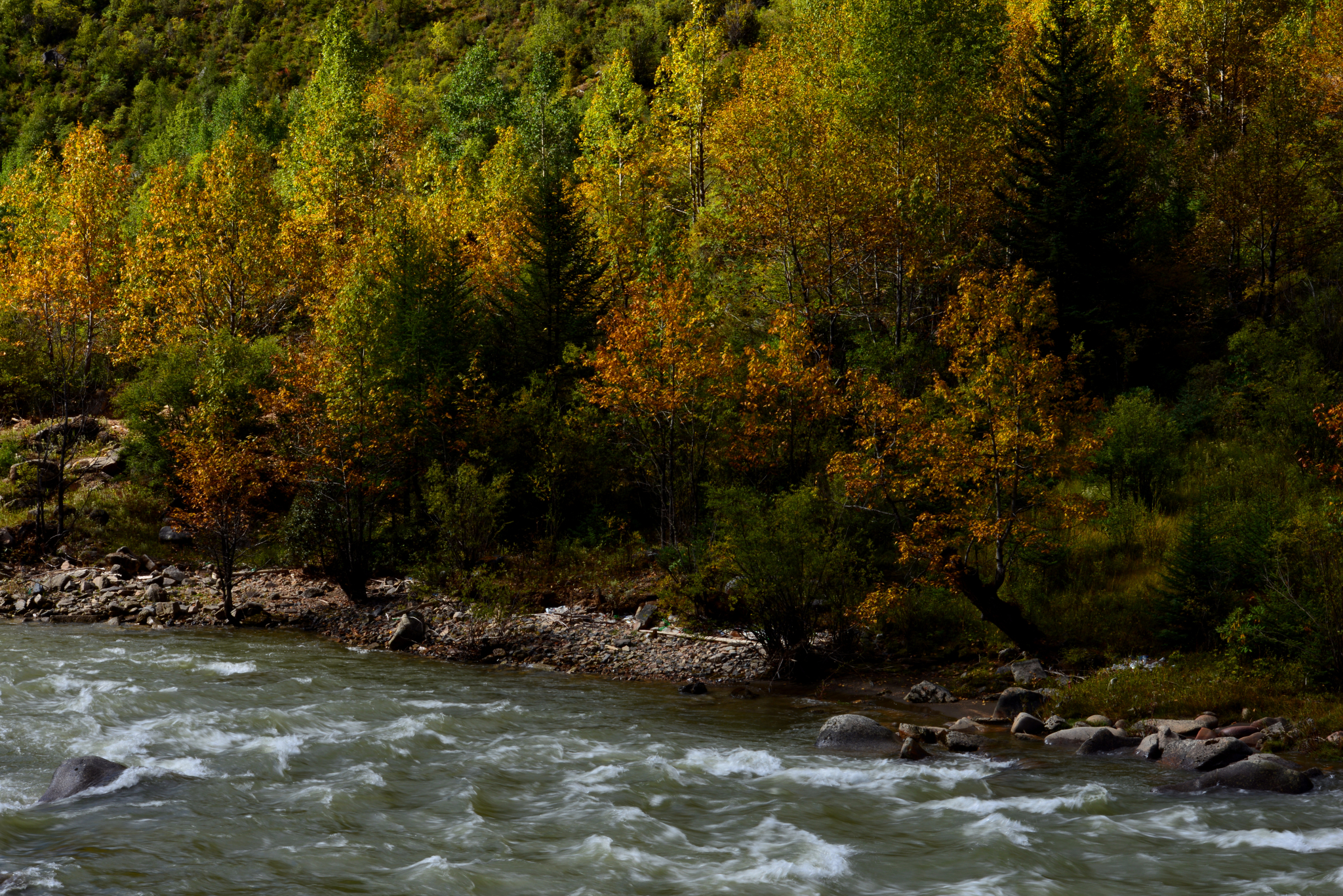两岸树木秋色正浓,若是有阳光,真是出好片的地方。