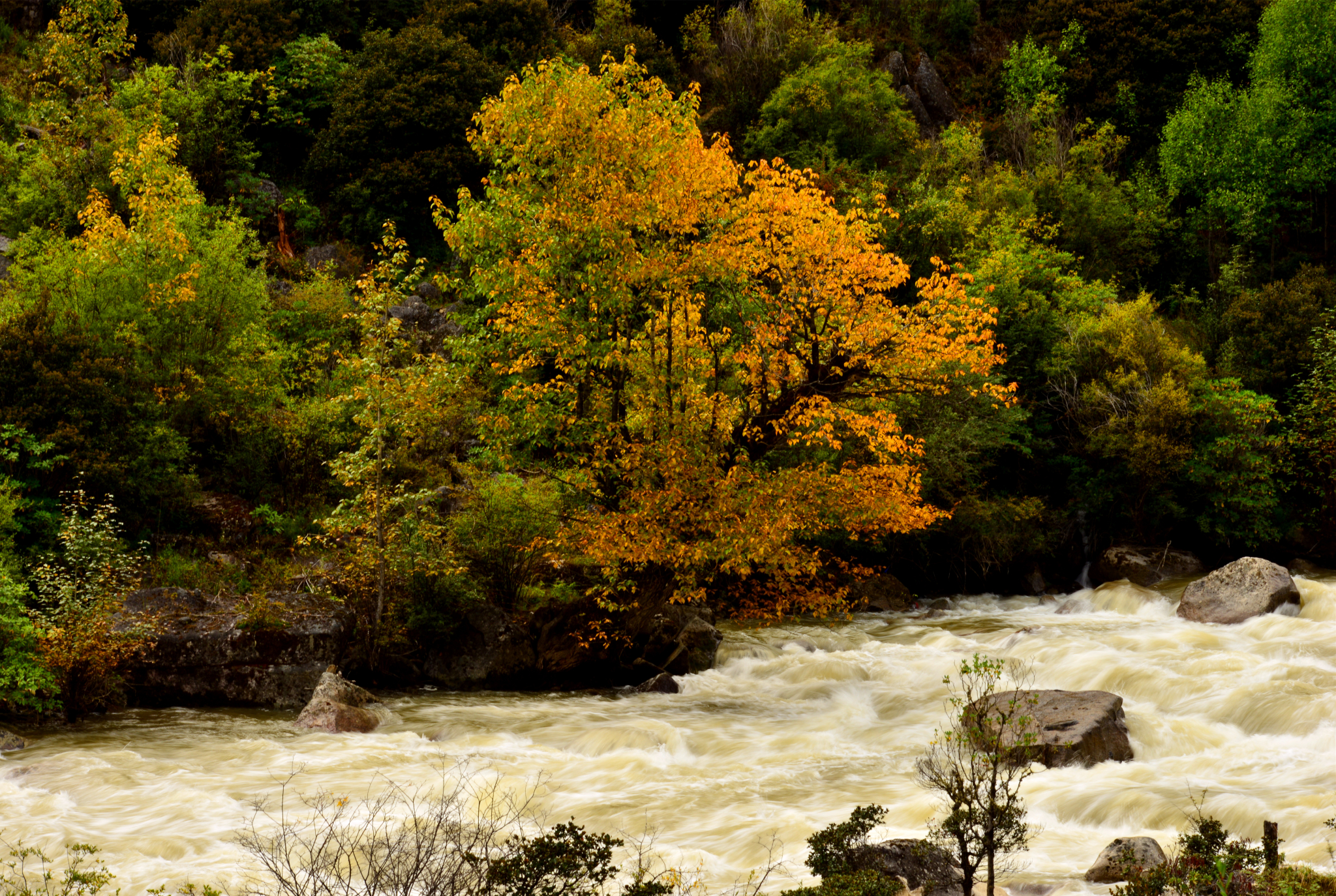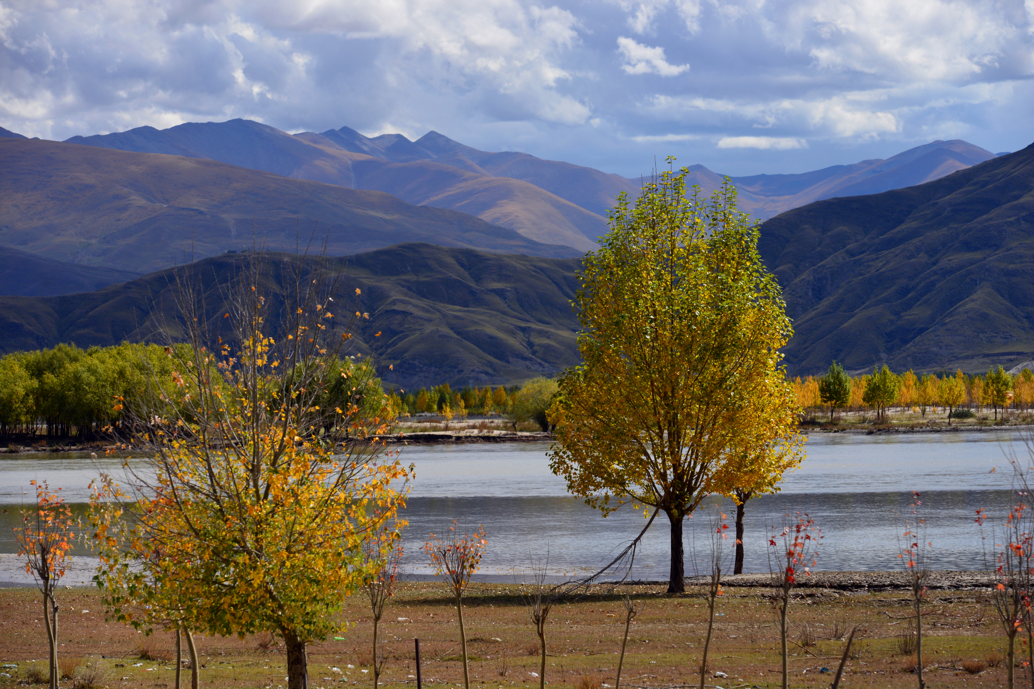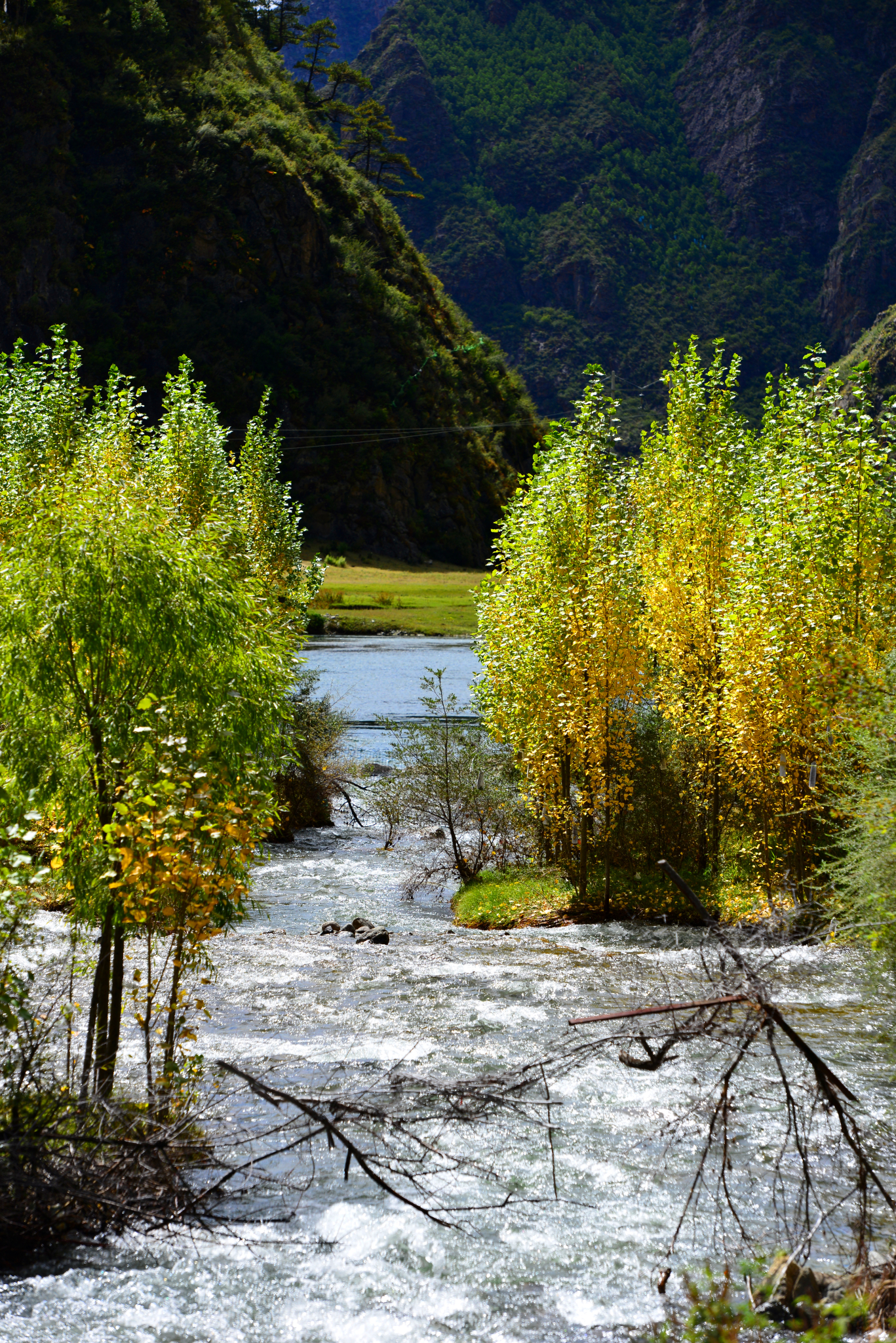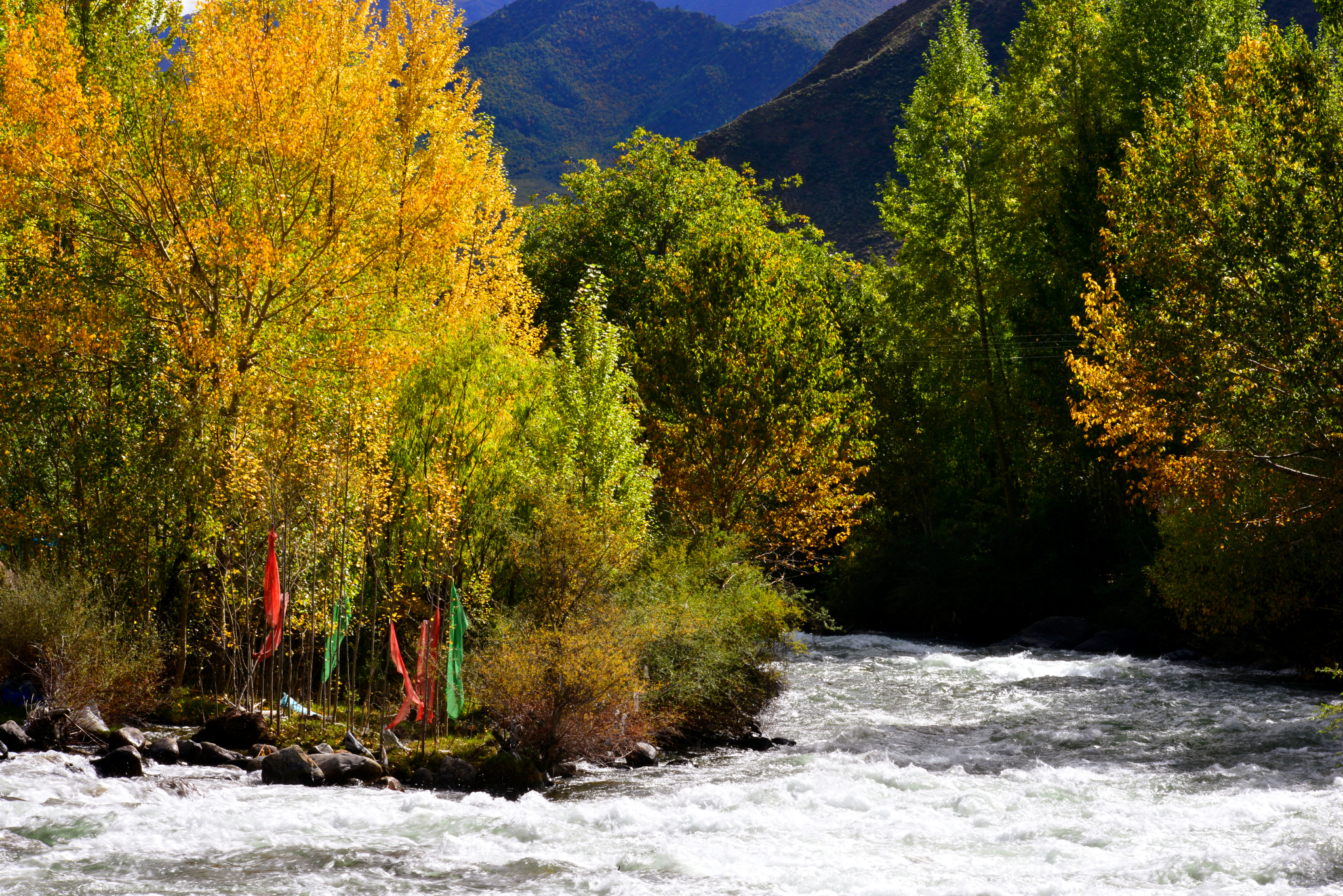 两岸树木秋色正浓,若是有阳光,真是出好片的地方。