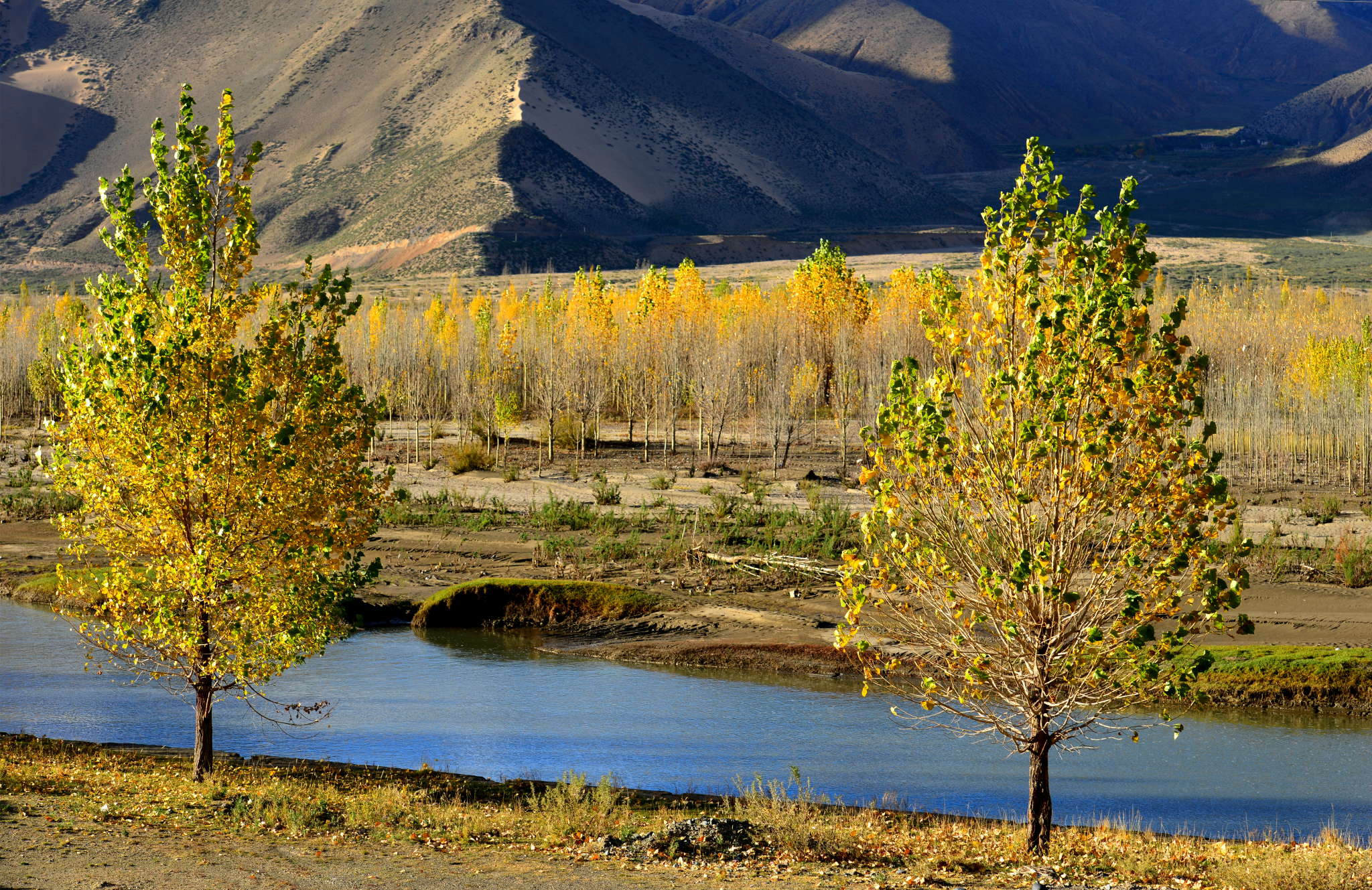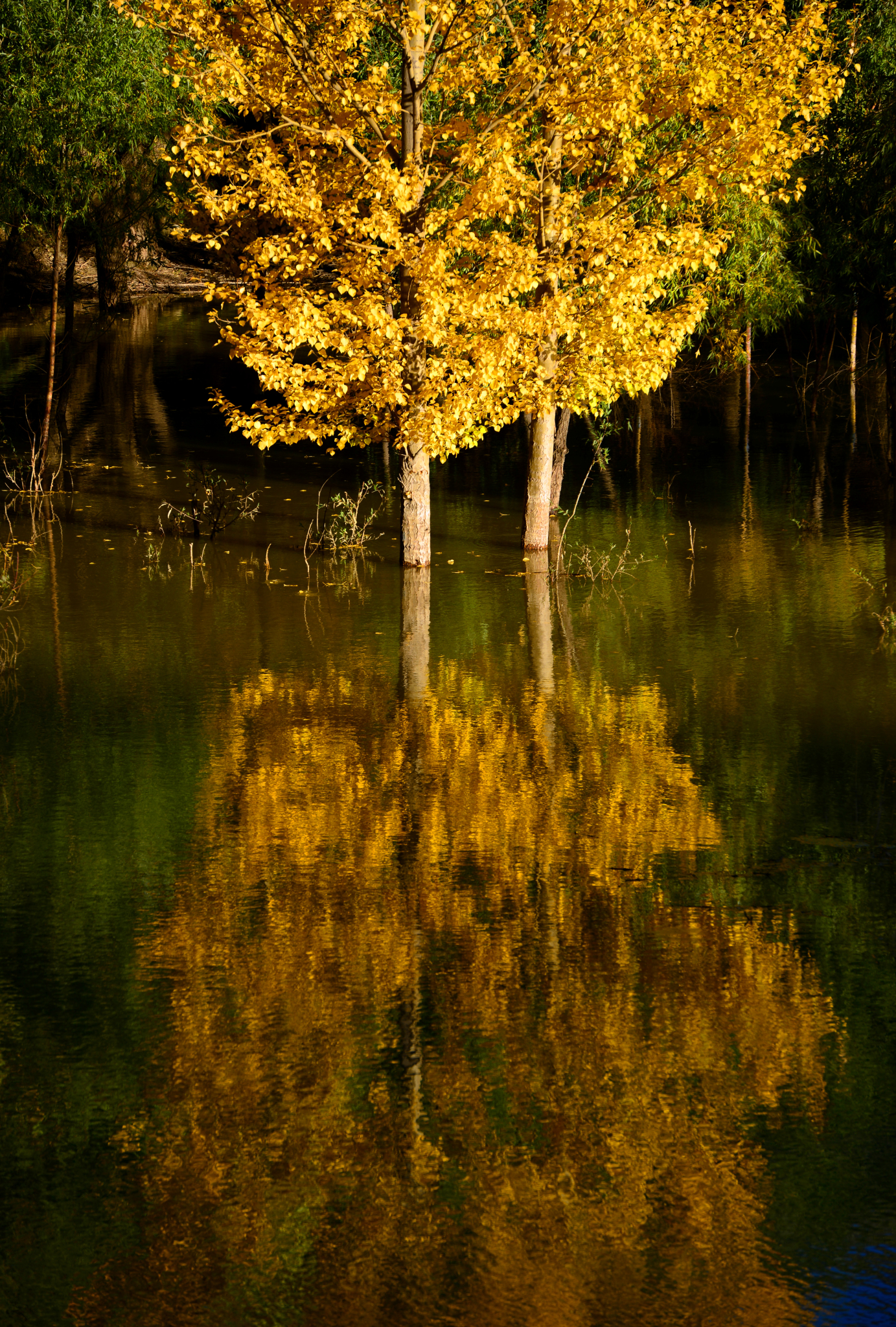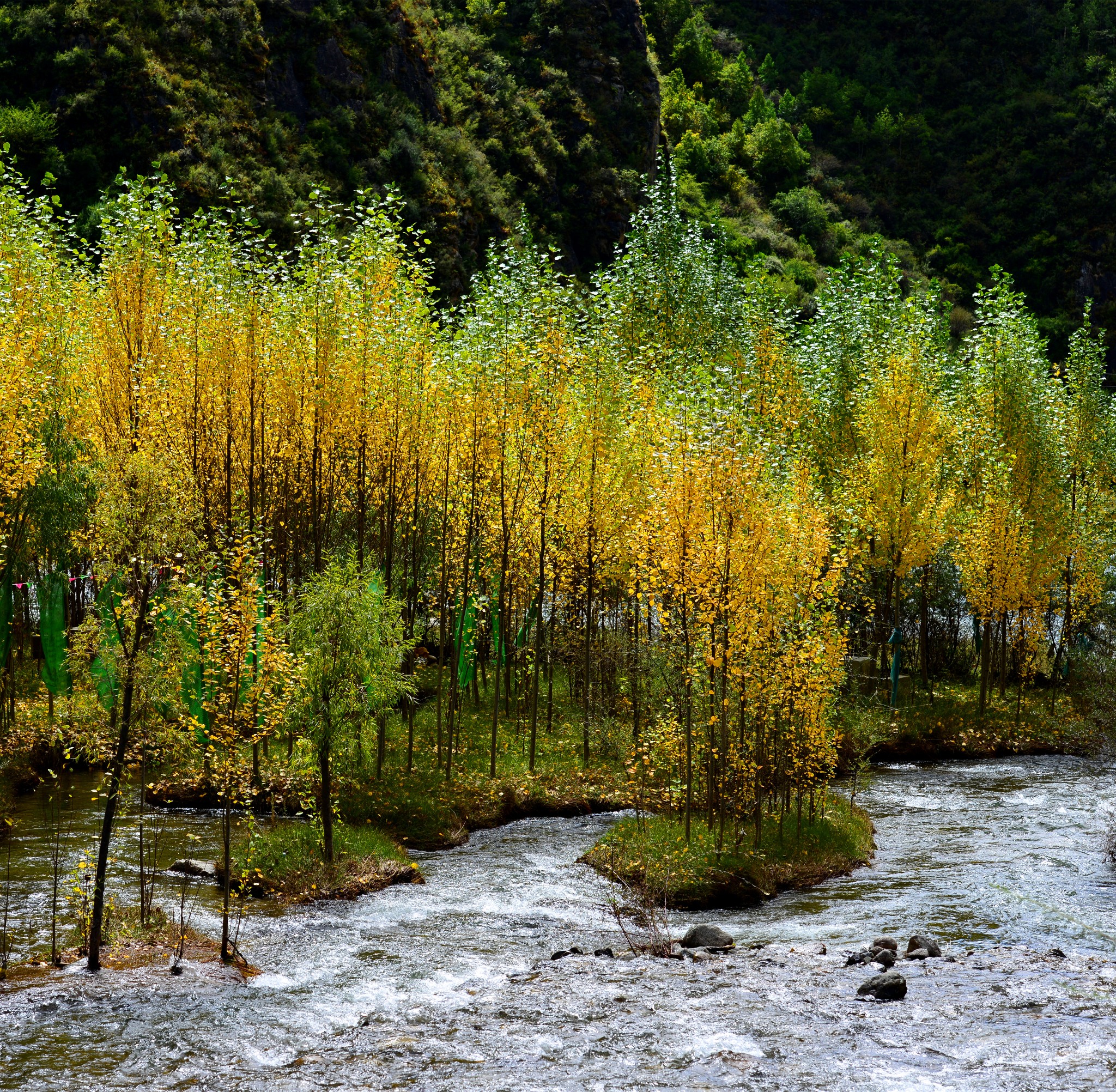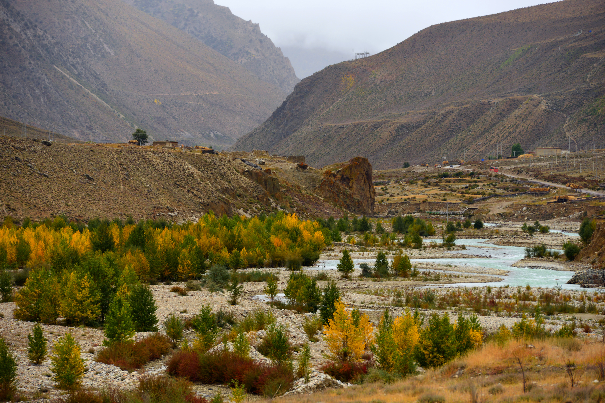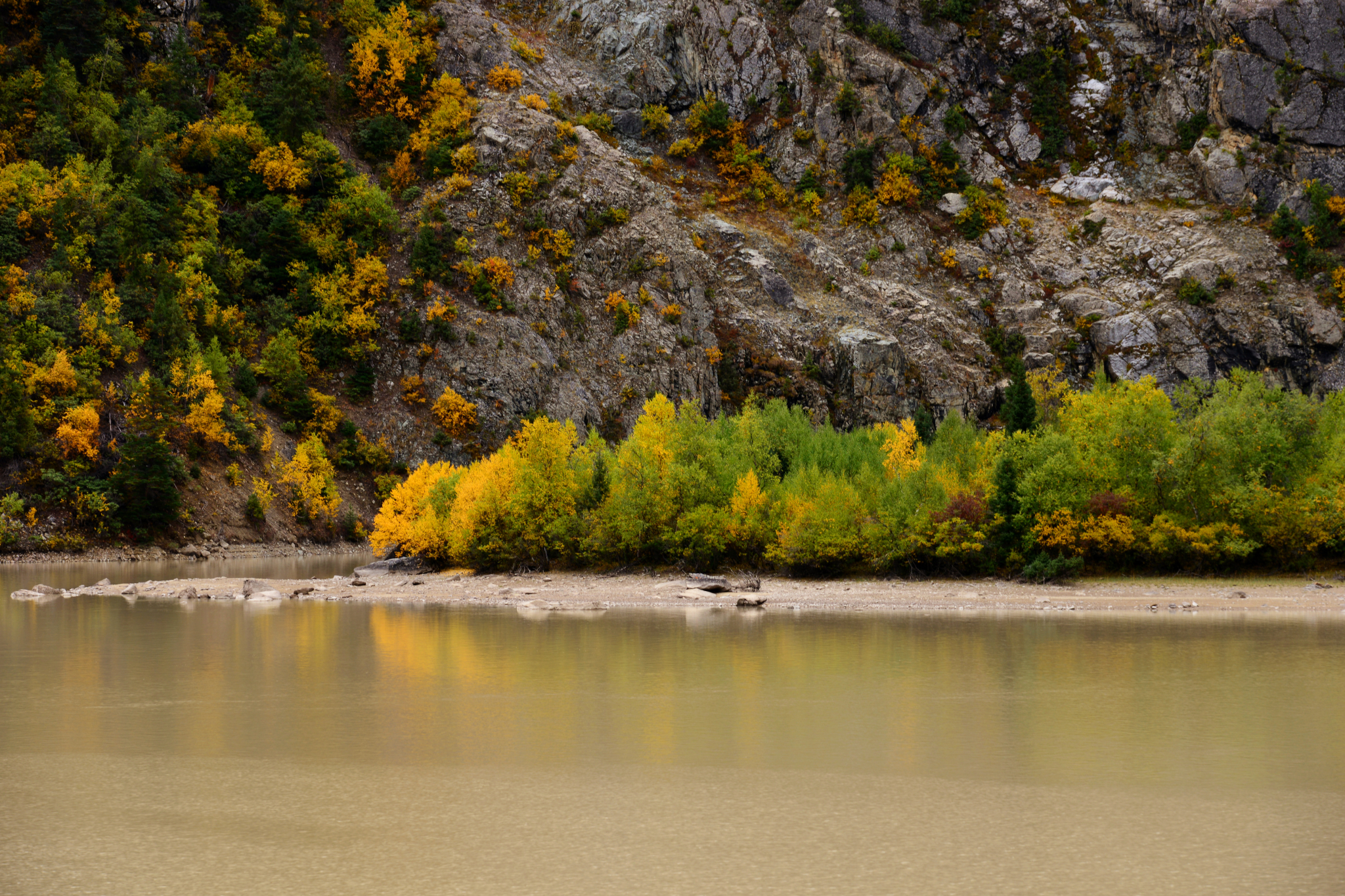 两岸树木秋色正浓,若是有阳光,真是出好片的地方。