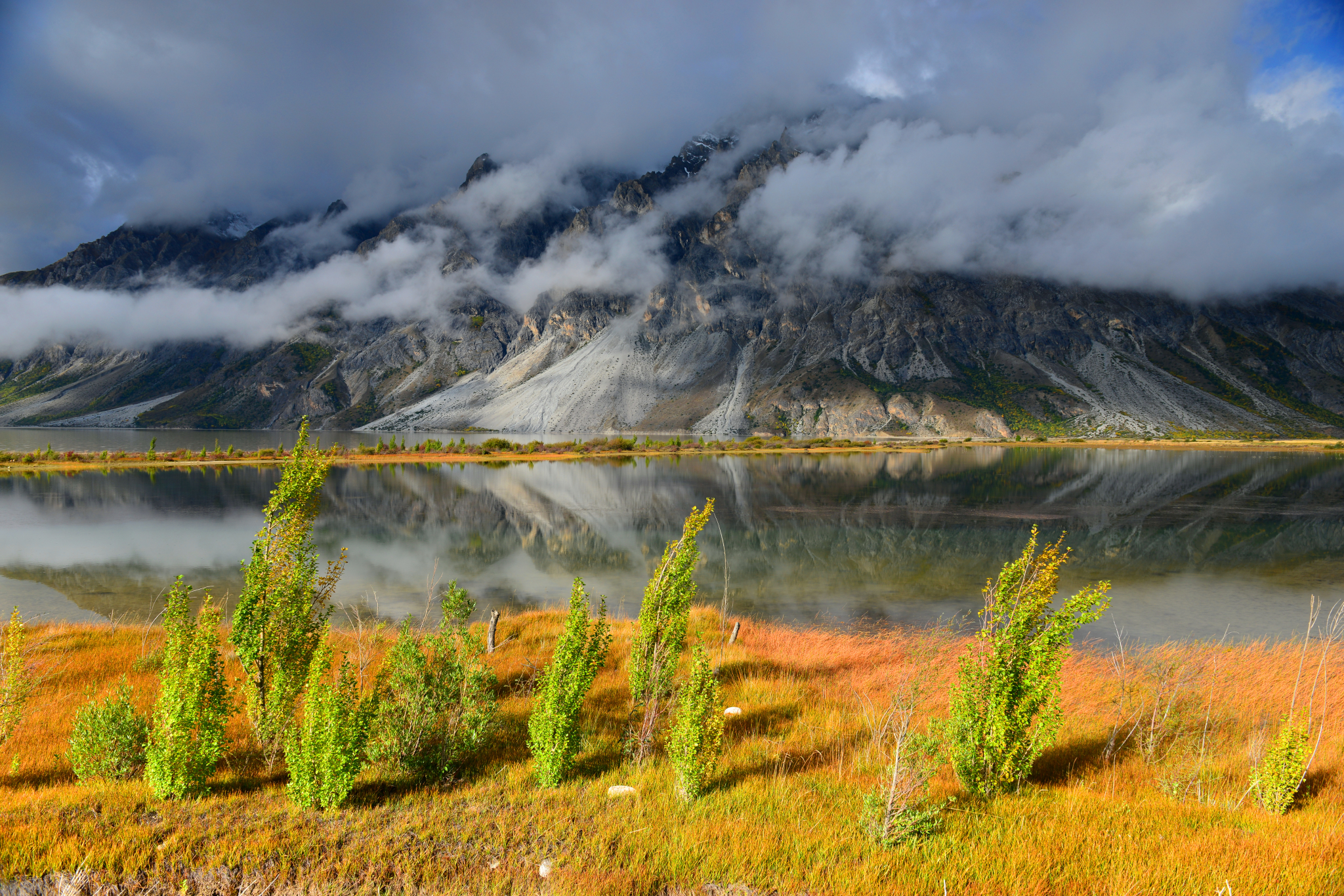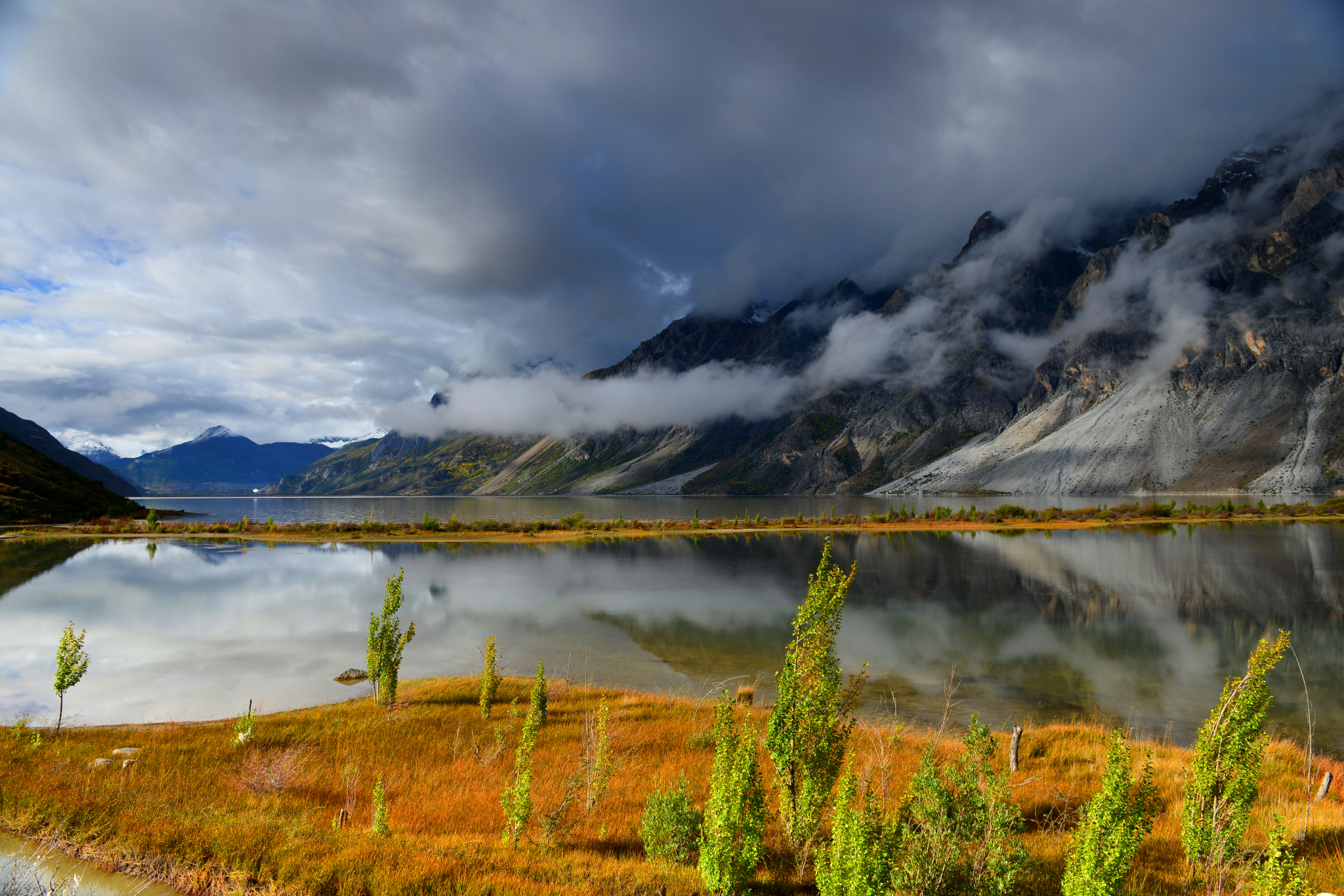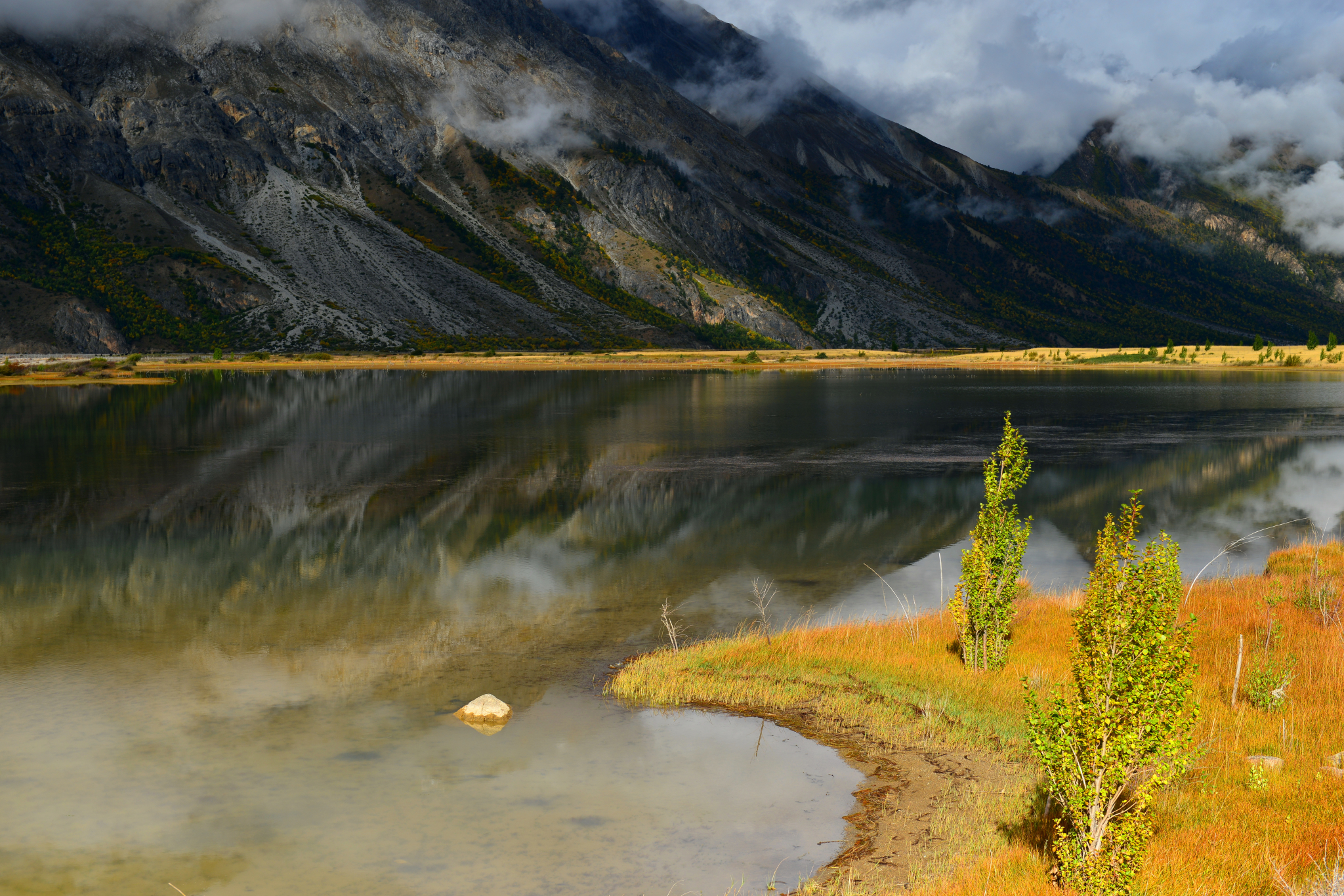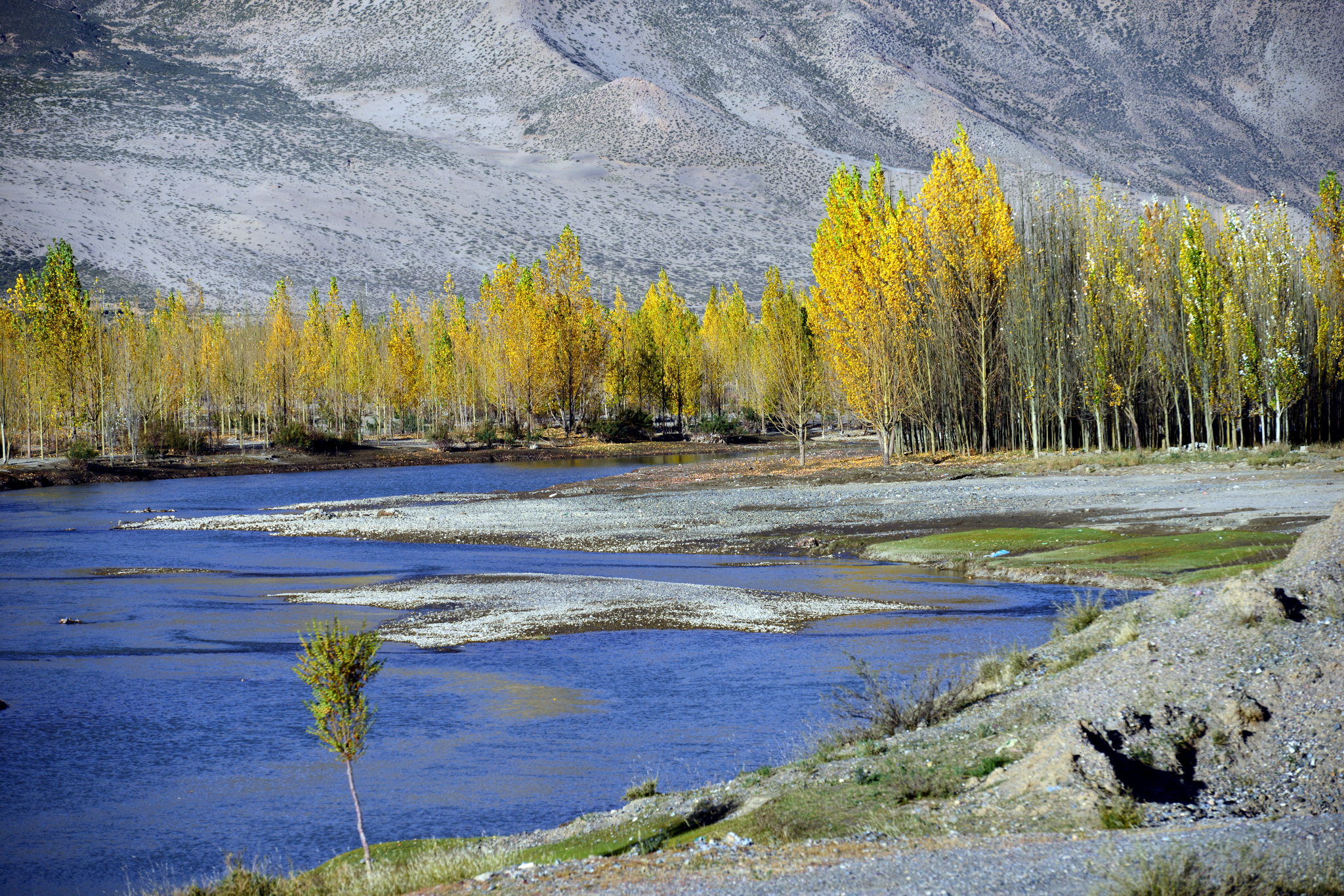 两岸树木秋色正浓,若是有阳光,真是出好片的地方。
