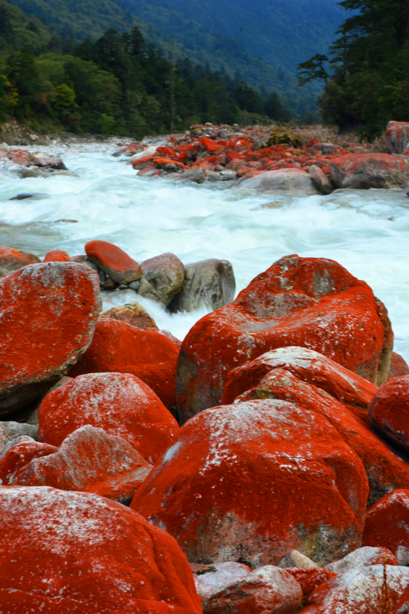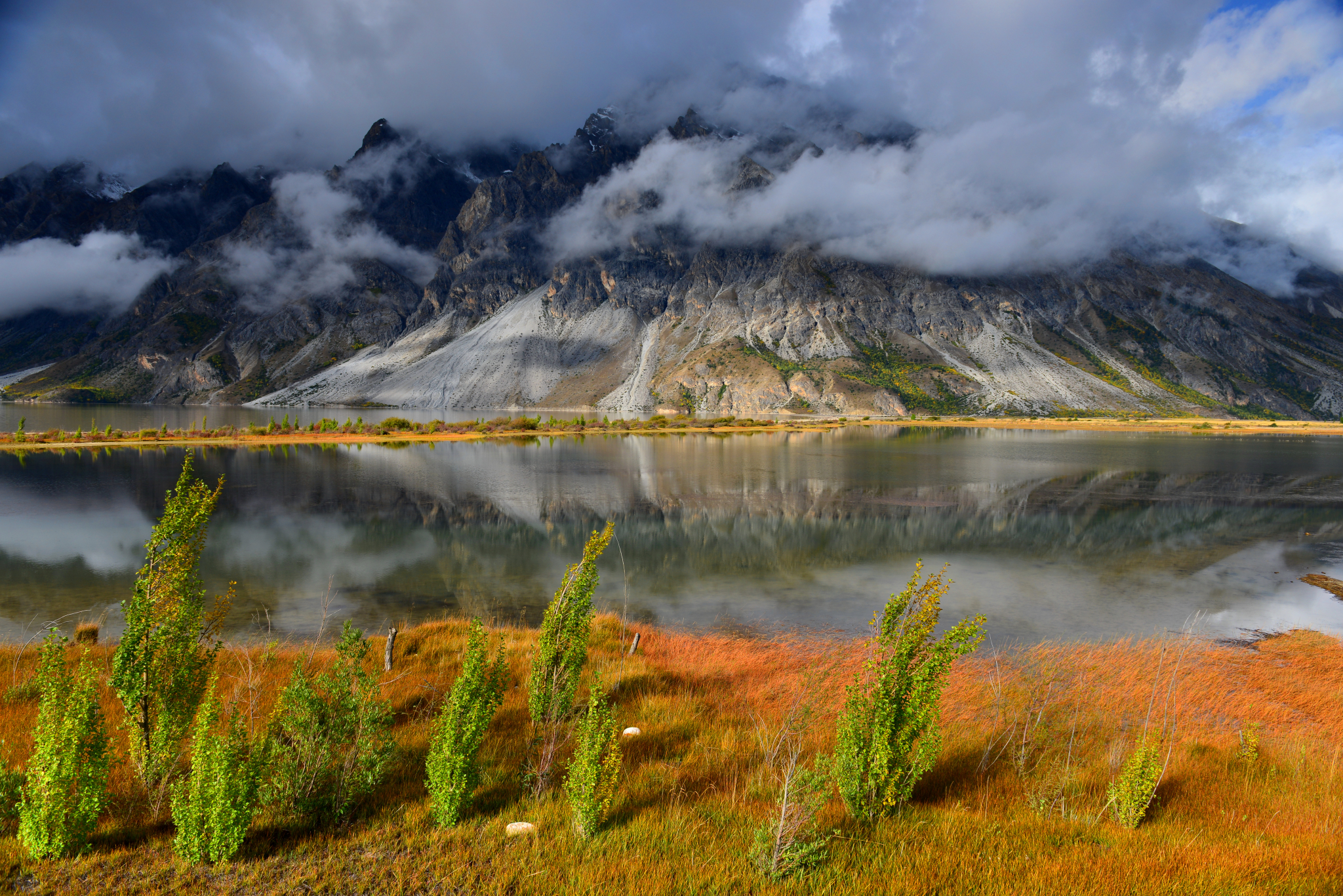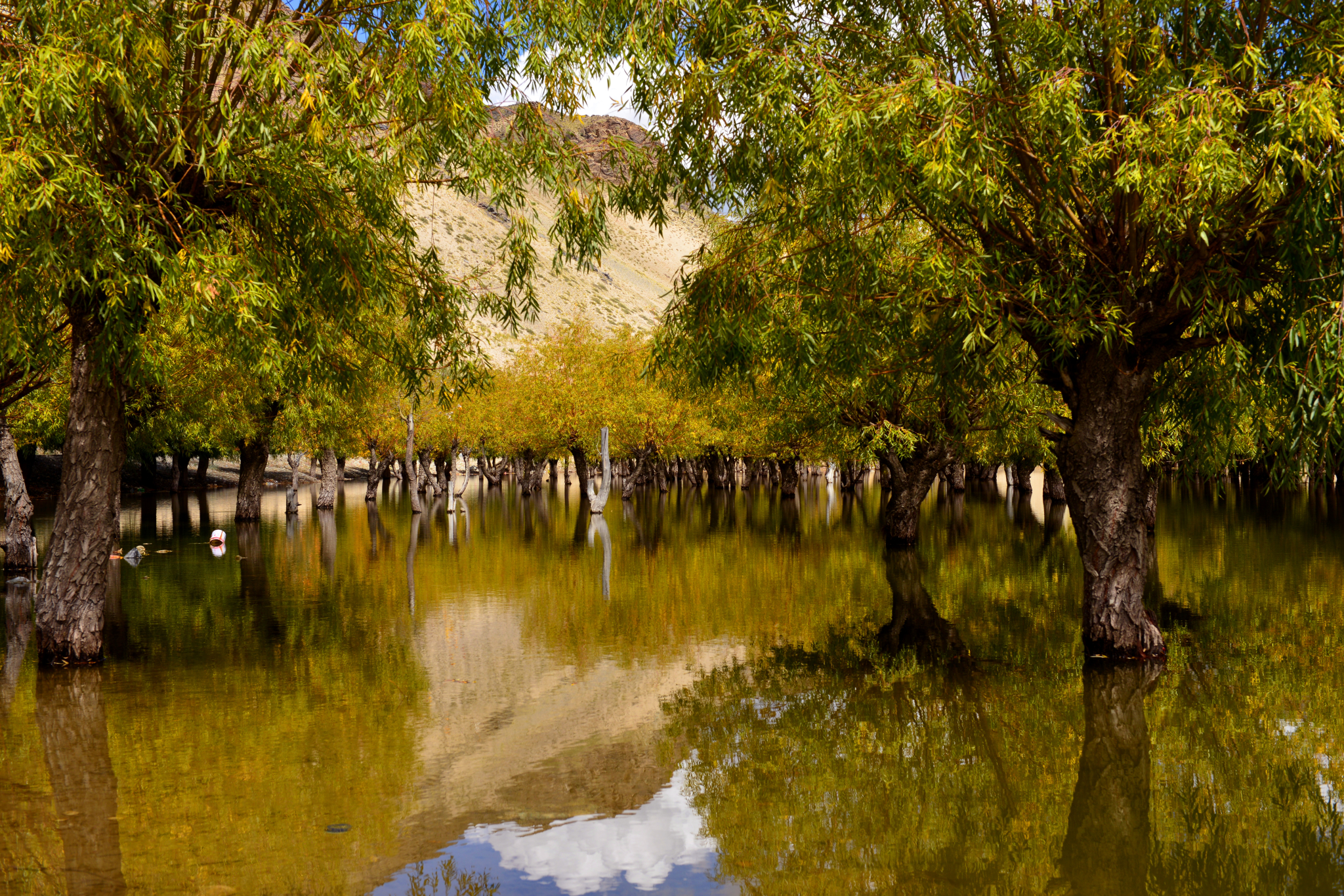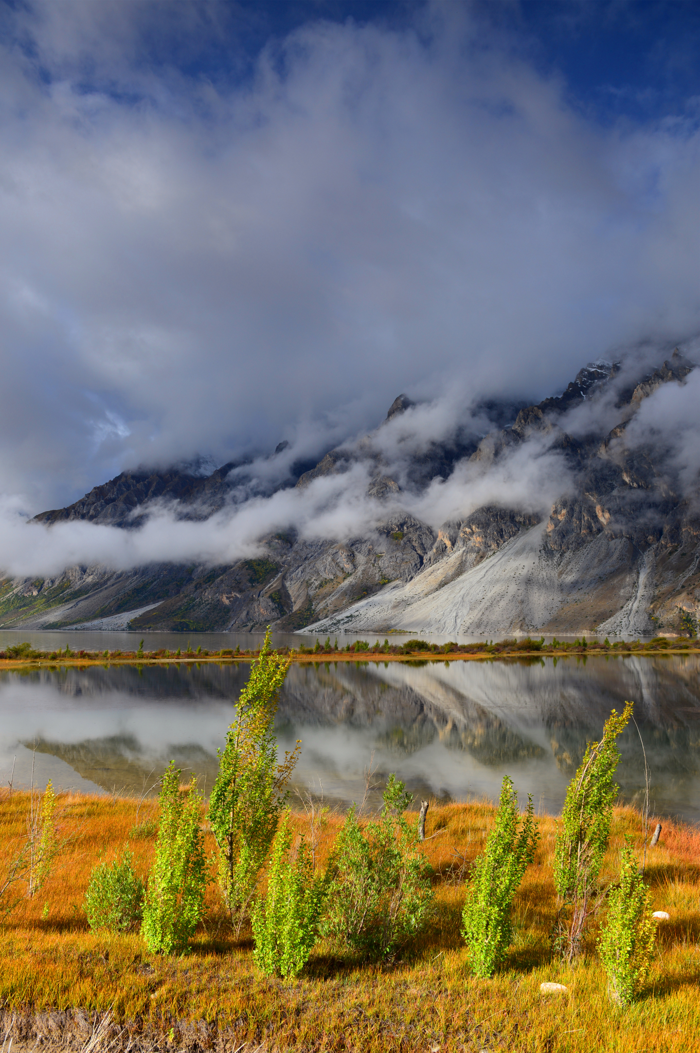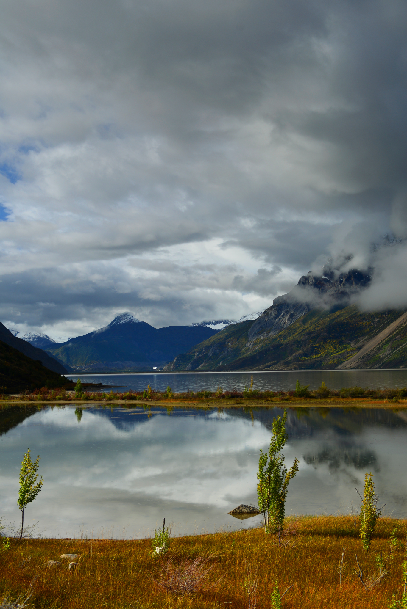 两岸树木秋色正浓,若是有阳光,真是出好片的地方。