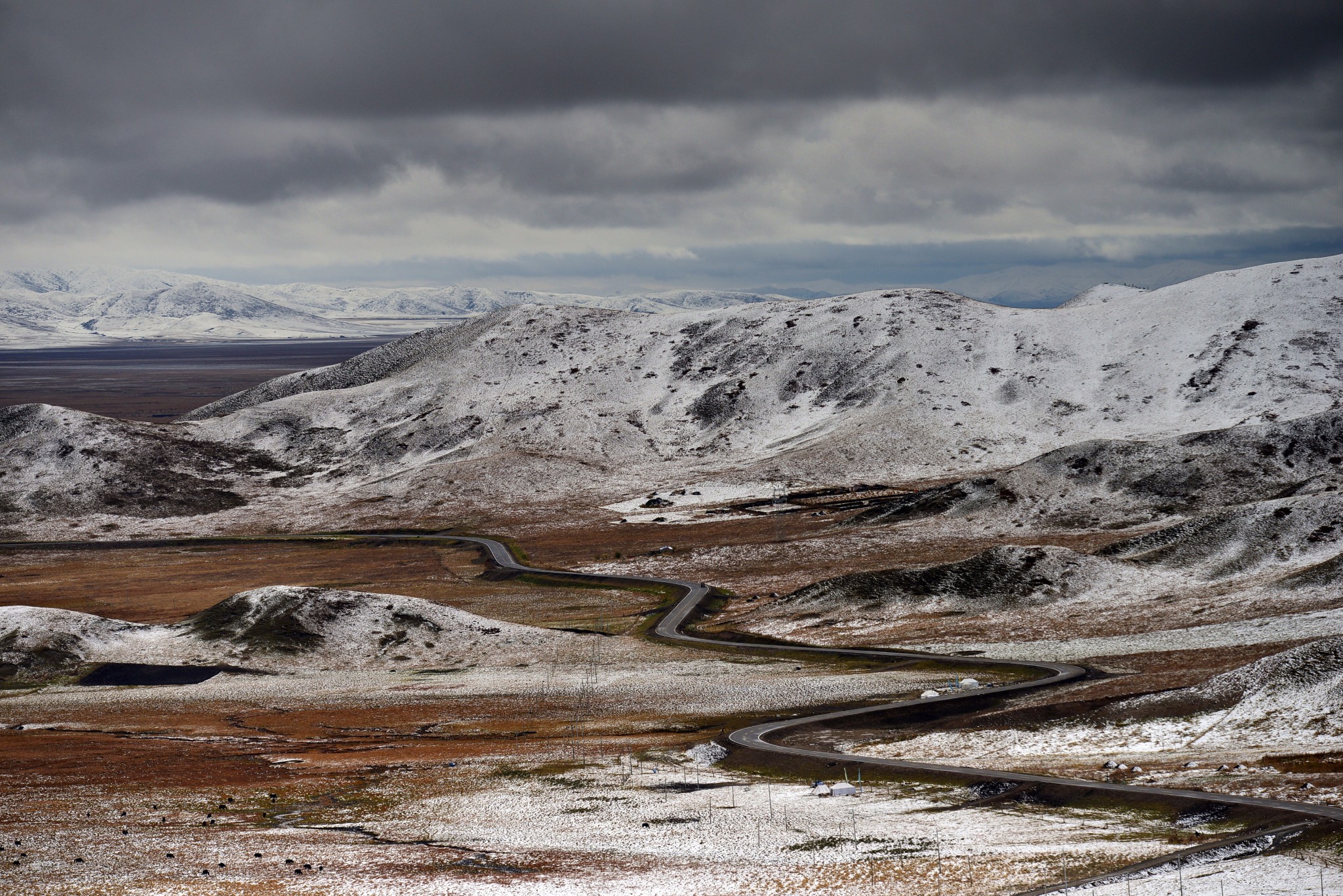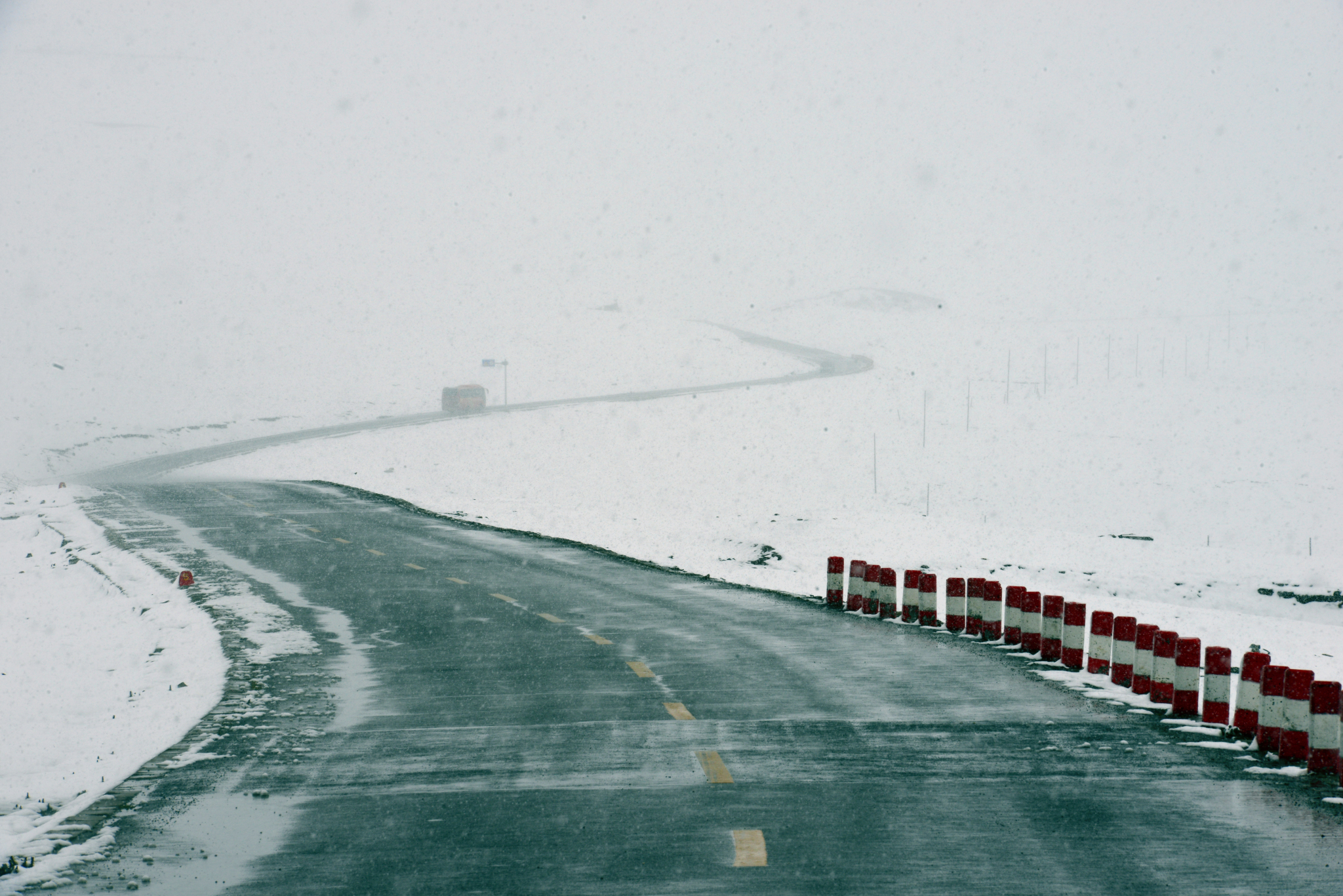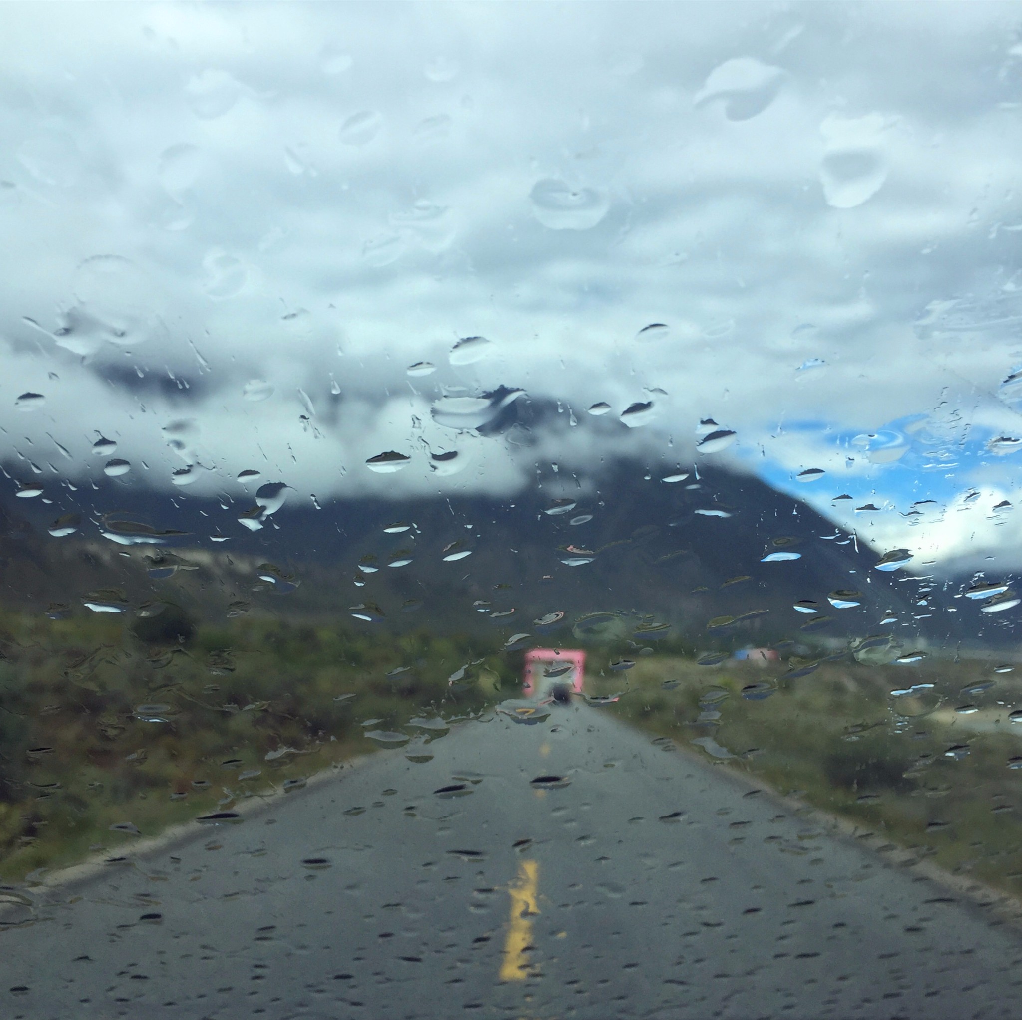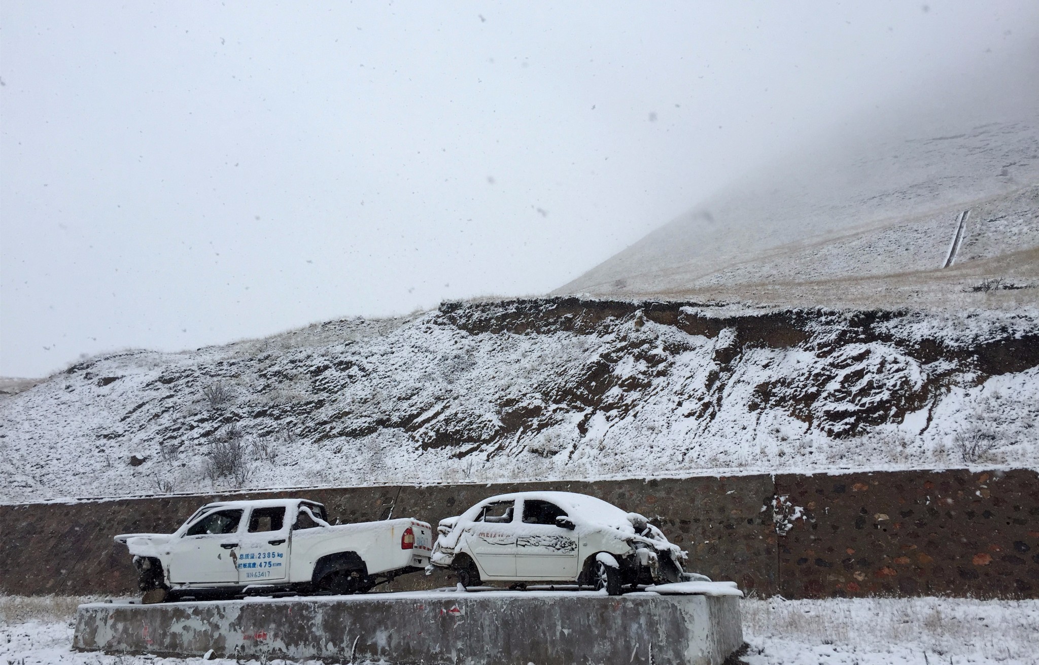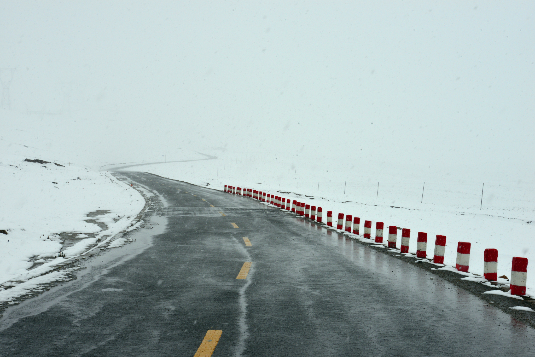 早上从茶卡镇出发,沿G6京藏高速而行,没多远,开始下雨,过共和县后又开始飘雪。