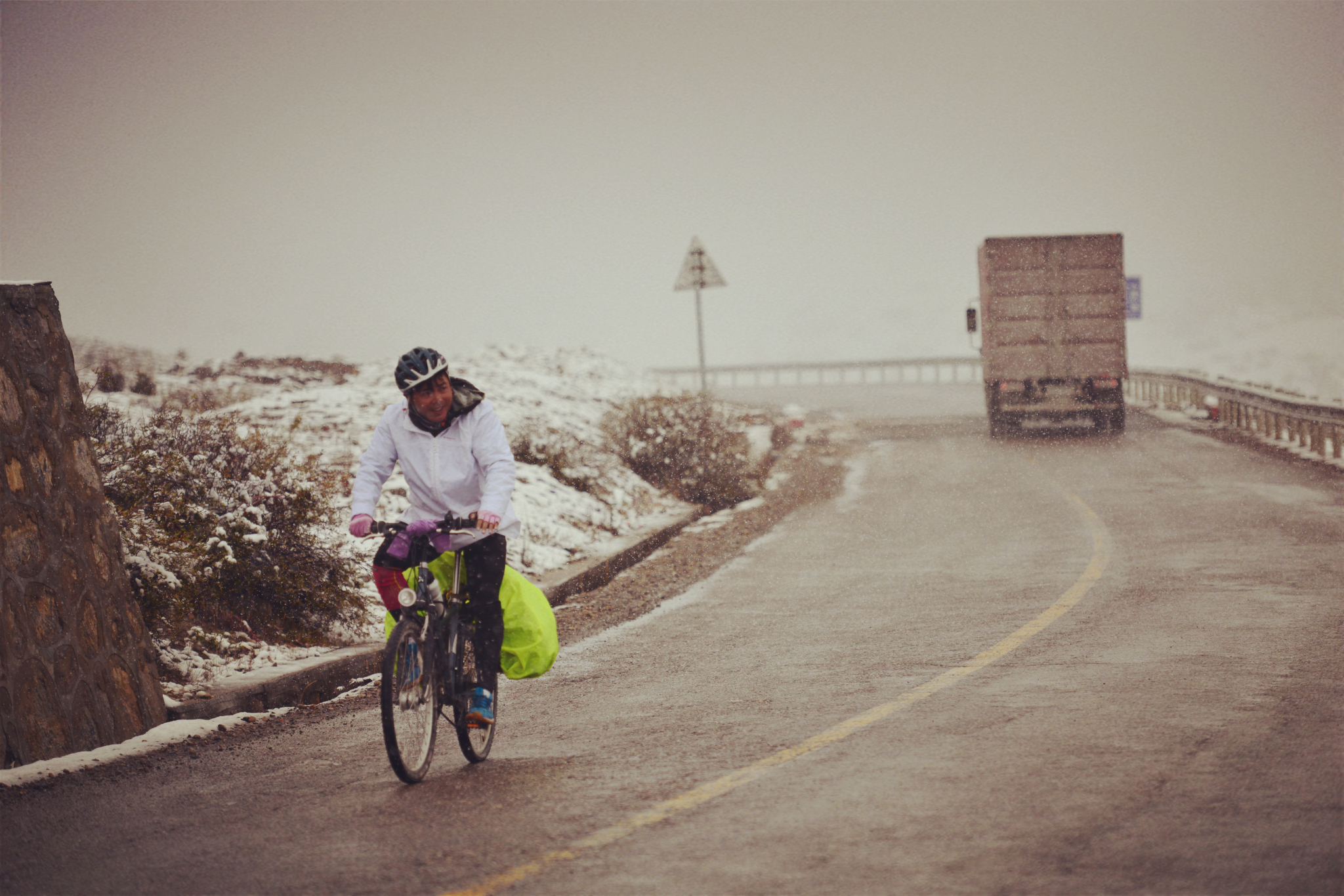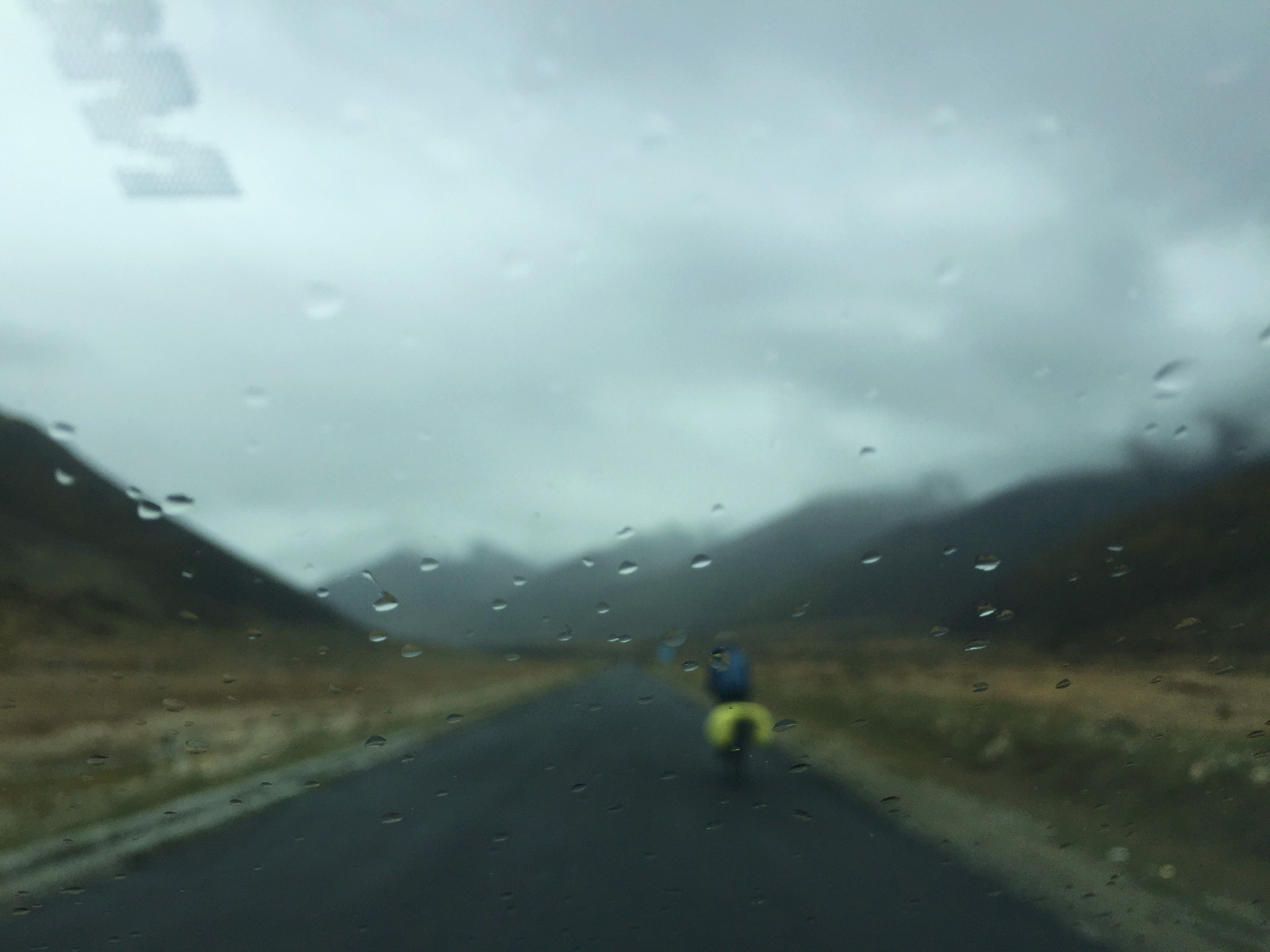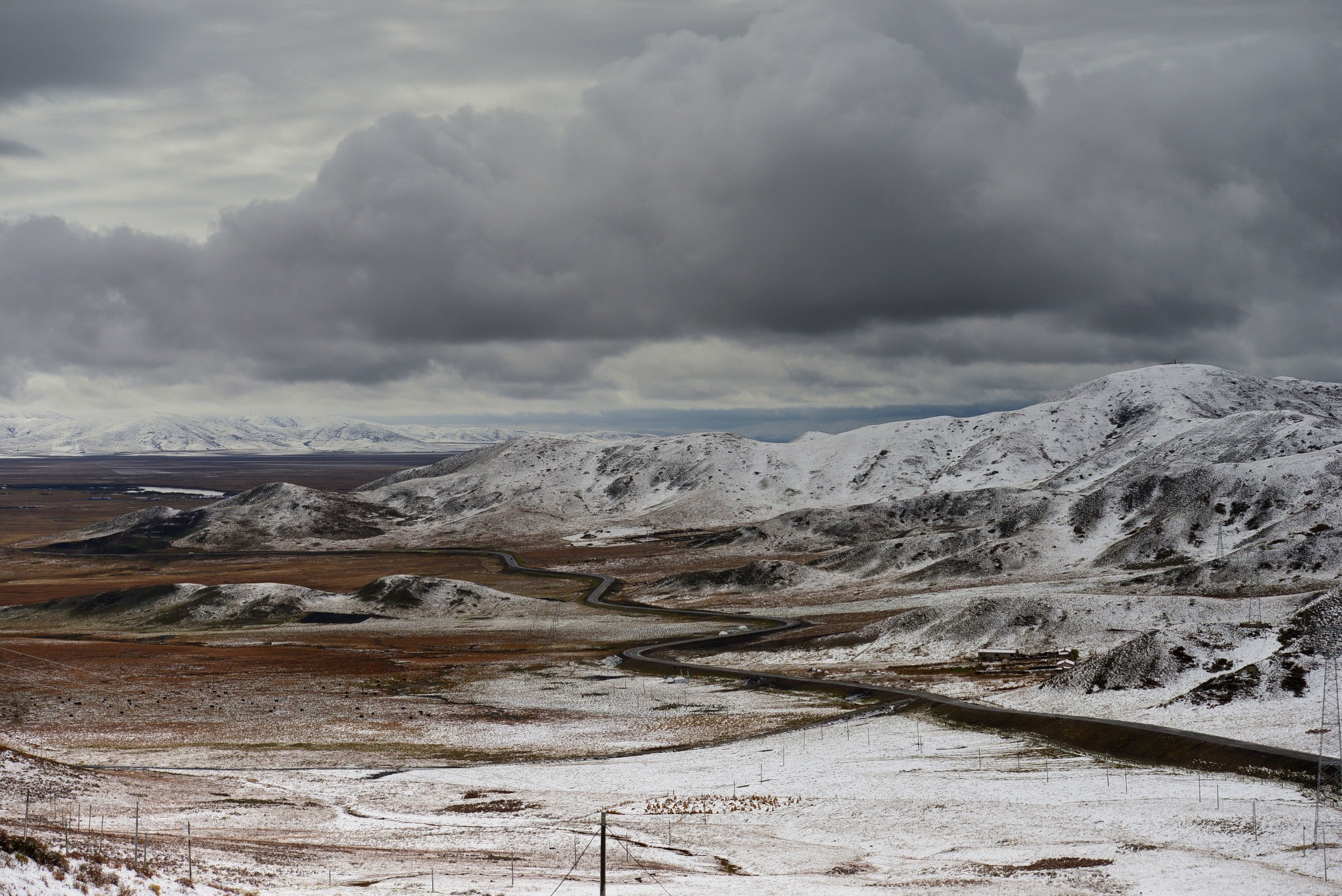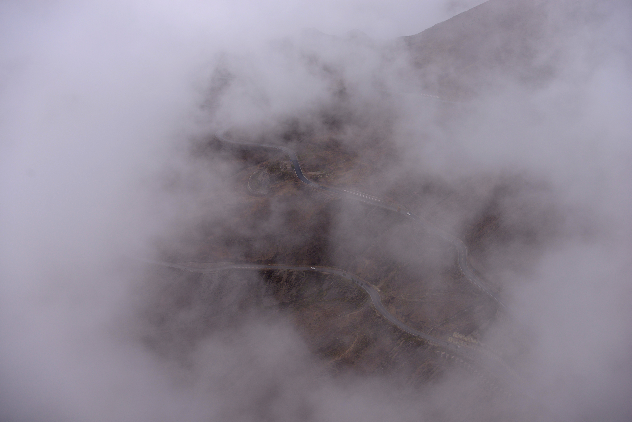 早上从茶卡镇出发,沿G6京藏高速而行,没多远,开始下雨,过共和县后又开始飘雪。