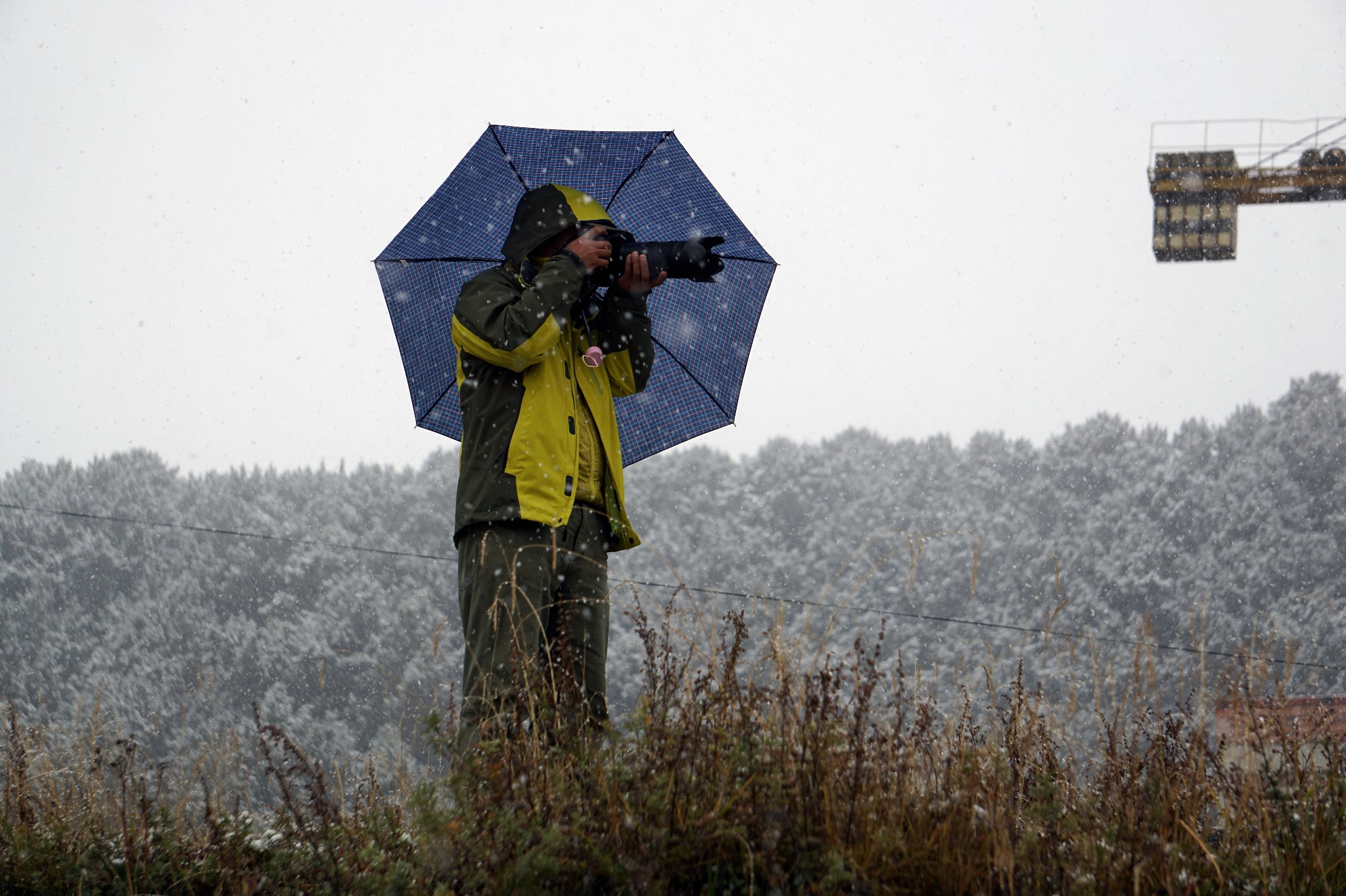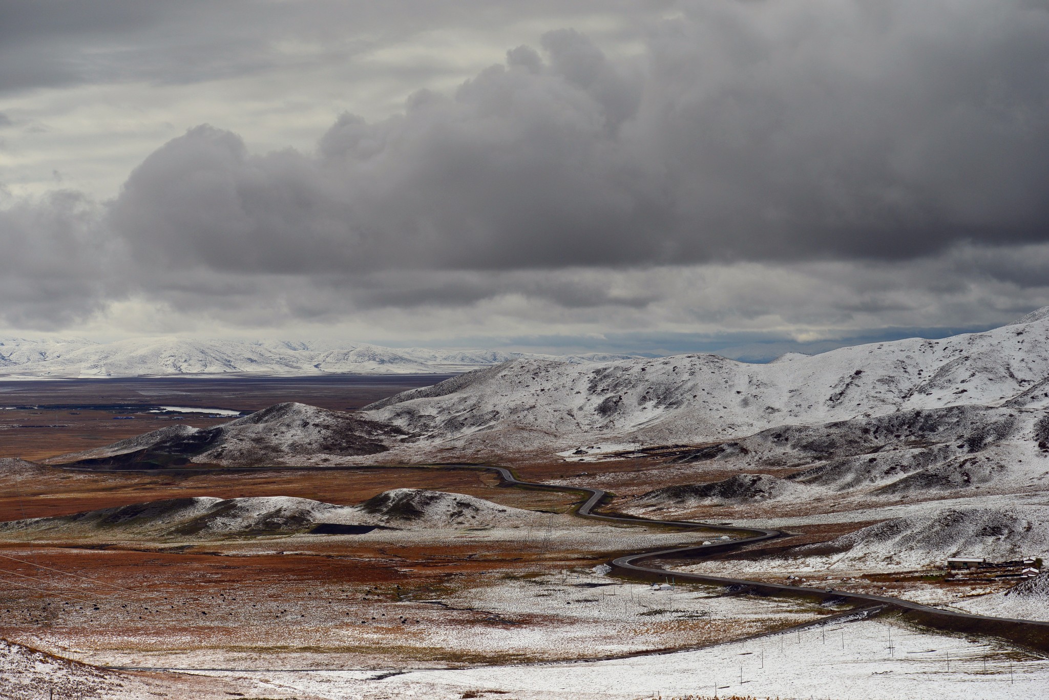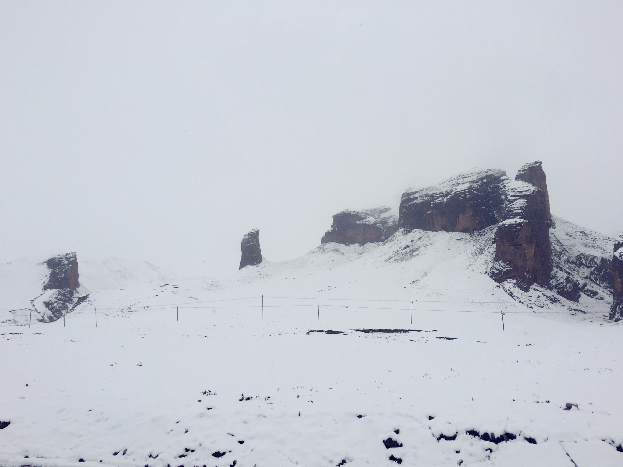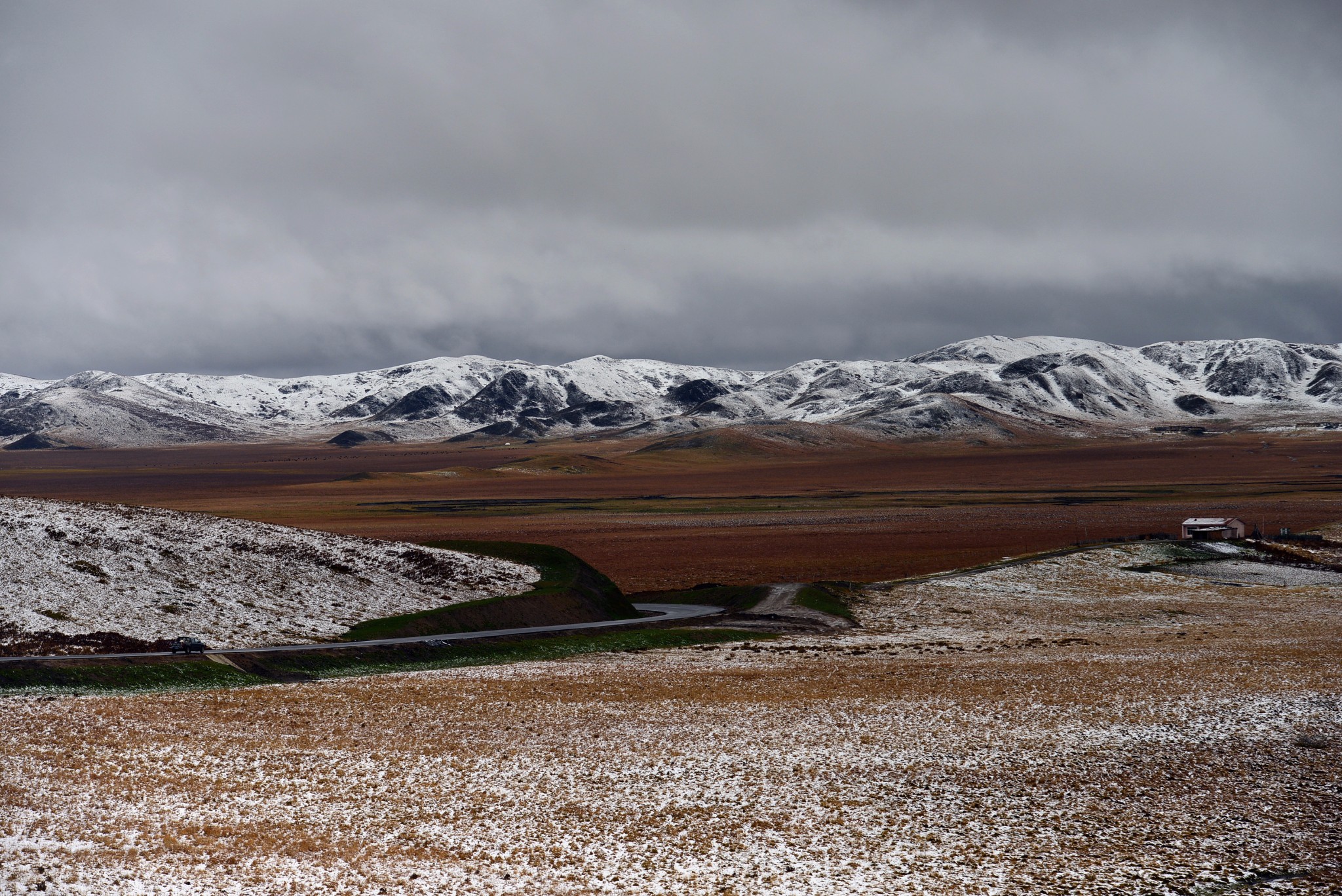 早上从茶卡镇出发,沿G6京藏高速而行,没多远,开始下雨,过共和县后又开始飘雪。