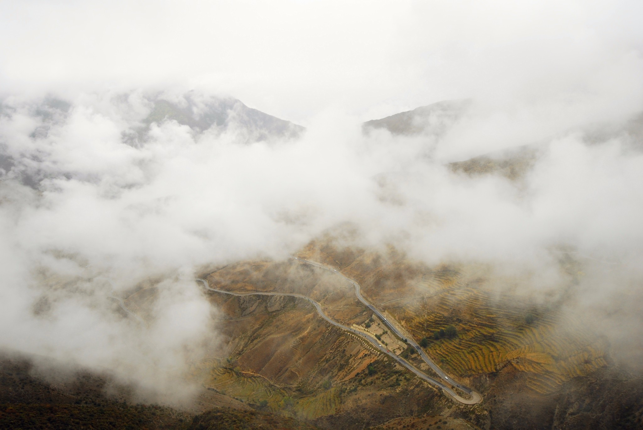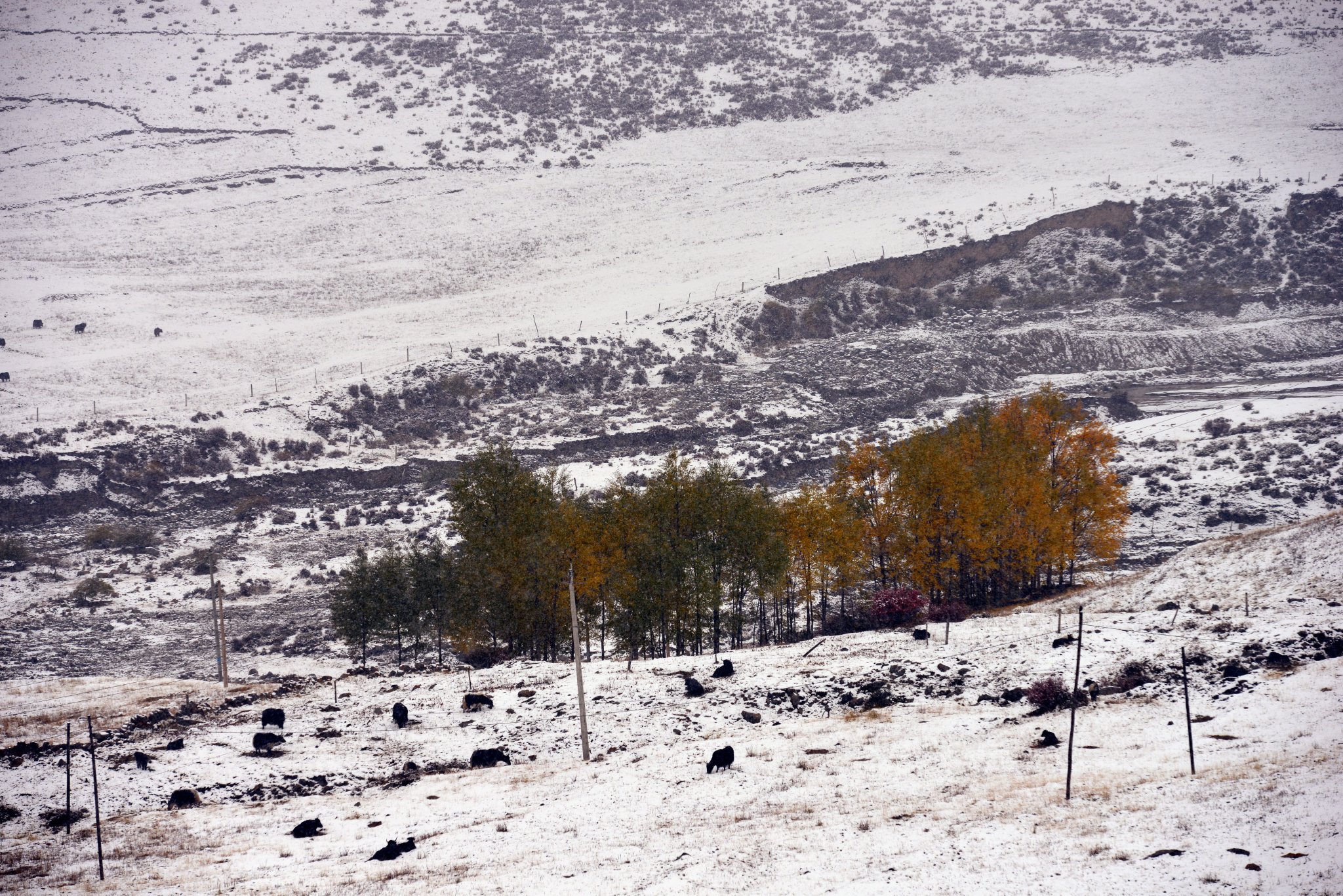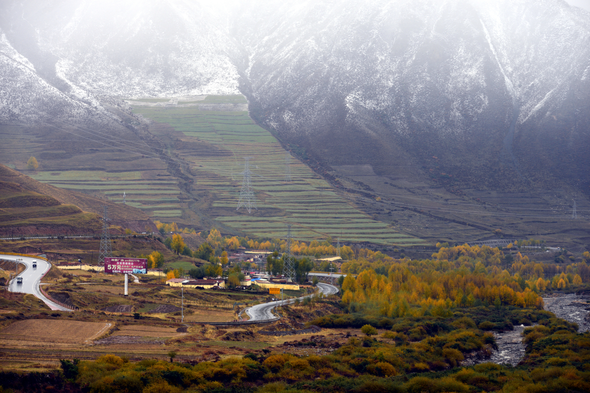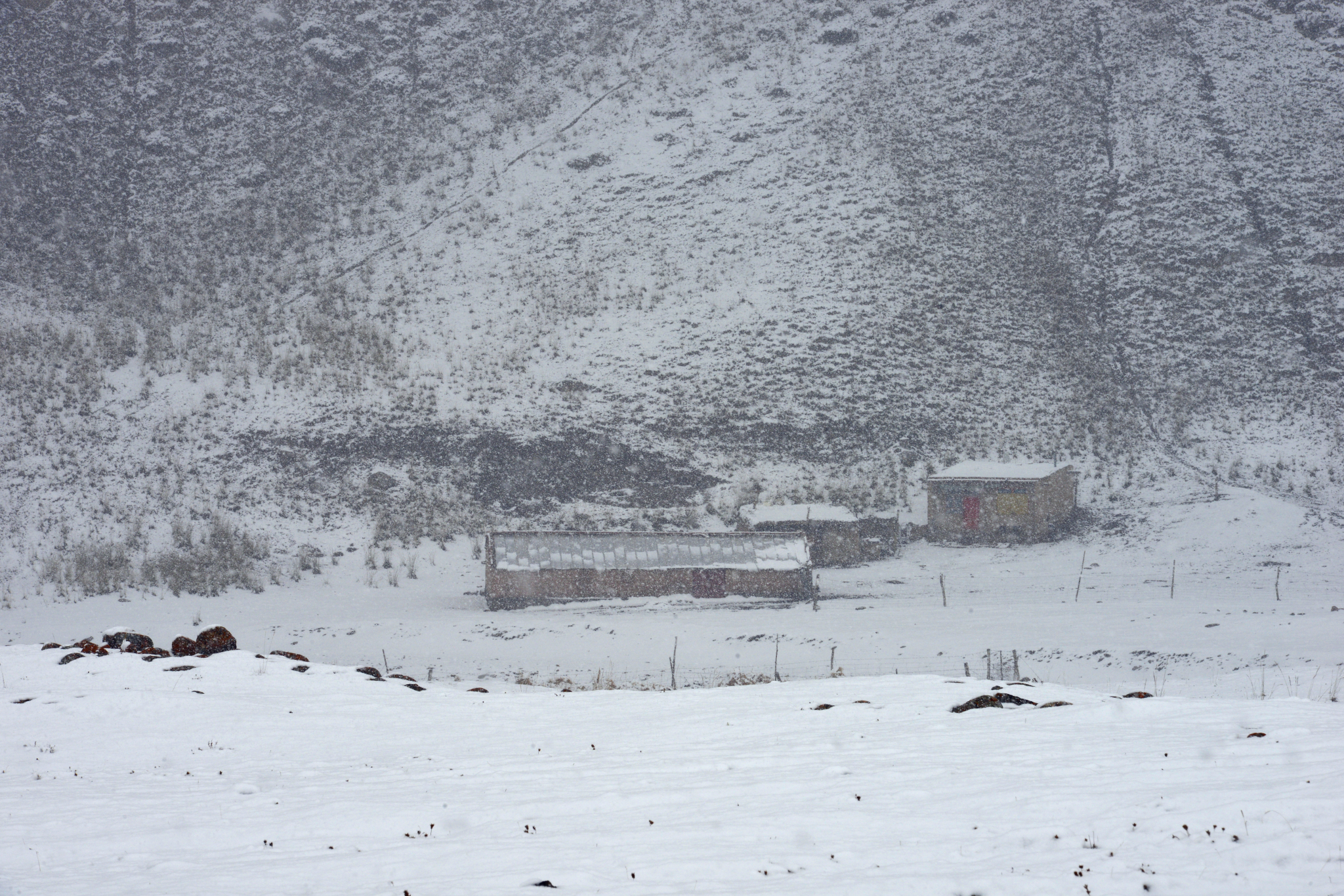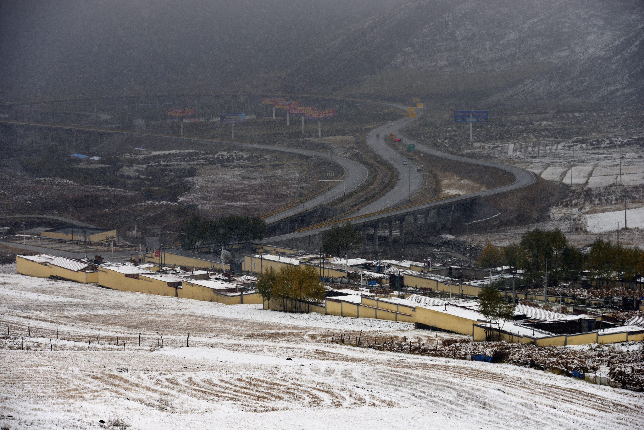 在山腰处的莫多吉村右拐进入S307扎哈公路(扎巴、哈城),开始翻越拉鸡山。雾没了,雪照样下着,就这样,一路洋洋洒洒下到了贵德。