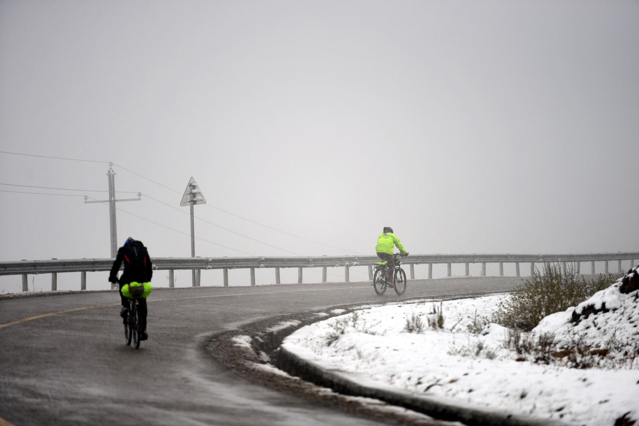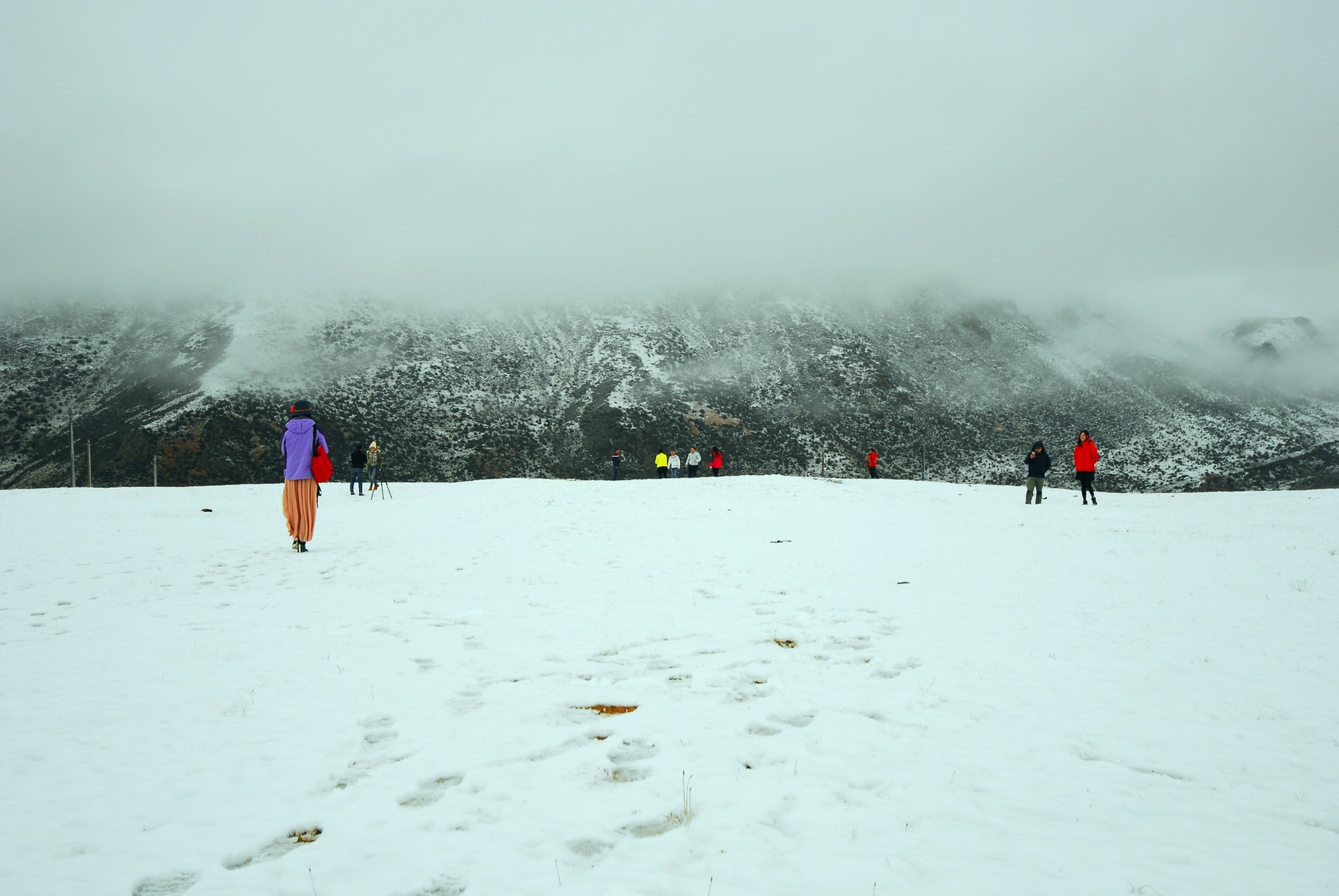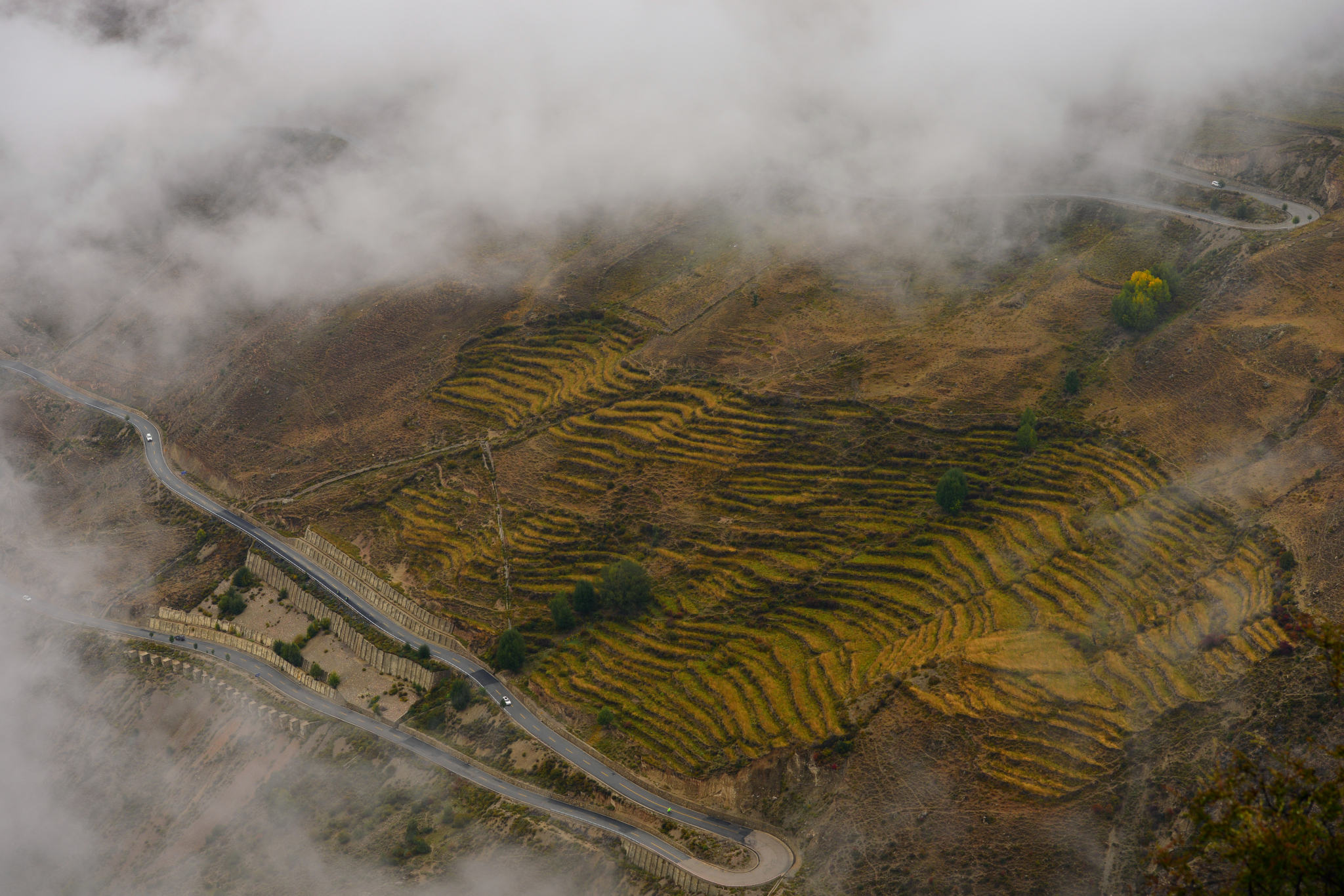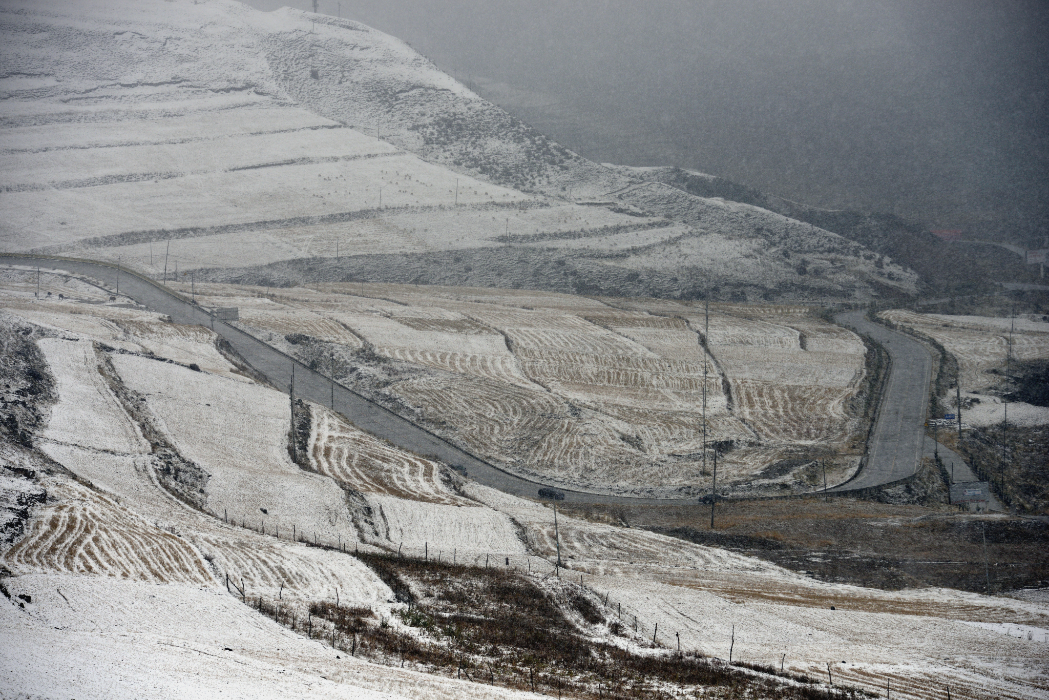 在山腰处的莫多吉村右拐进入S307扎哈公路(扎巴、哈城),开始翻越拉鸡山。雾没了,雪照样下着,就这样,一路洋洋洒洒下到了贵德。