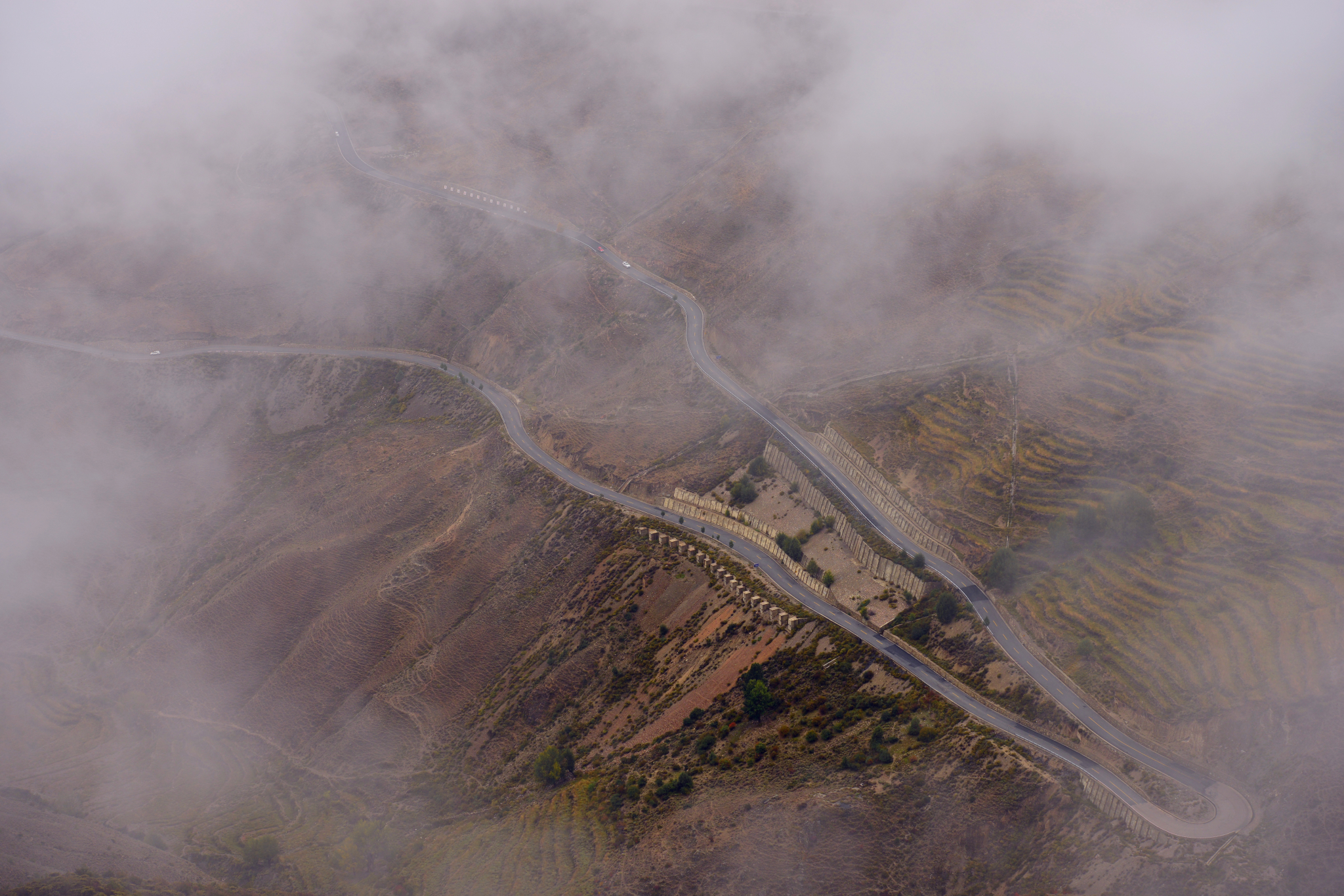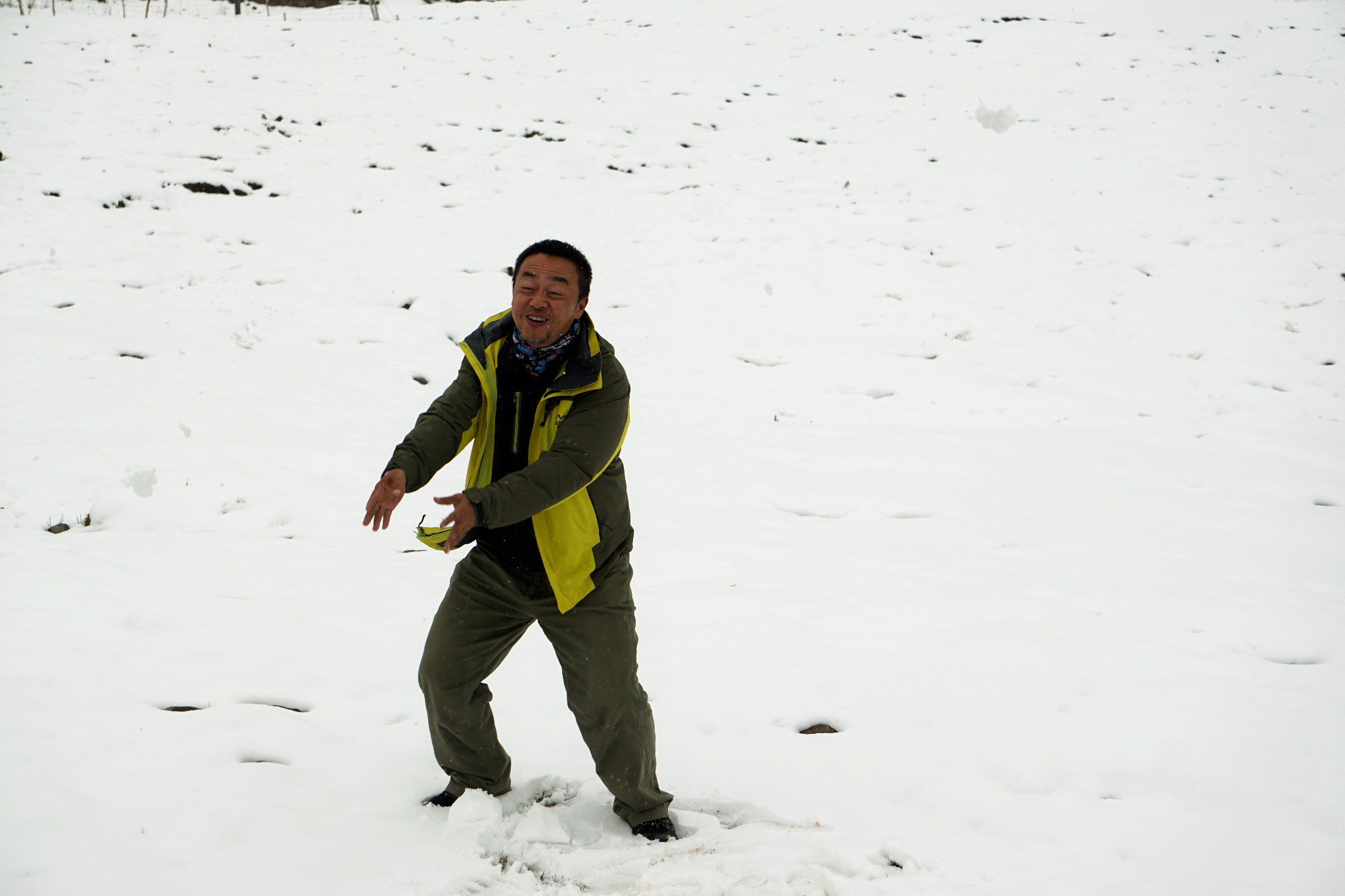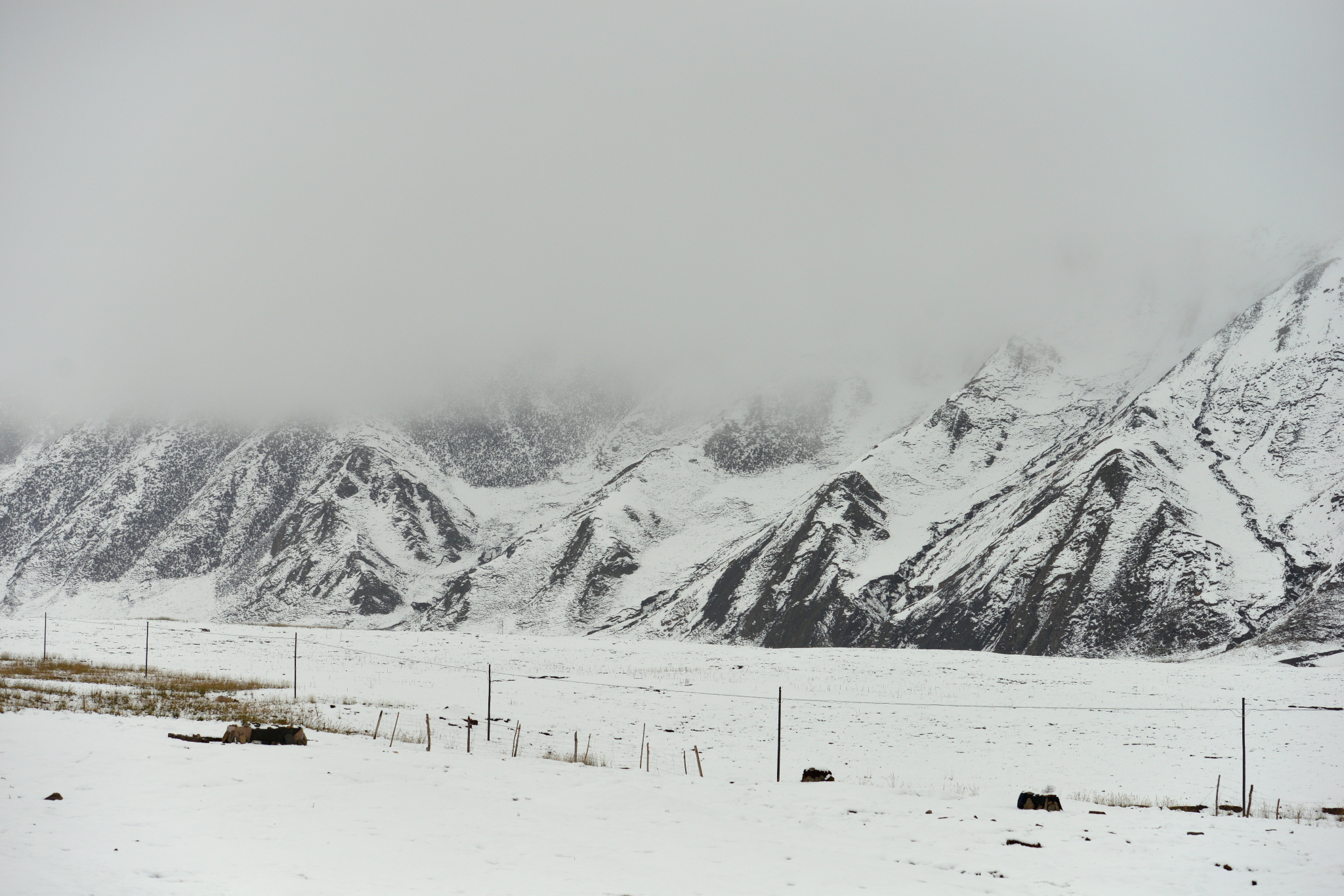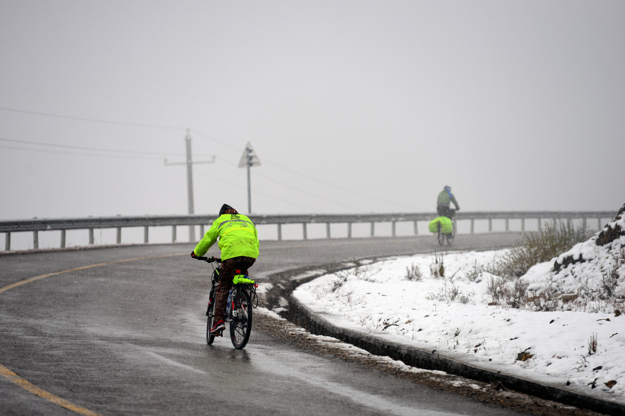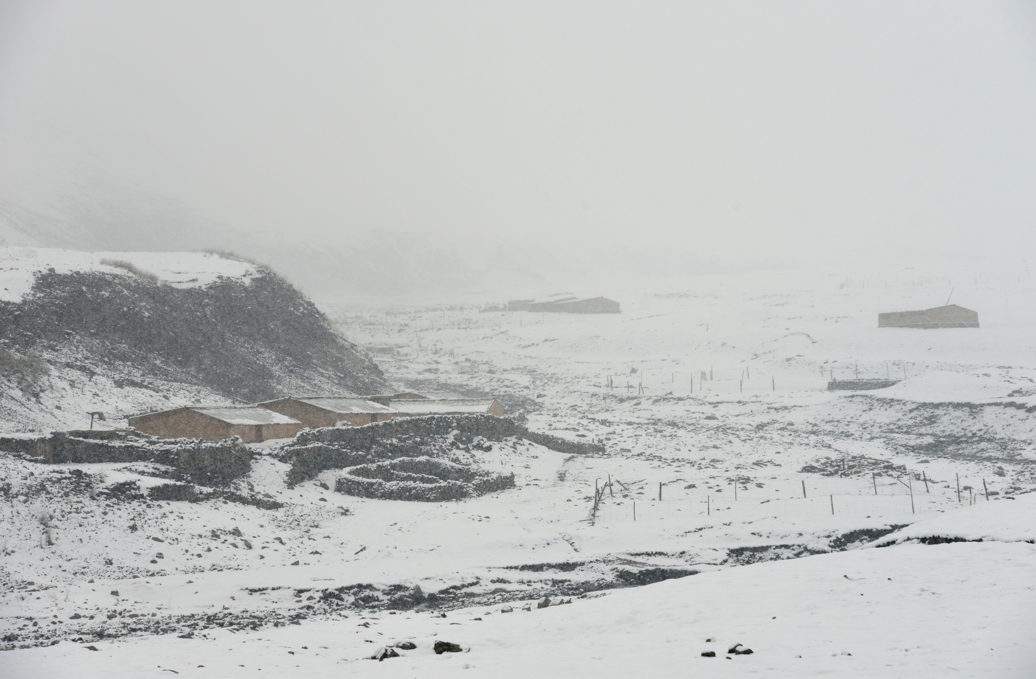 在山腰处的莫多吉村右拐进入S307扎哈公路(扎巴、哈城),开始翻越拉鸡山。雾没了,雪照样下着,就这样,一路洋洋洒洒下到了贵德。