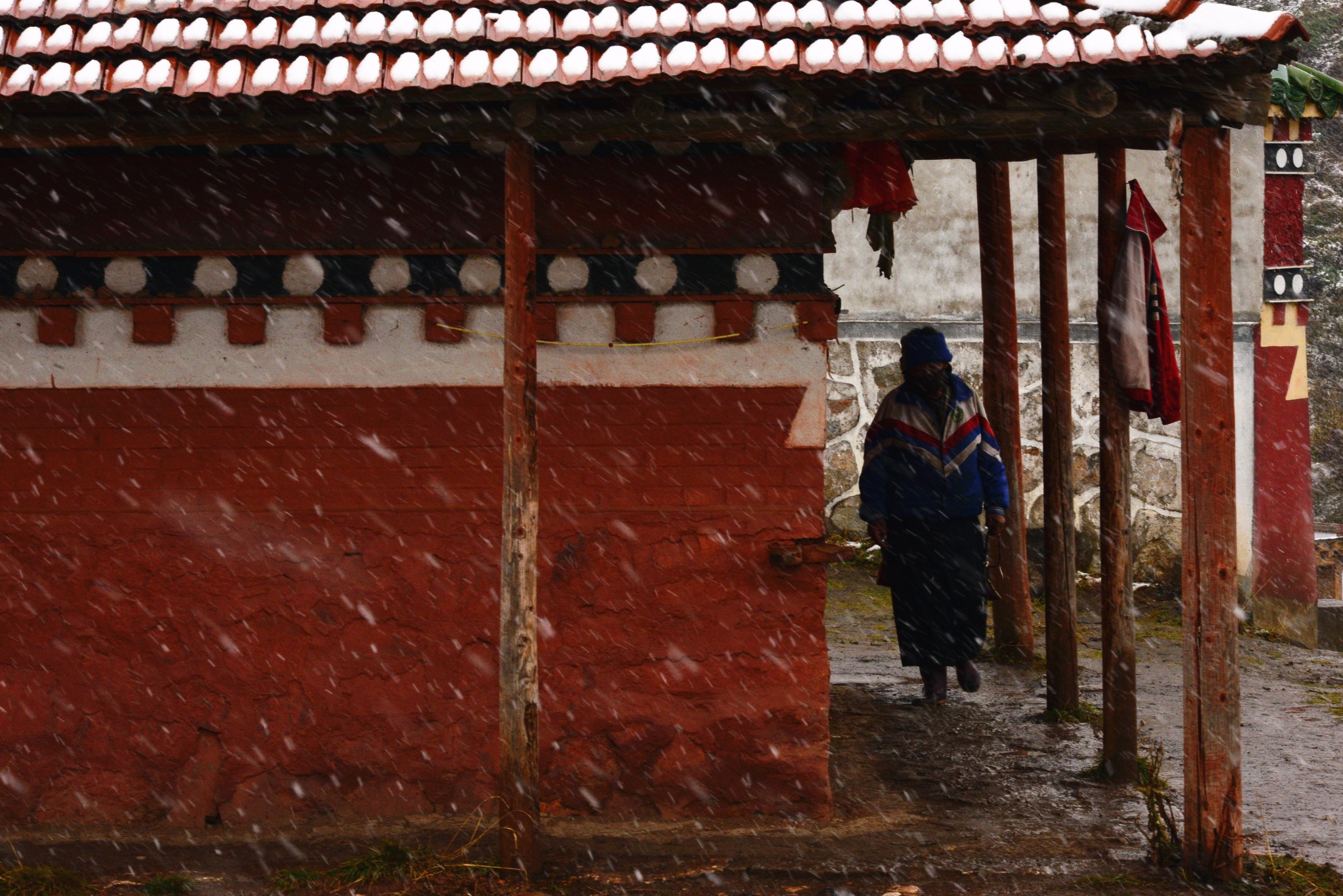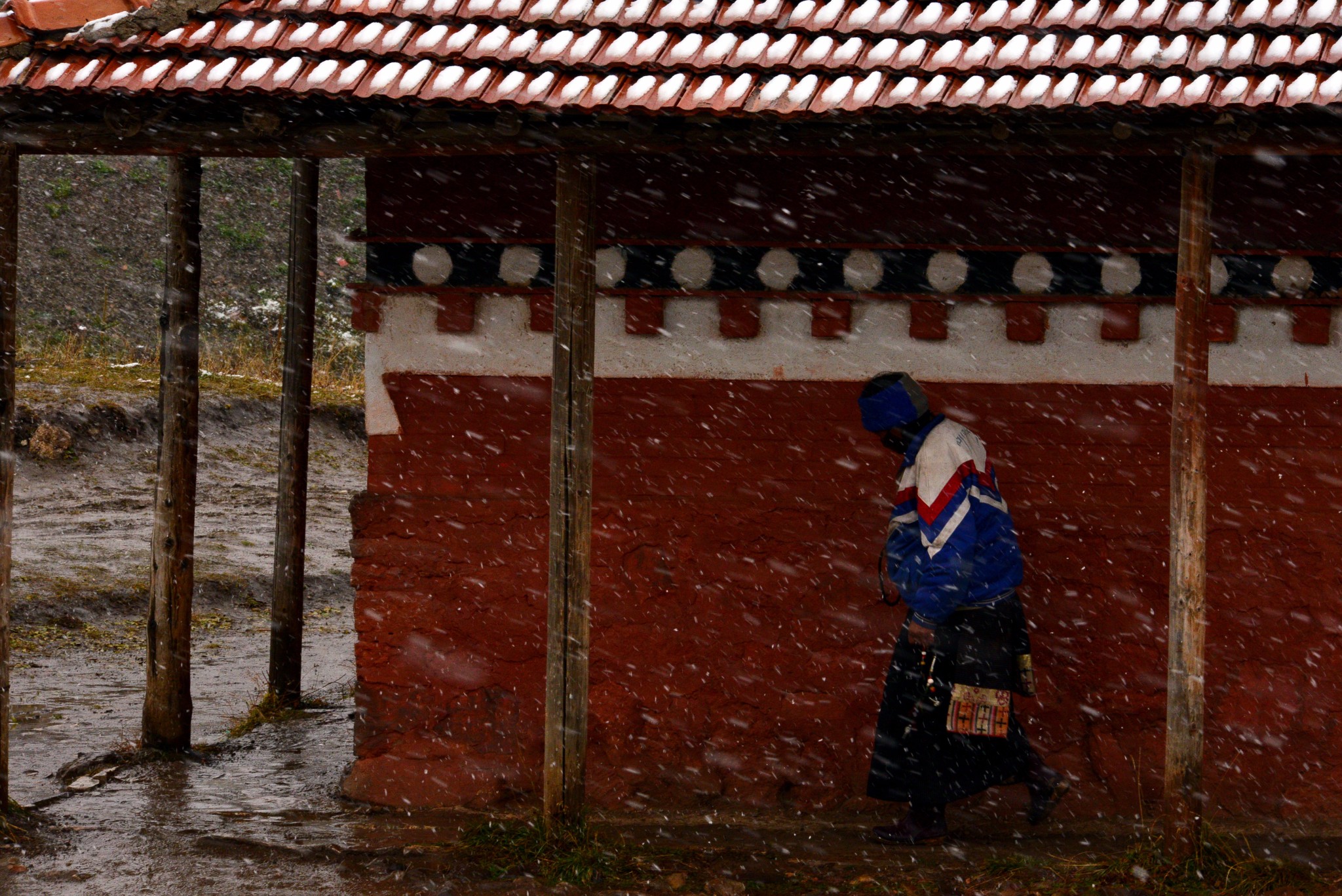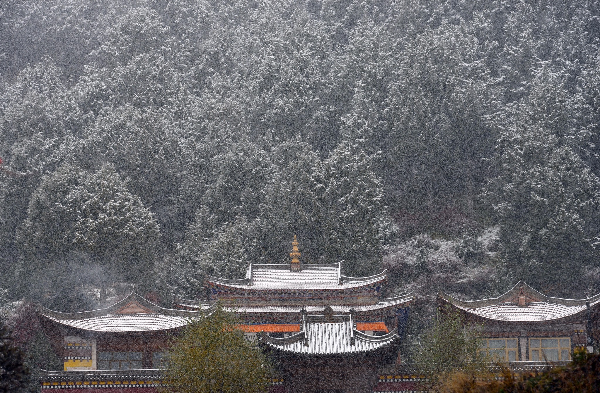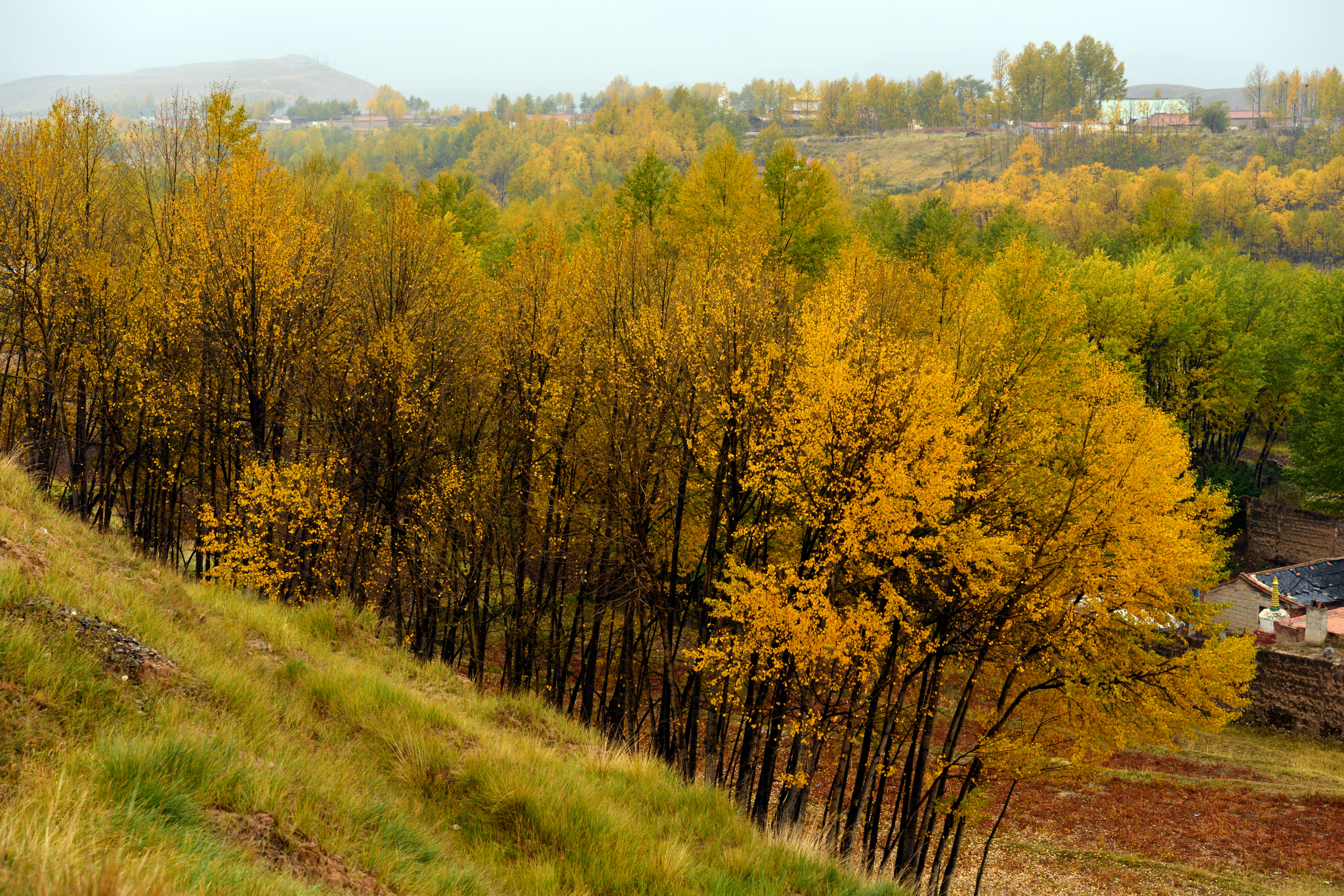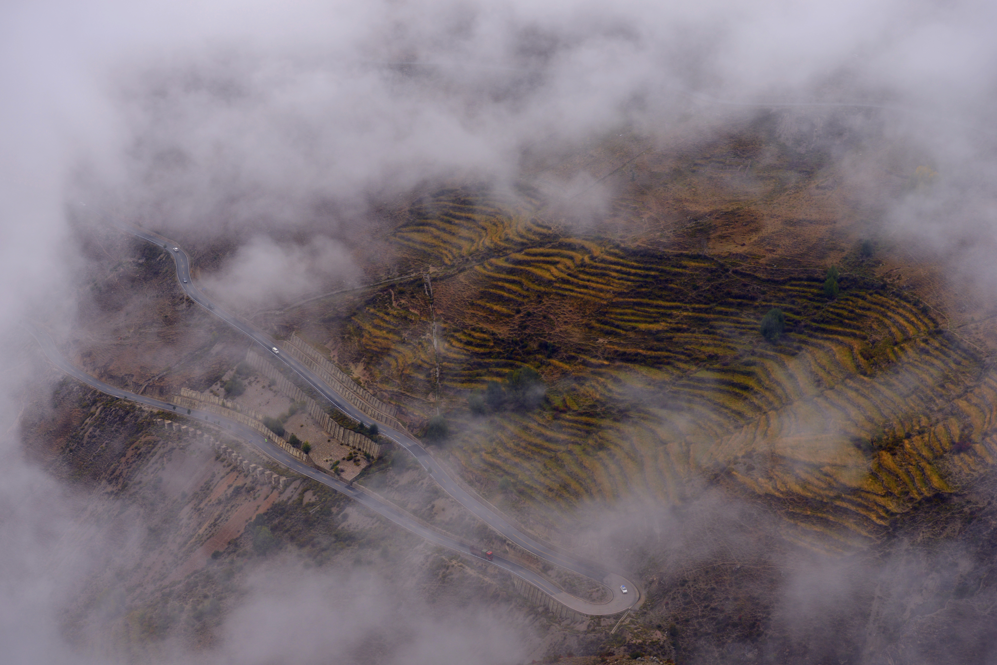 在山腰处的莫多吉村右拐进入S307扎哈公路(扎巴、哈城),开始翻越拉鸡山。雾没了,雪照样下着,就这样,一路洋洋洒洒下到了贵德。