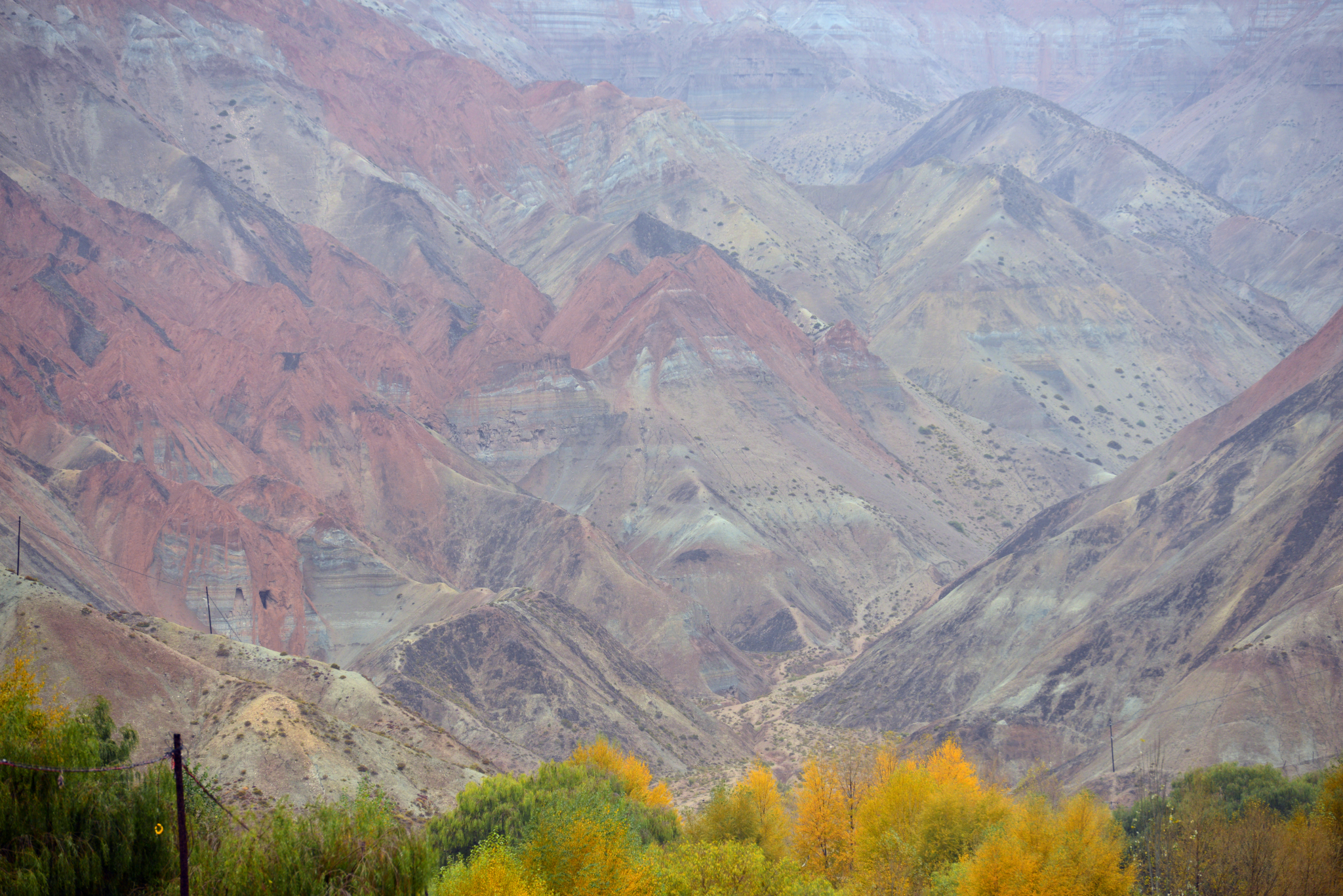 这里是看“阿什贡七彩峰丛”,也是丹霞地貌。比起张掖,贵德的丹霞显得高大,但颜色却相对单调。天气也不好,就在停车场和高速路边观赏了一下,拍了几张照,就匆匆离去。