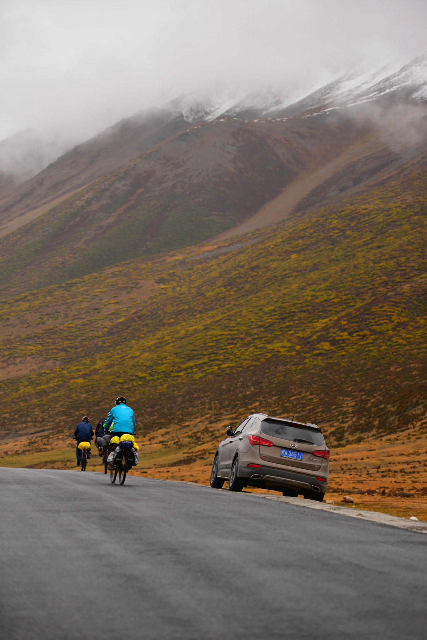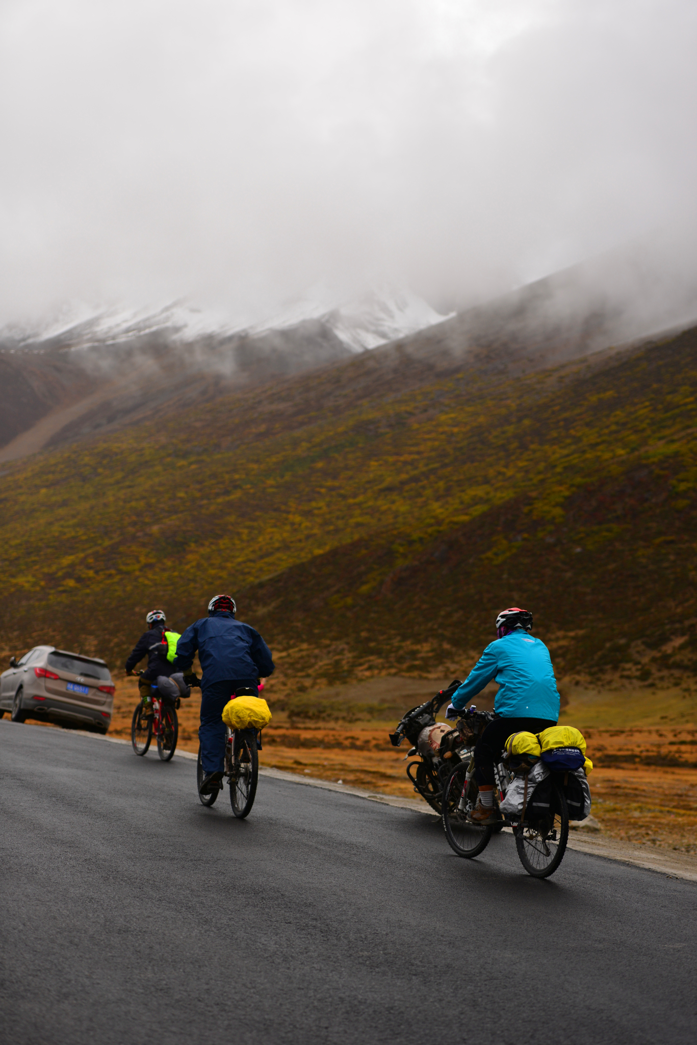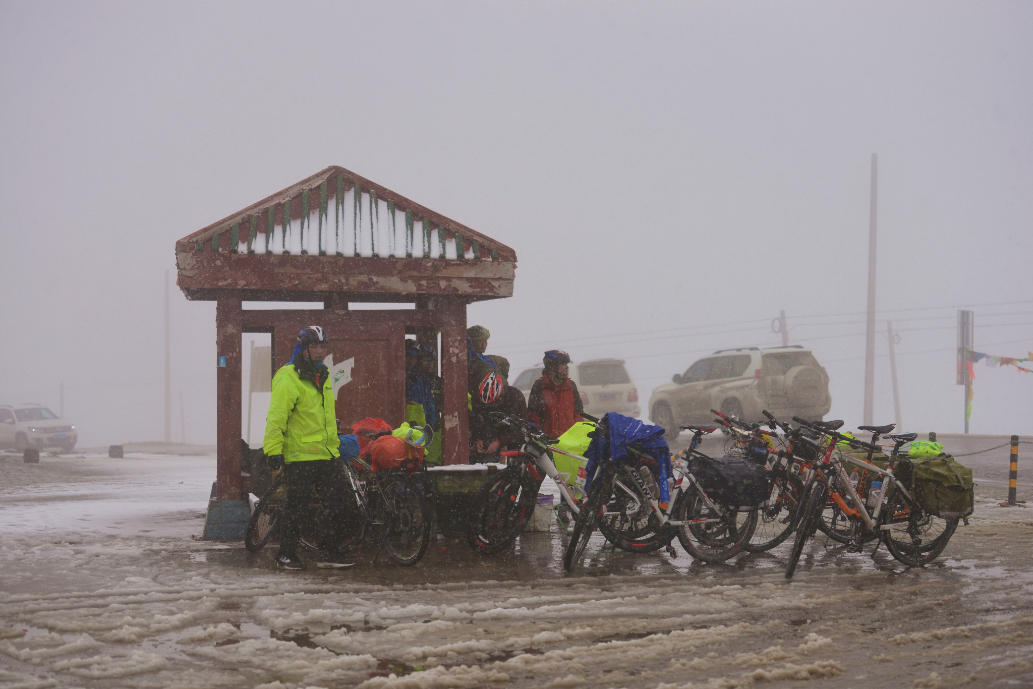 8点从碌曲出发,出城就是雨、雪、雾。一定是青藏高原的天气在为我们送行,否则这雨、雪、雾哪会如此缠绵,相伴我们一路。今天,她仨还是那般执着地又陪伴了我们一个整天。