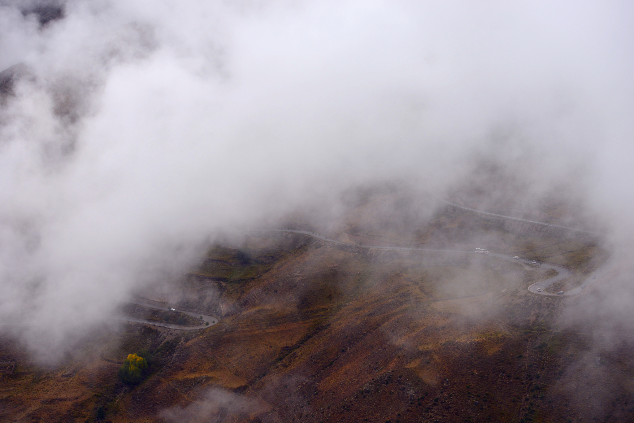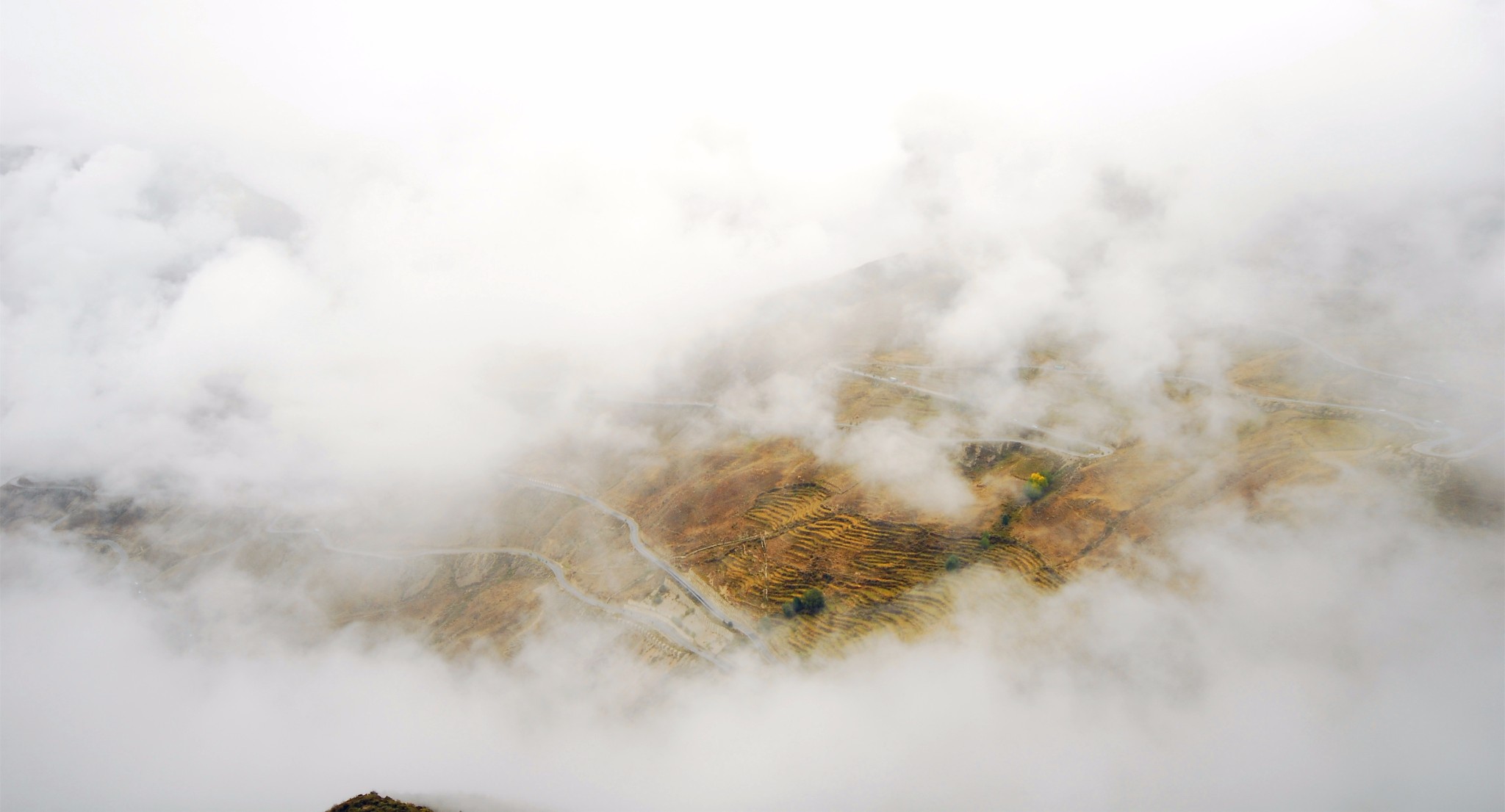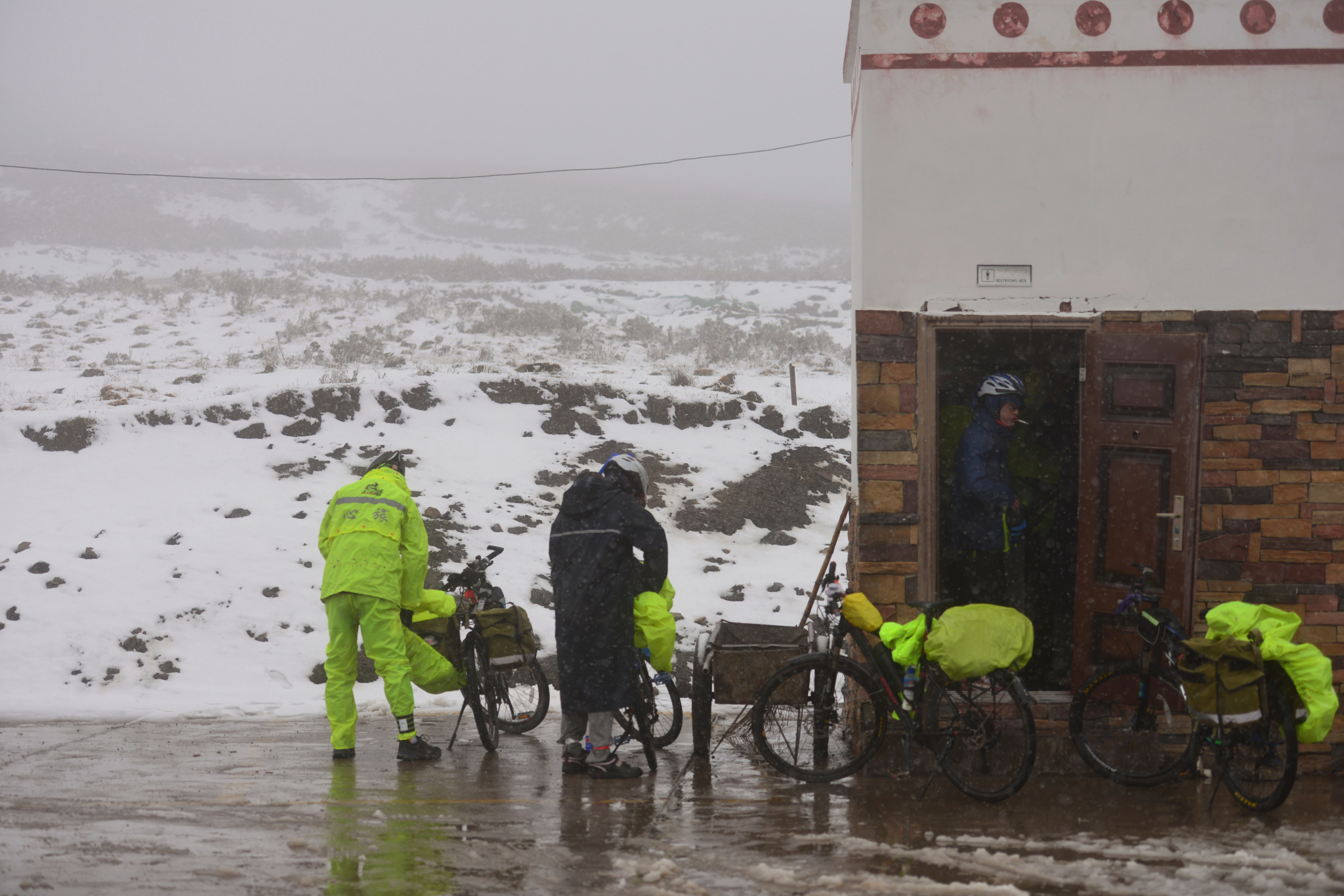 8点从碌曲出发,出城就是雨、雪、雾。一定是青藏高原的天气在为我们送行,否则这雨、雪、雾哪会如此缠绵,相伴我们一路。今天,她仨还是那般执着地又陪伴了我们一个整天。