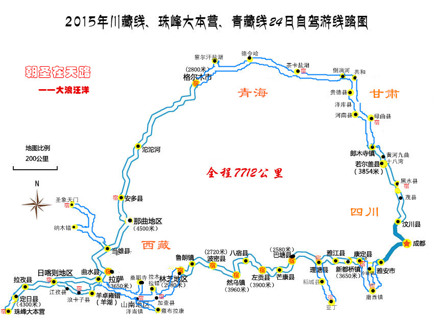 整理完此次行程,才发现这是一次浩大的旅行,历时24天,总里程数7712公里,途经四个省,穿越大半个西藏,经过30个海拔4000米之上的垭口,最后形成近2000张图片,8万多文字。