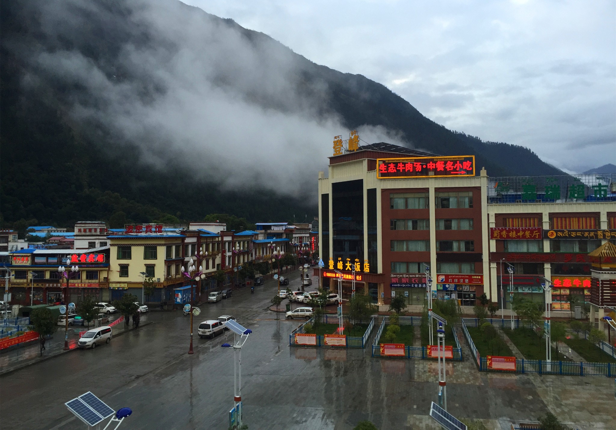 离开十八湾是下午4:30,我们先出唐克镇,再沿“209省道”依次经过红源县城、瓦切乡、安曲镇、红源机场、龙日乡、查针梁子,在壤口乡处又转进入“302省道”,过了雅克夏雪山、沙石多乡,就到了黑水县城,到时已经是晚上8:10。