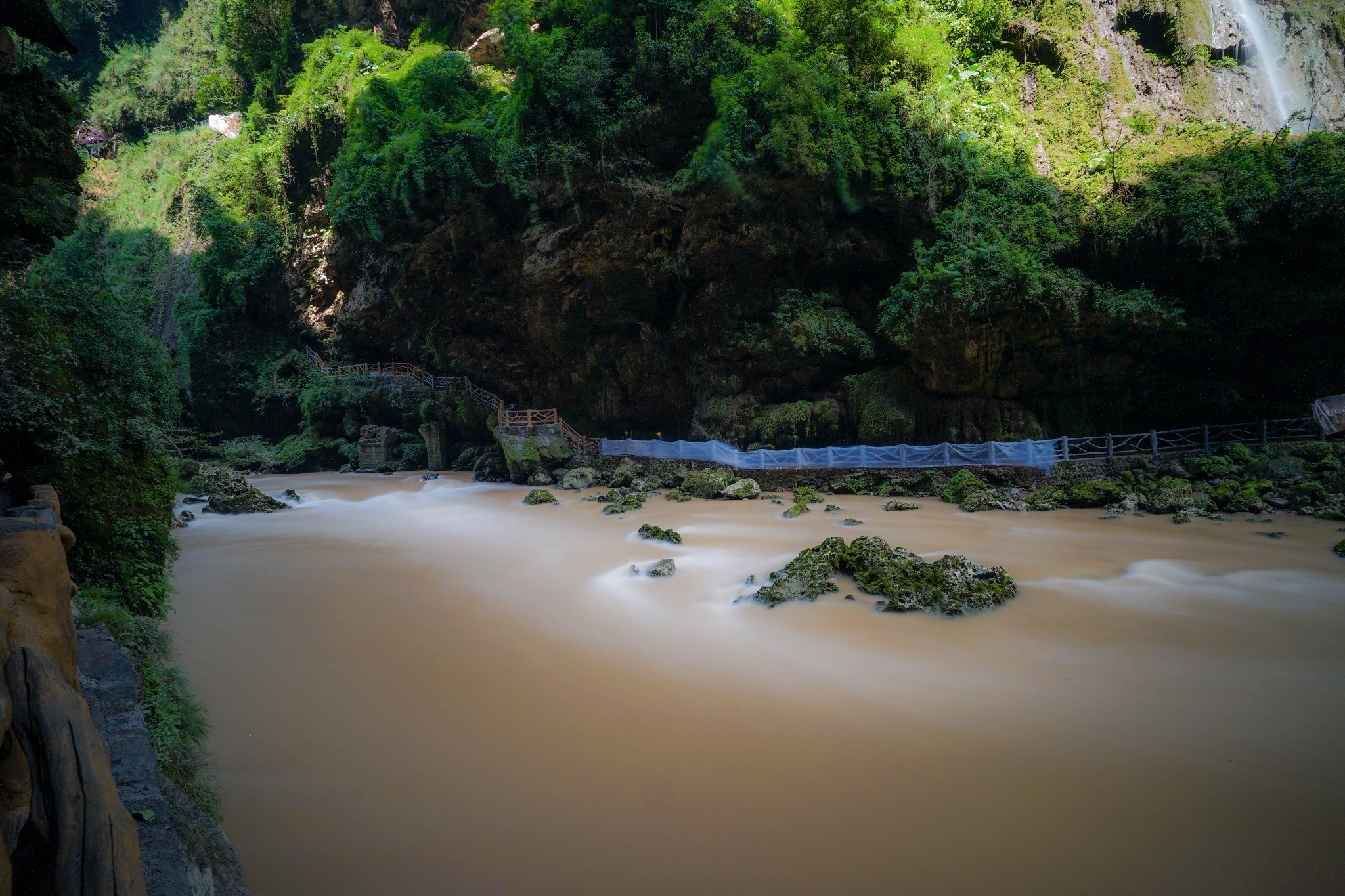 68级瀑布是一段非常长的区域,听名字大家就应该知道它是什么意思了,实际上就是由落差很小的一段段瀑布连接而成的一个向下的落差走势,但是由于瀑布蜿蜒曲折且很长,所以无法拍到全貌。
