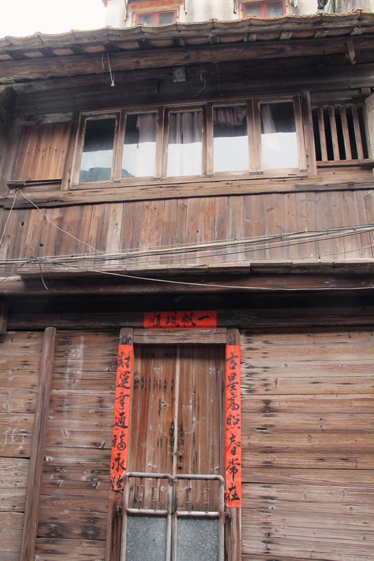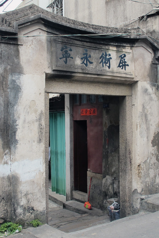 在达濠古城直走一小段左边原本有一条苏州街,是当年当地很有名的商业街。如今,城市变迁,楼房林立,仅剩下的一小段苏州街包围在一圈钢筋楼房中间,有种夹缝中生存的感觉。目前,这大约20米左右的小街道,两边的木头楼房要么危楼大门紧锁,要么用水泥瓷砖修补后,已不复当年繁华。