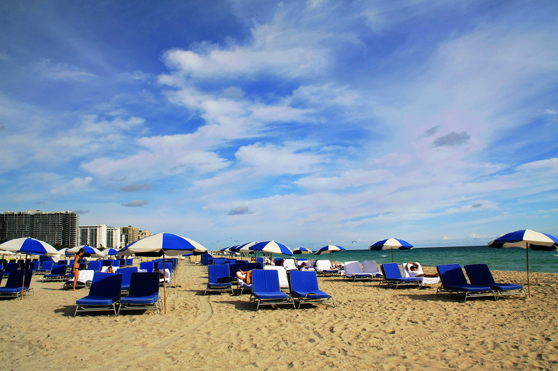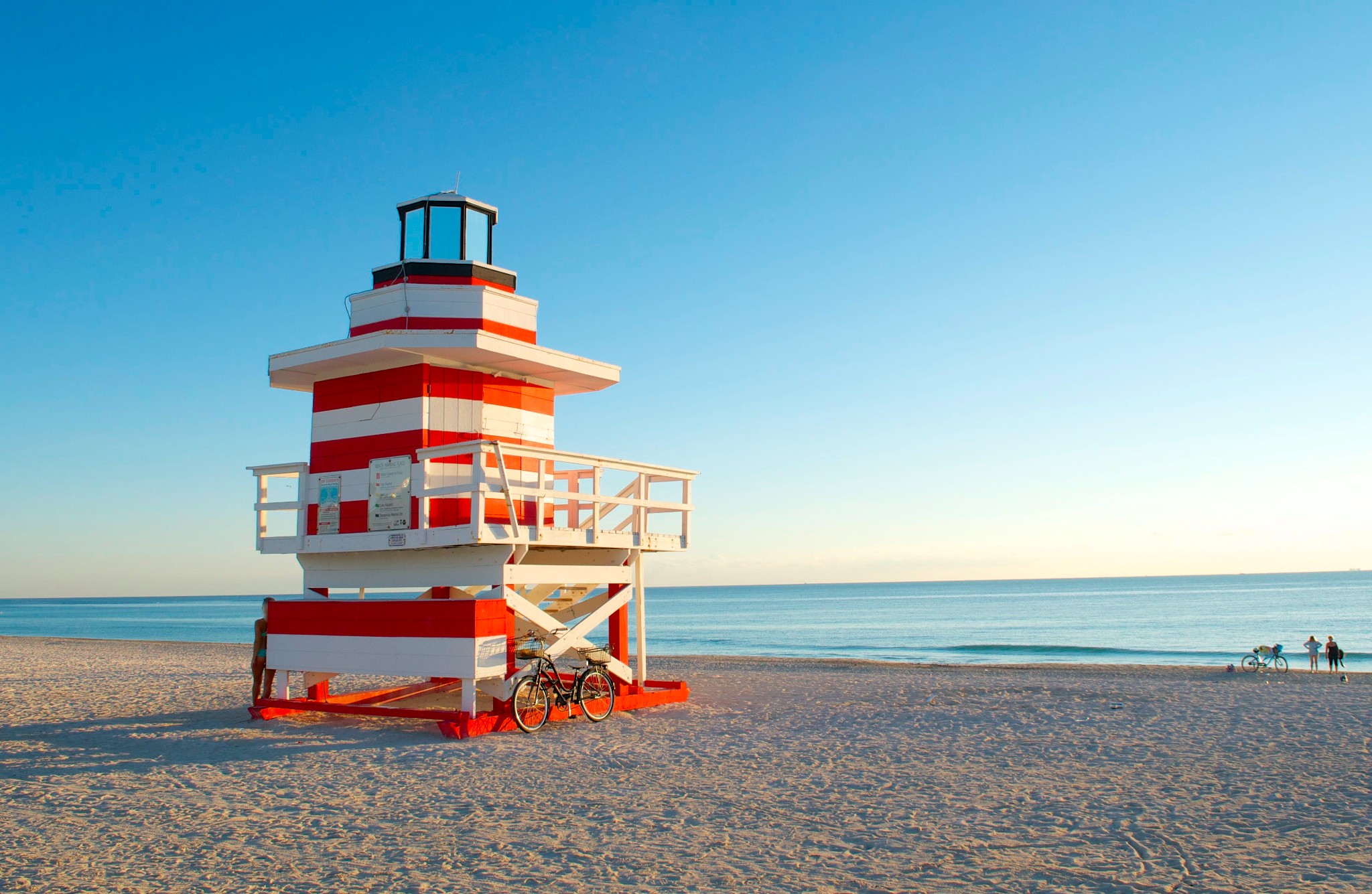 迈阿密海滩是美国著名的海水浴场,位于迈阿密的海滩市,与迈阿密隔着比斯坎海湾相望。海滩的海水较浅,且浪小涌平,沙质细白,平坦广阔,经常有海鸥成群飞过,画面十分唯美,每年都吸引众多游客来此享受浪漫的海滩风情。