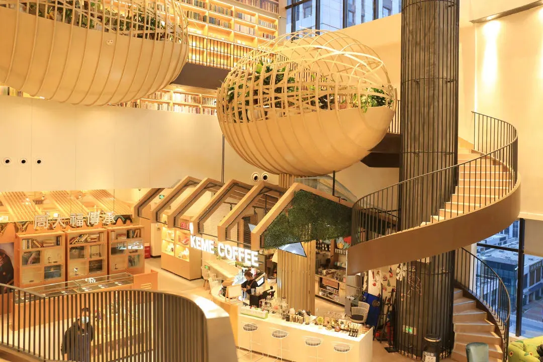 颜值与内涵并存的书店,是当之无愧的网红书店。现代化的旋转楼梯,居中的书塔设计,让这座书店登上颜值的巅峰。整个书店藏书量高达10万册以上,用千层塔,万卷书点亮精神的角落。多种文创商品通过不同风格的陈列,呈现出不一样的故事,让人忍不住想拿起手机拍摄每一个角度。这里还会不定期的邀请知名作家做分享及组织书友会活动。
