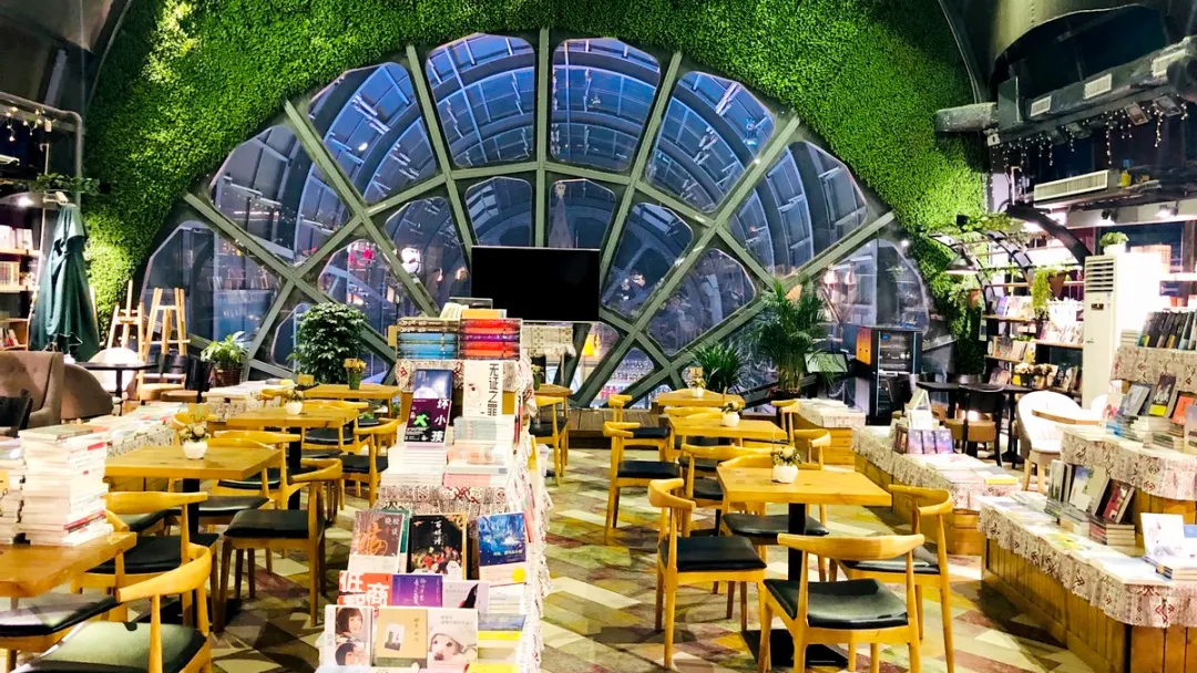 大隐隐于市,这是一座隐藏在闹市区的幽静书店,从购物广场四楼进入书店,仿佛置身欧洲,英伦风的装修风格使这里成为了低调的网红书店。下午茶时间,捧一本喜欢的书籍,品着咖啡与茶,透过全玻璃窗的透明屋顶,感受休闲的惬意。