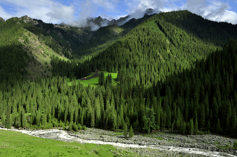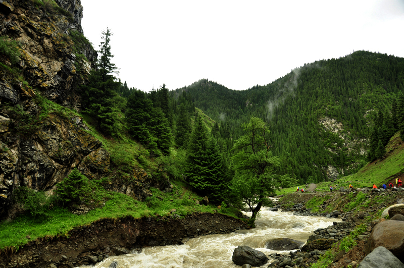 从土石窑子继续北行,翻越琼达坂后,即抵达六道桥。在六道桥下行2公里的地方,有一片草地,是理想的宿营地。